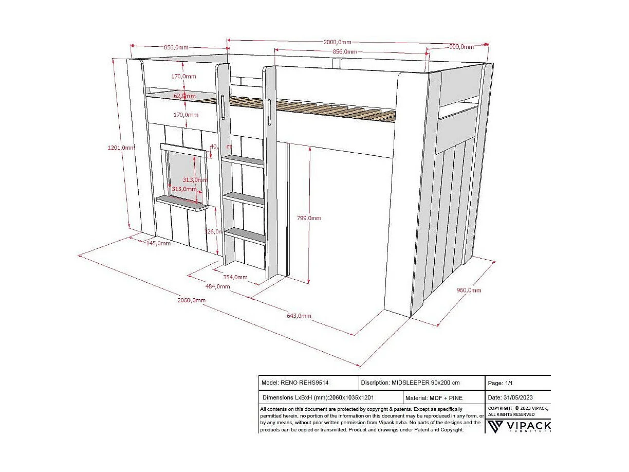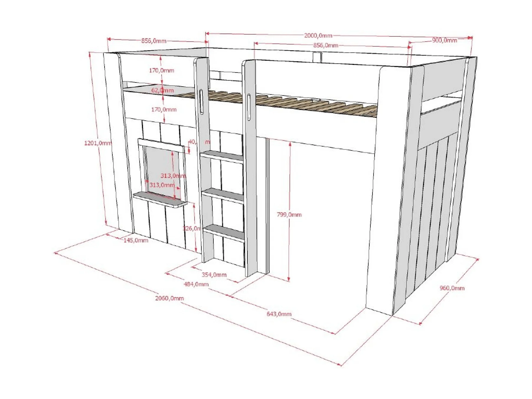 Lit Cabane Enfant "Reno" 90x200cm Blanc