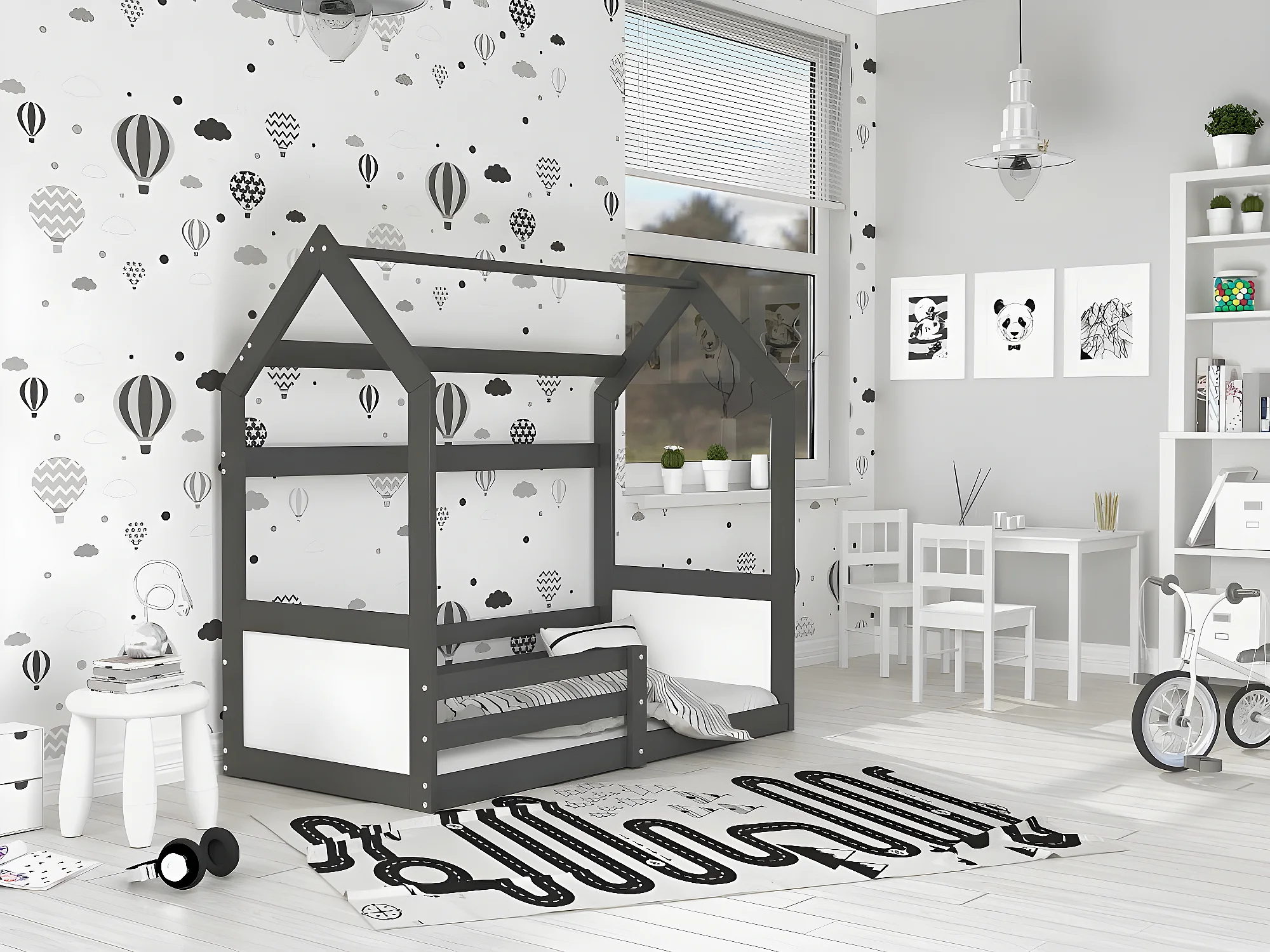 Lit Cabane Miki 80x160 -blanc Gris - blanc Livré avec sommiers