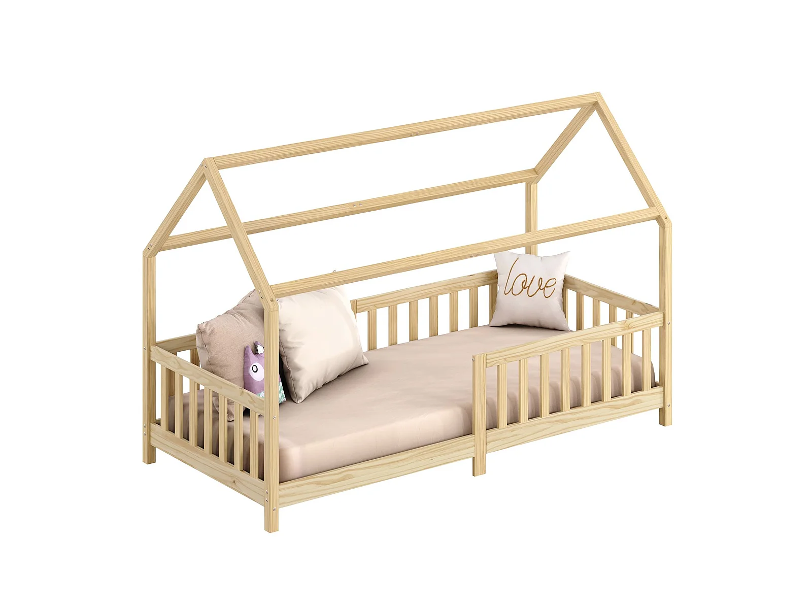 Lit cabane NINA lit enfant simple montessori en bois 90 x 200 cm, en pin massif finition naturelle