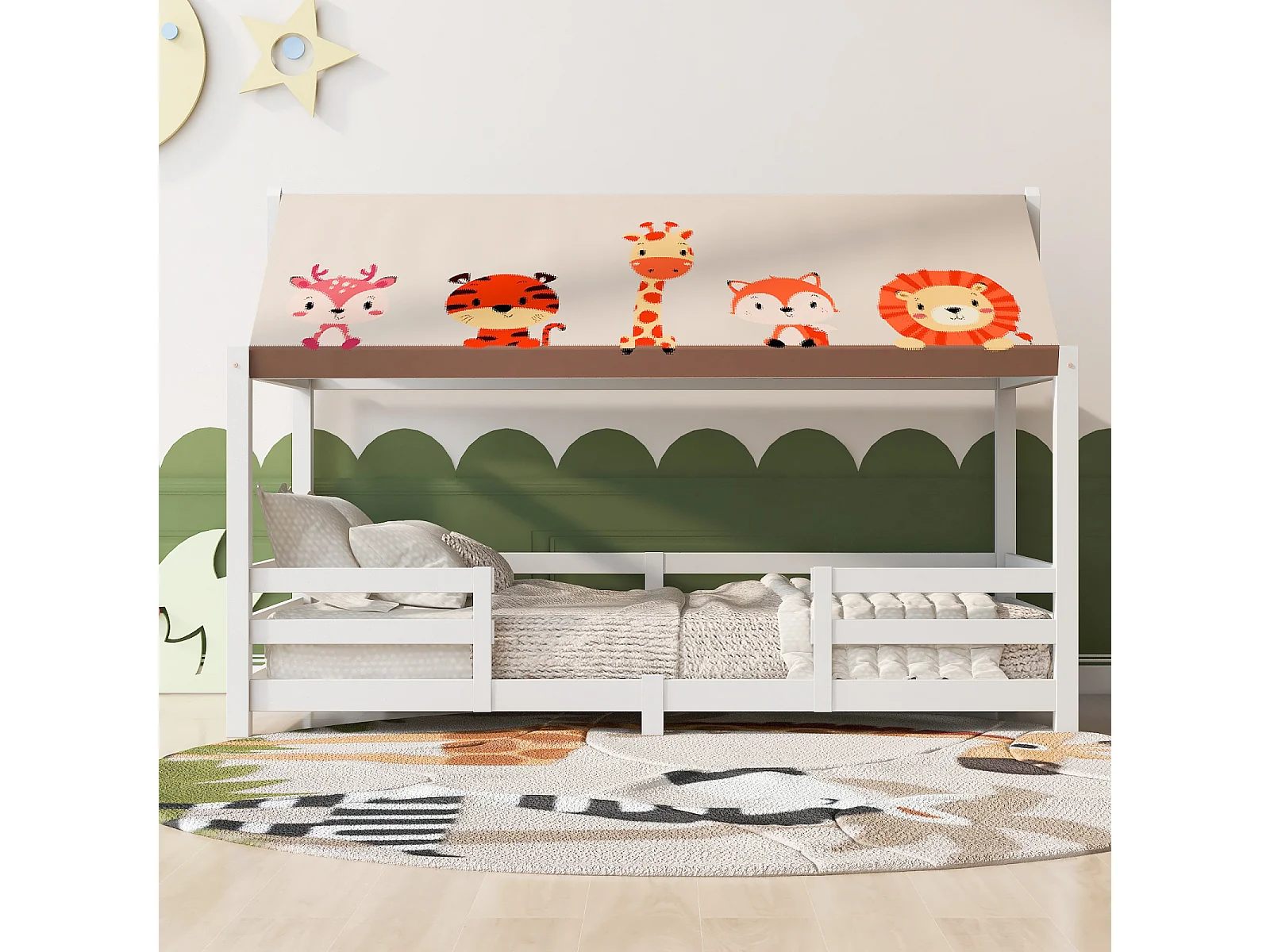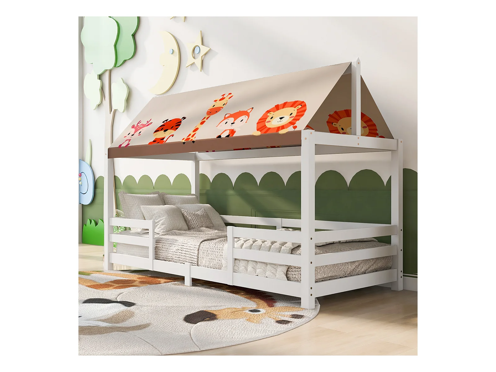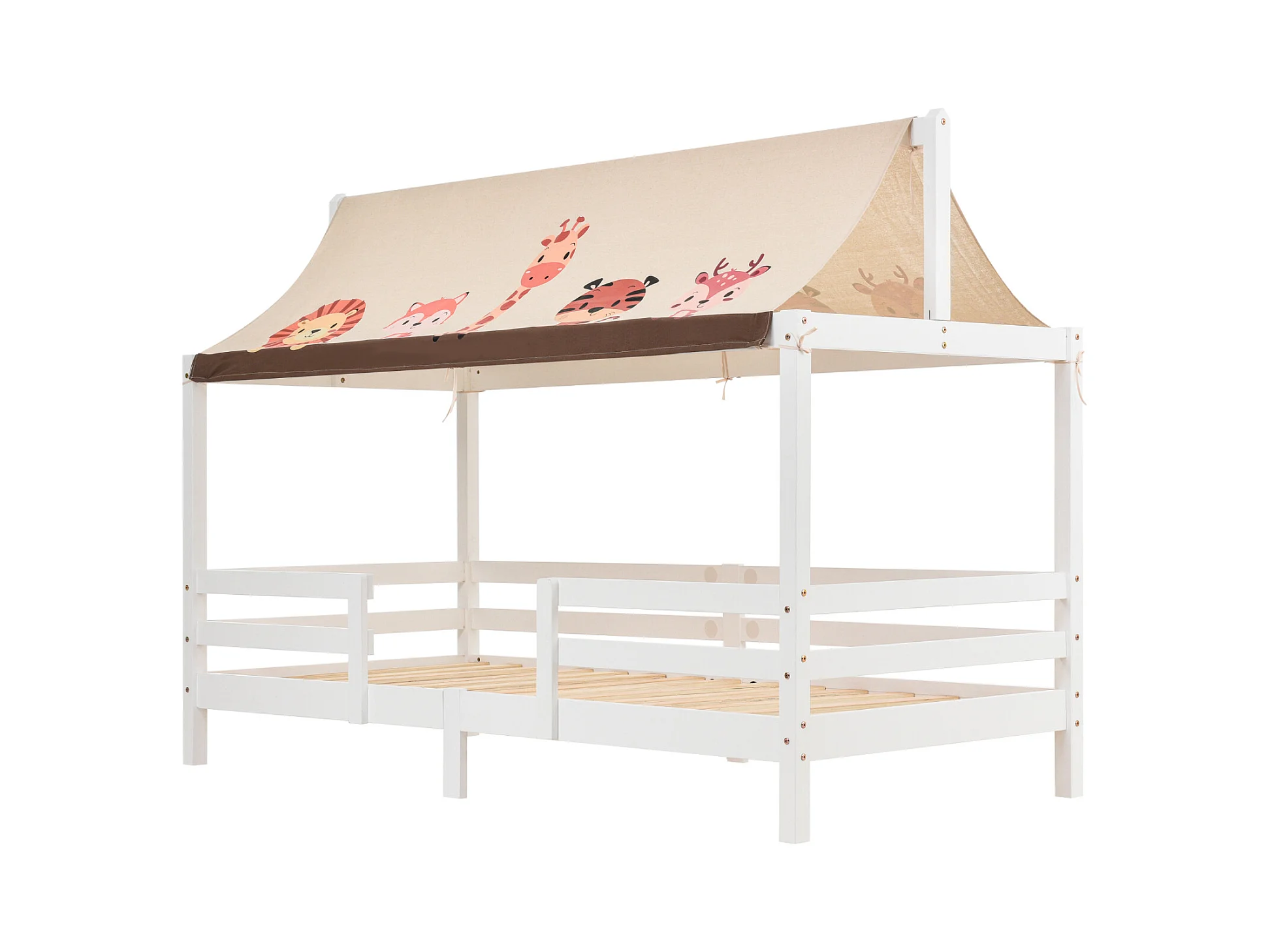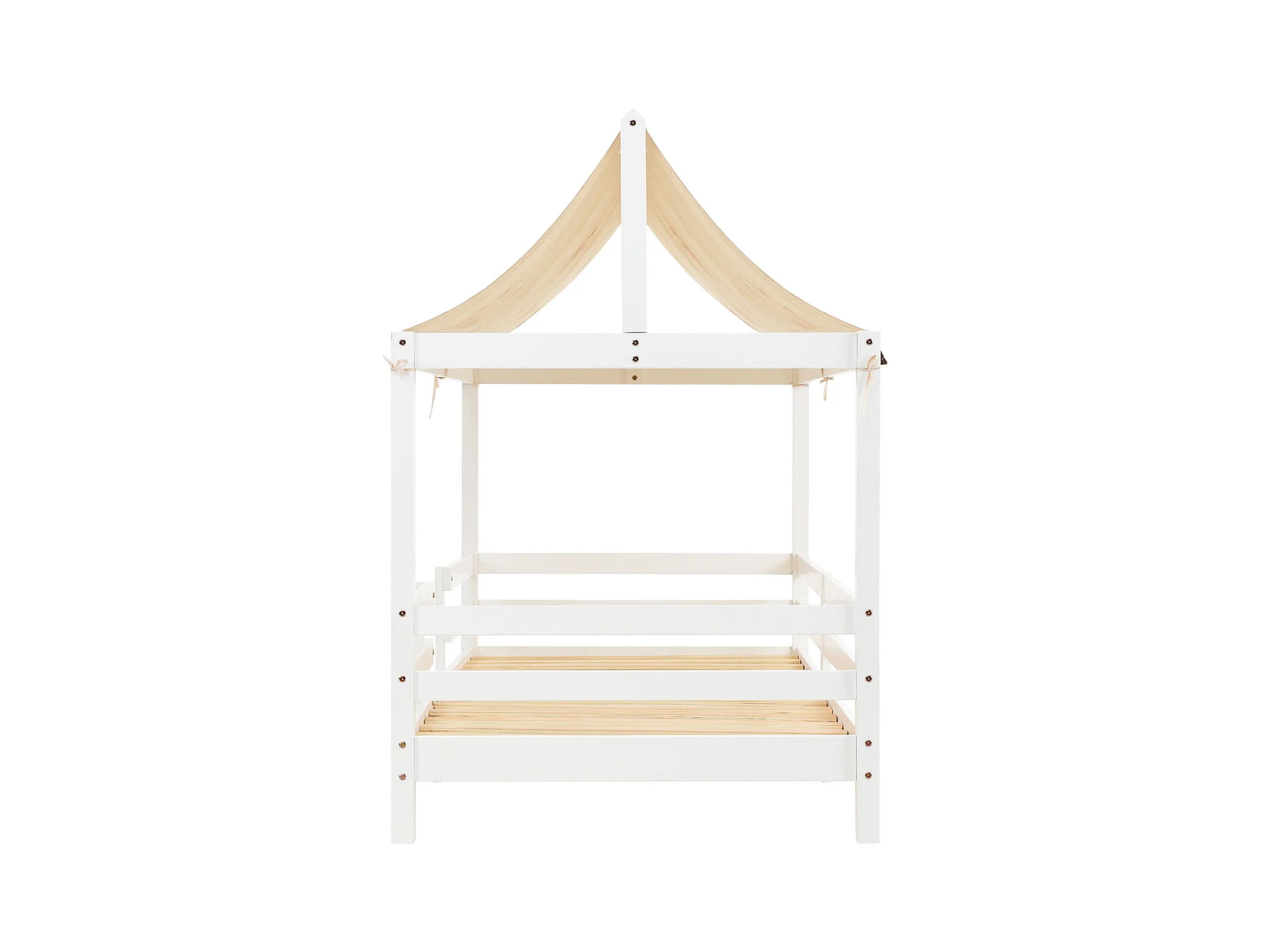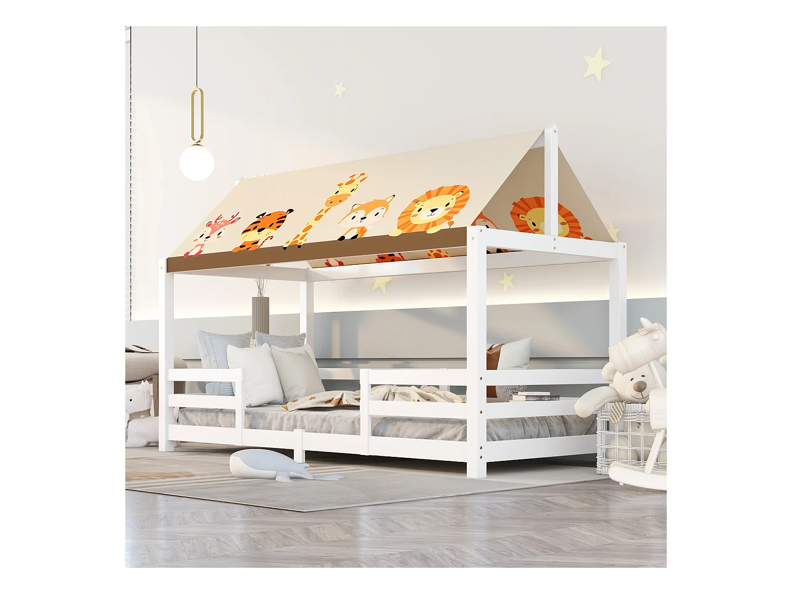Lit cabane pour enfant 90x200 cm - avec Protection Contre Les Chutes et Toile de Tente - sommier à Lattes et Toit - lit d'adolescent - Blanc