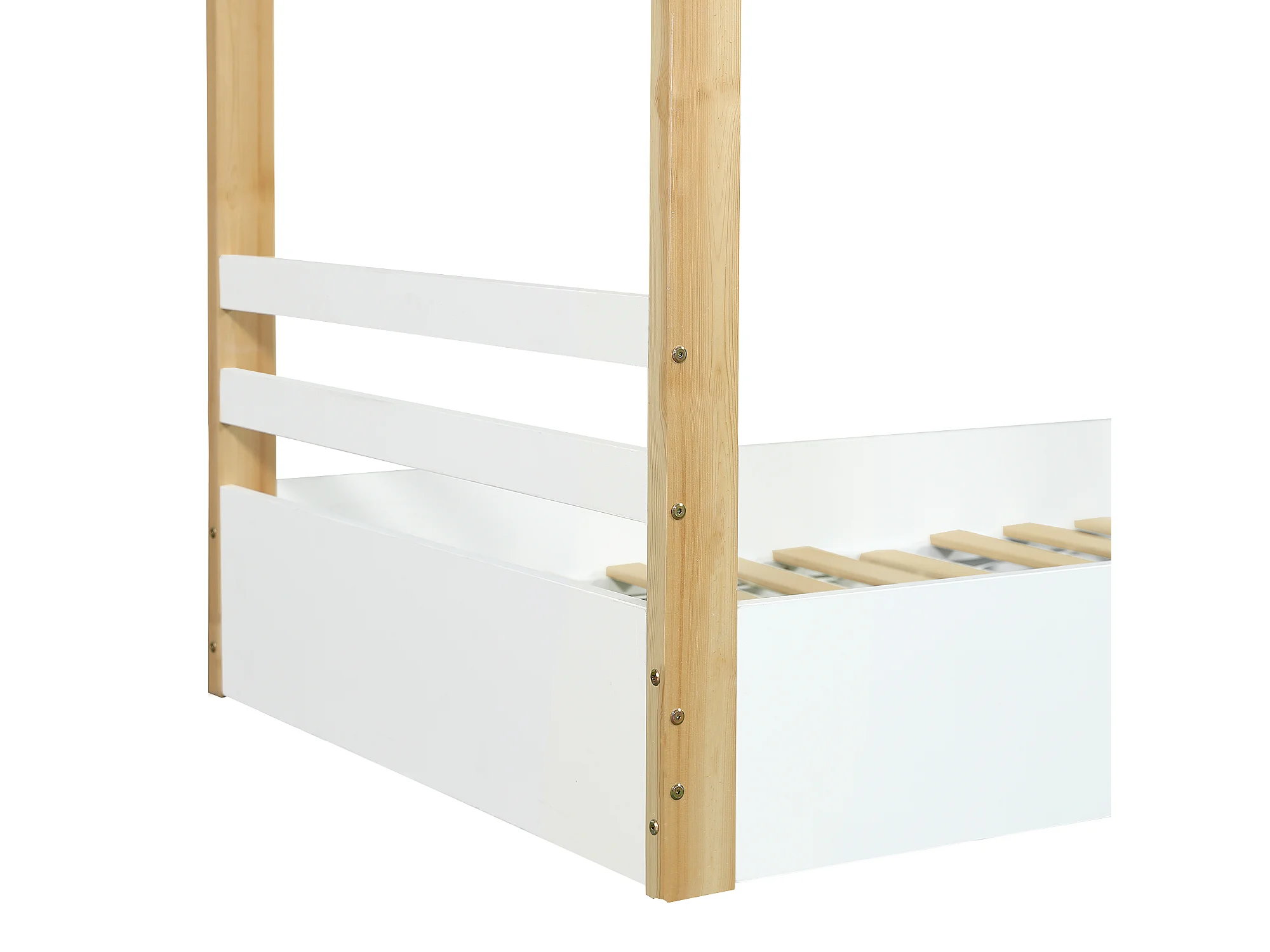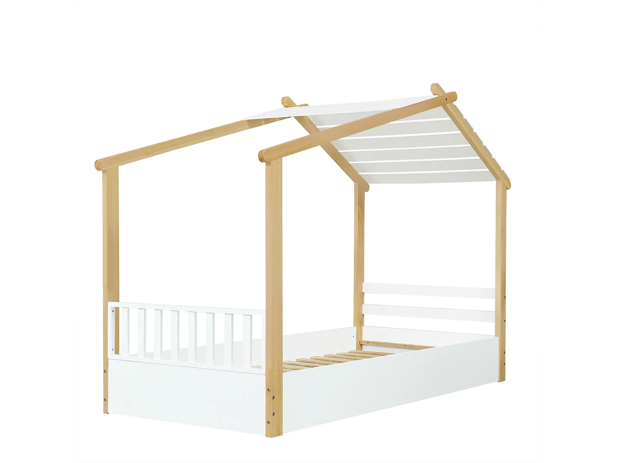 Lit cabane pour enfants 90x200cm - avec sommier à lattes - conception de maison en rondins - Bois massif + MDF - Naturel