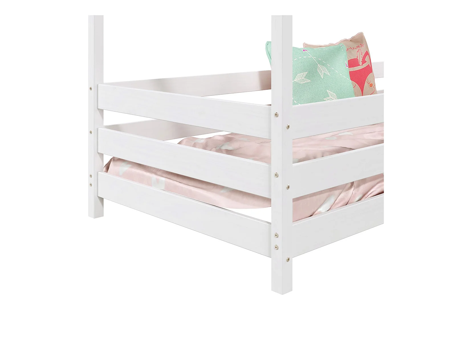 Lit cabane RENA lit simple montessori pour enfant 90 x 200 cm, avec barrières de protection, en pin massif lasuré blanc