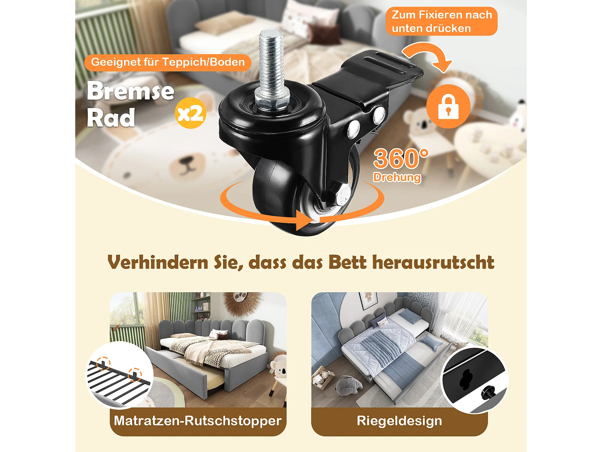 Lit canapé avec lit tiroir, design moderne, velours gris, 90x200 cm (sans matelas)
