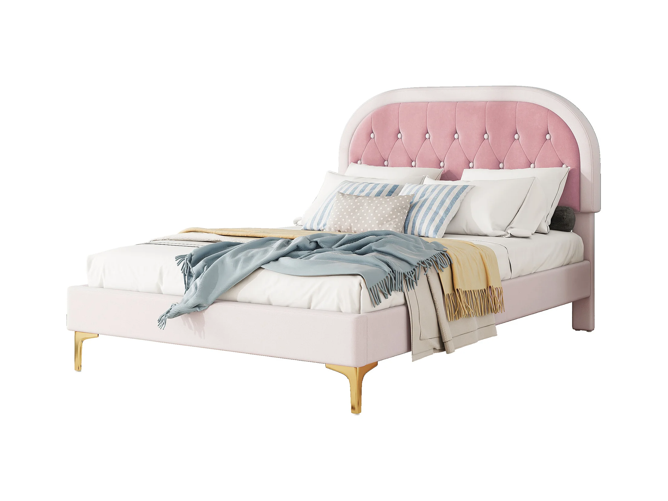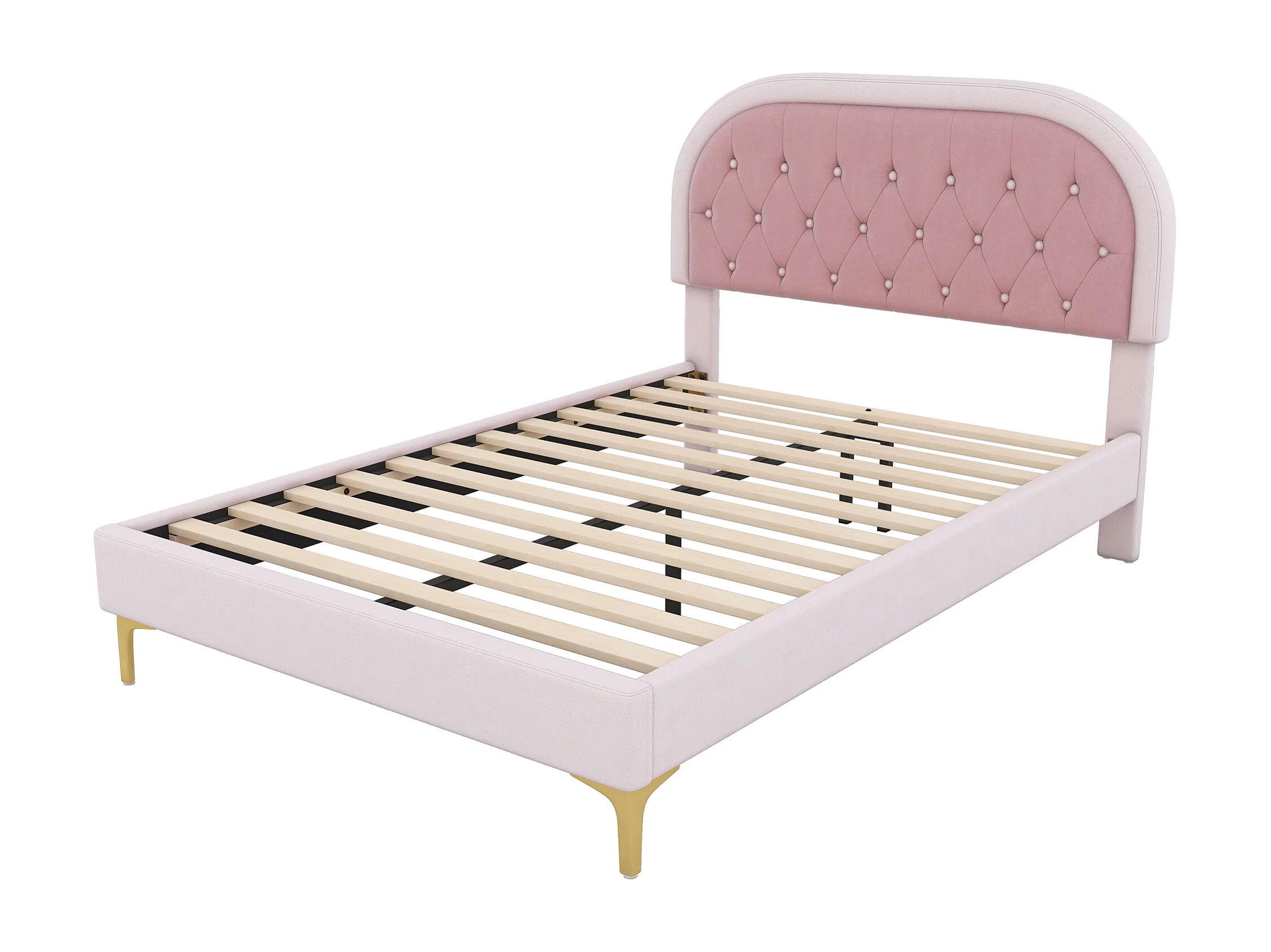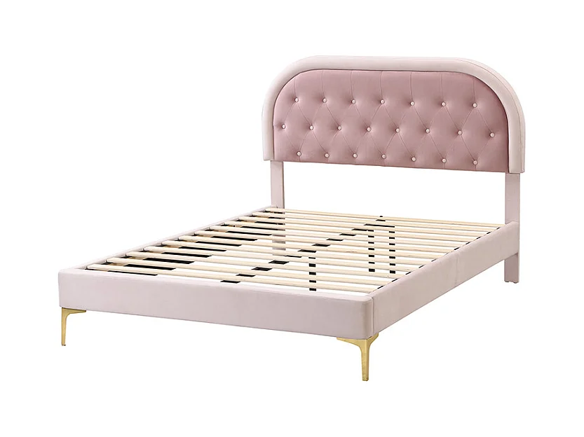 Lit capitonné 140 x 200cm avec tête de lit courbée - pieds en métal - velours - rose (sans matelas)