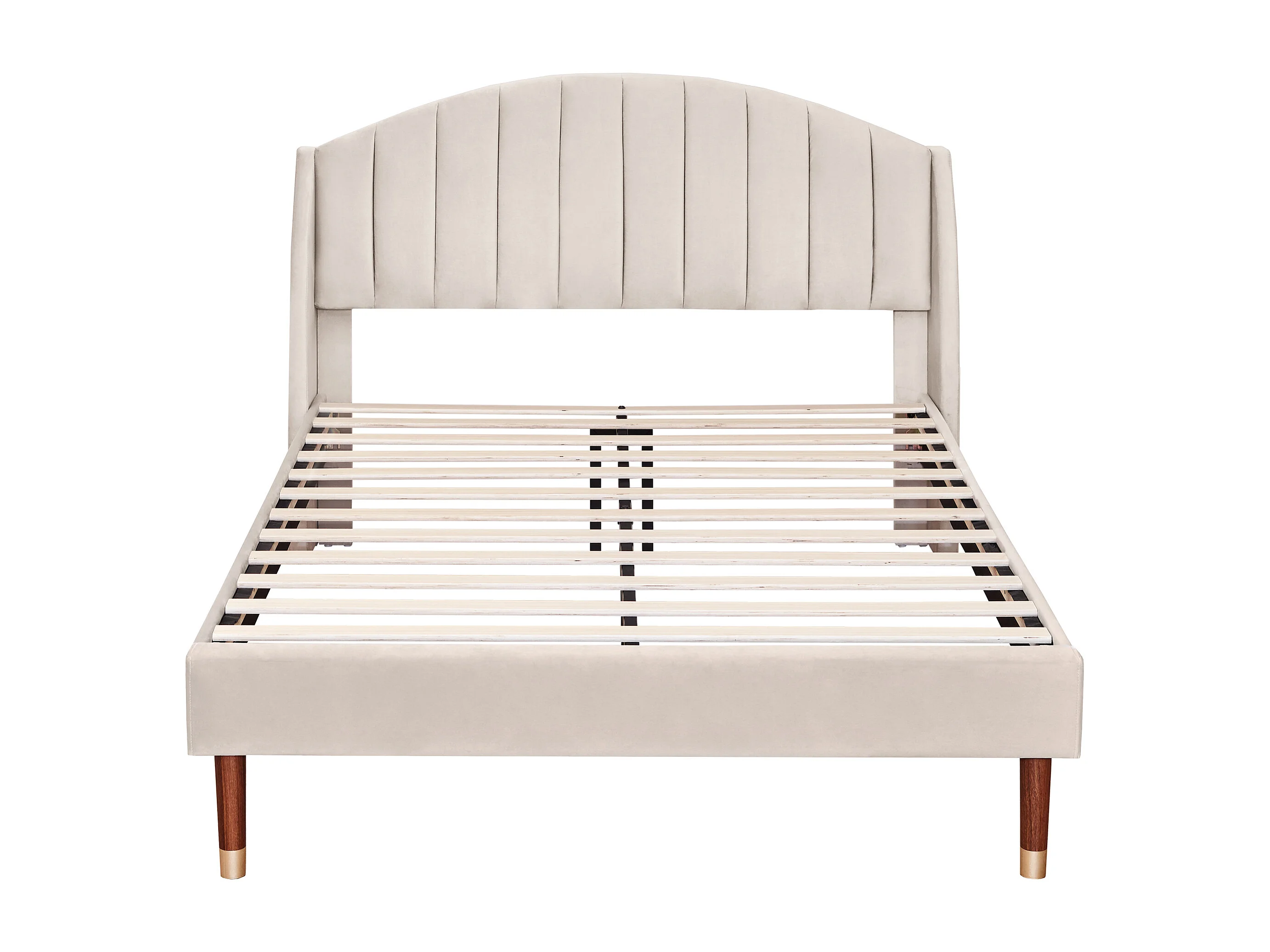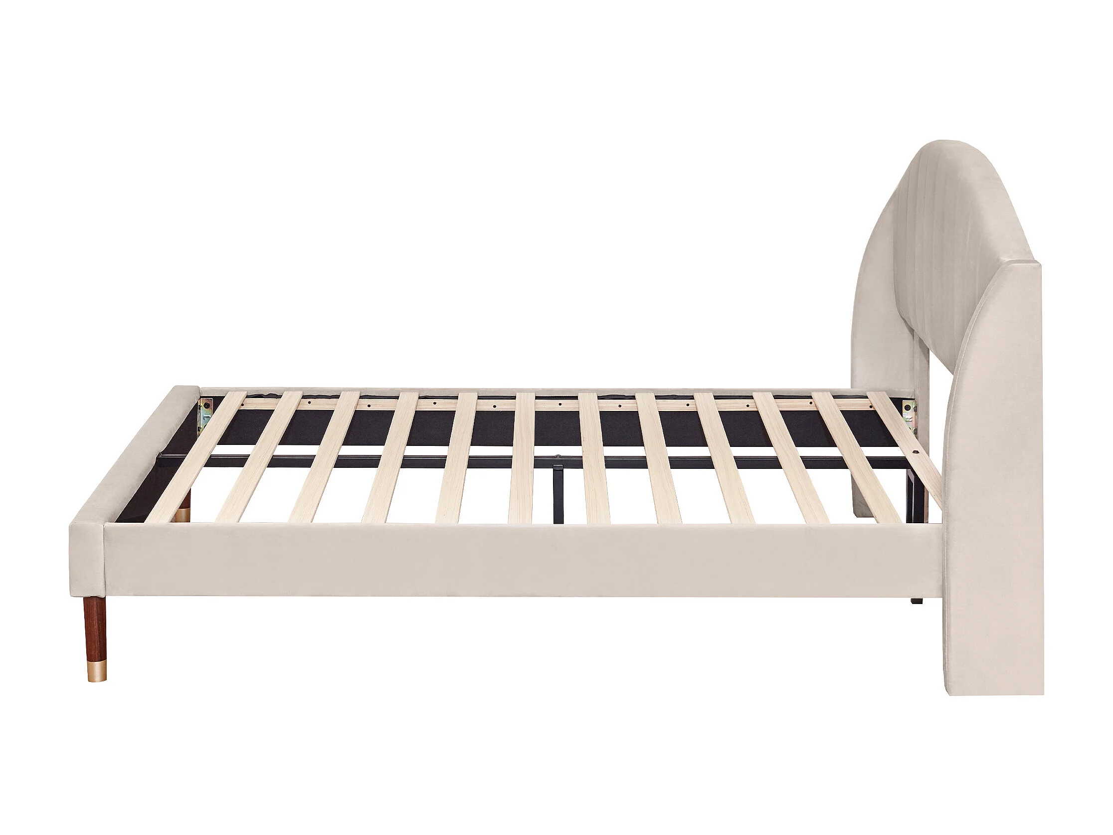 Lit adulte 140x190 cm - Lit double avec tête de lit et sommier à lattes en bois - velours beige