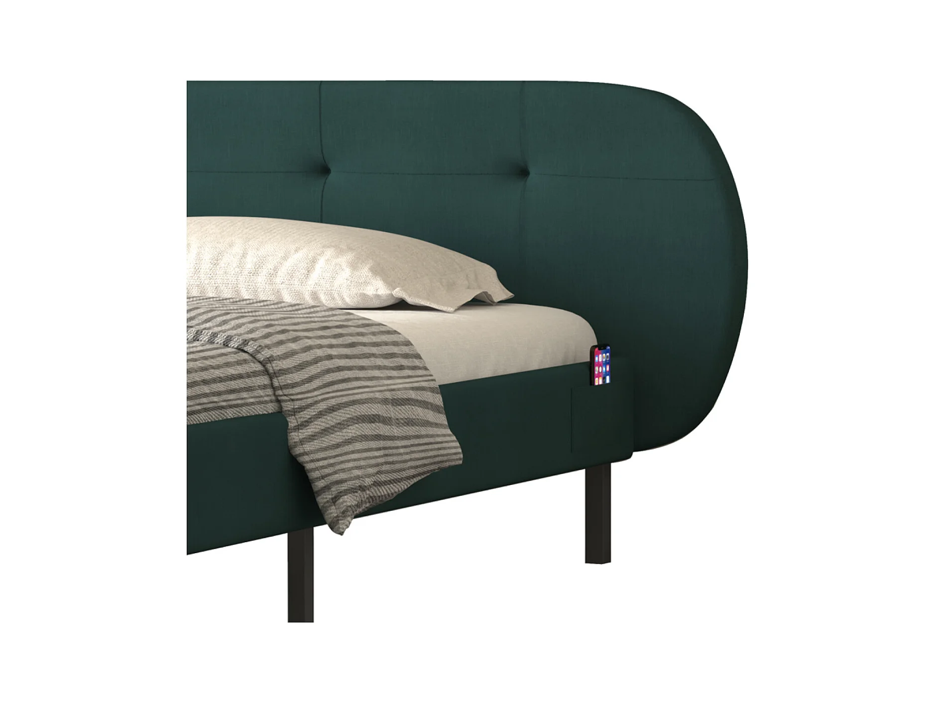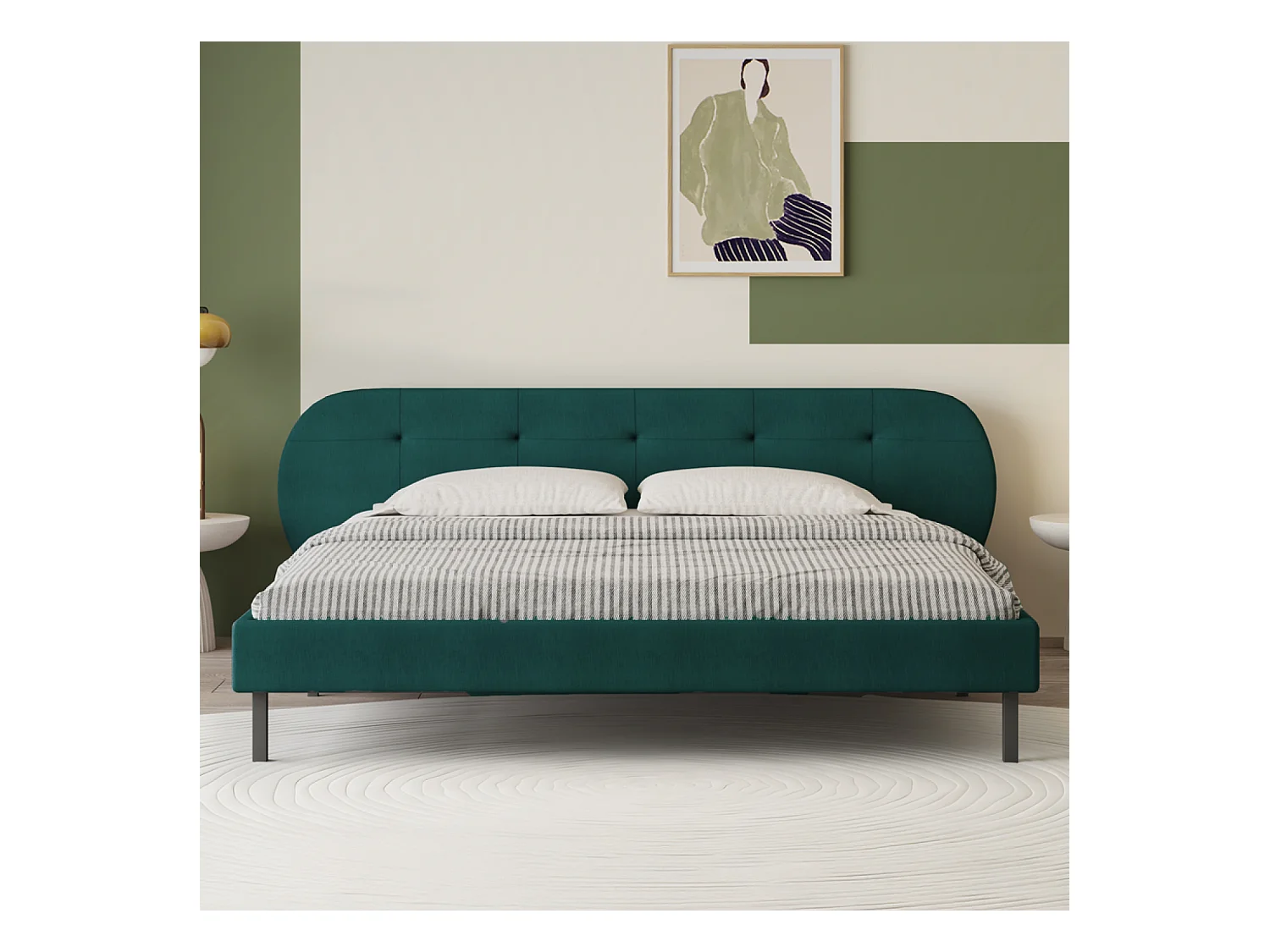 Lit capitonné 140x190cm vert avec tête de lit et sommier TULSA
