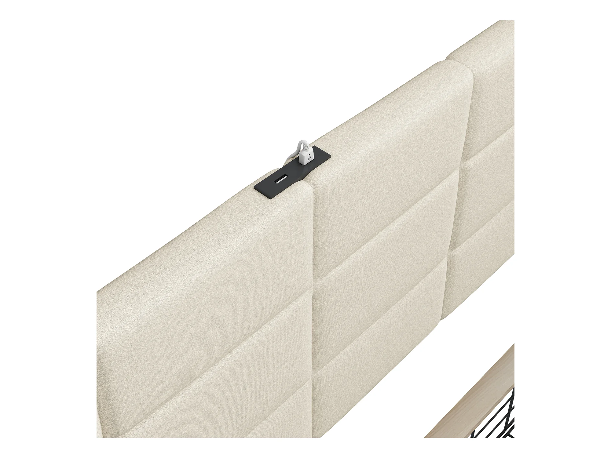 Lit adulte 140x200 cm - Lit double avec éclairage LED et prise de charge - 4 tiroirs - Lin beige