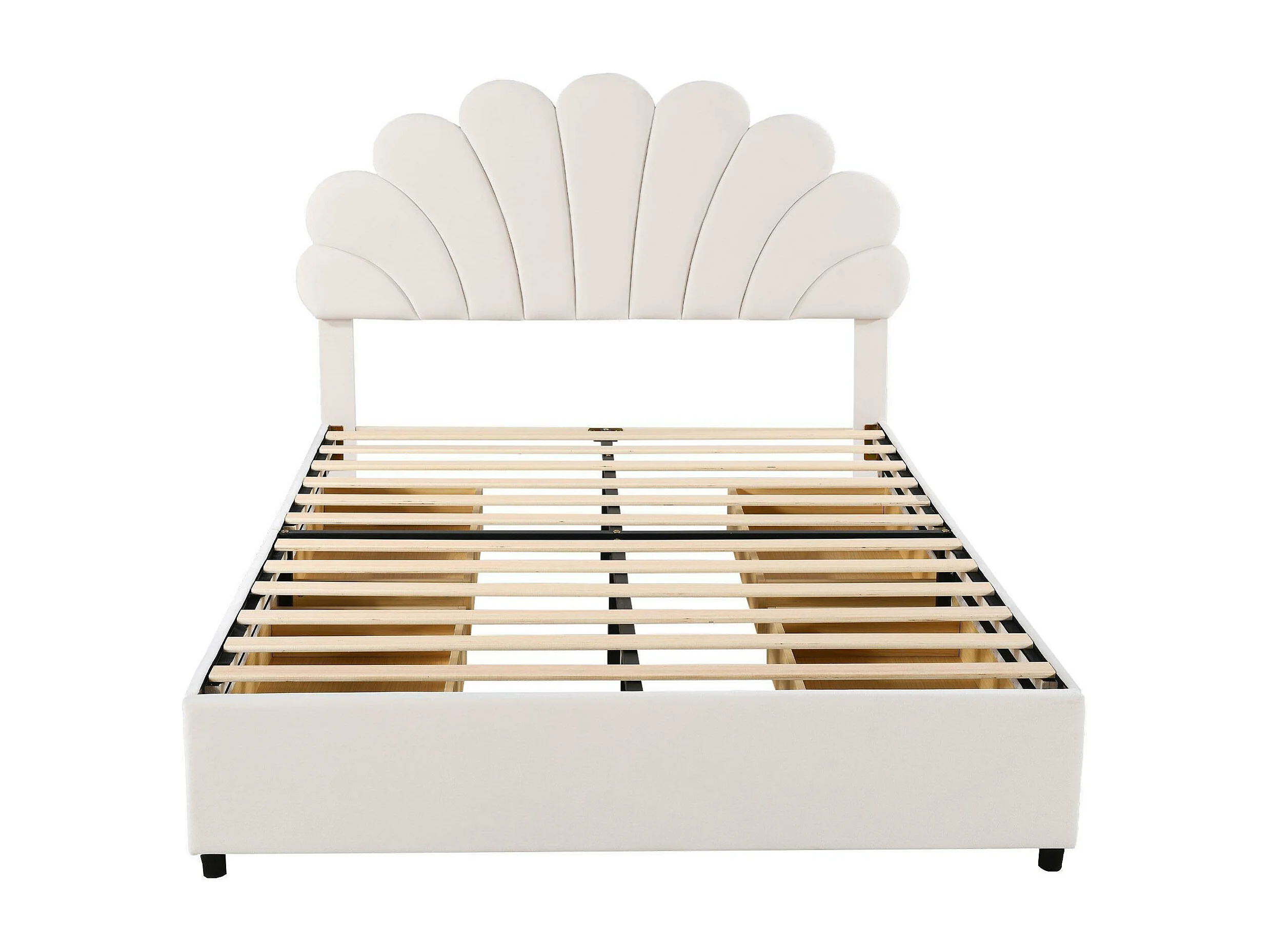 Lit adulte 140x200 cm - Lit double avec 4 tiroirs et sommier à lattes - velours beige