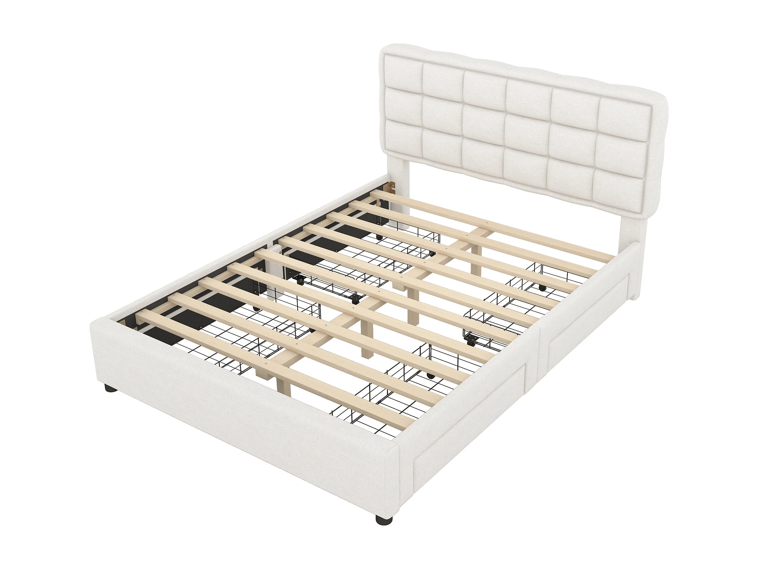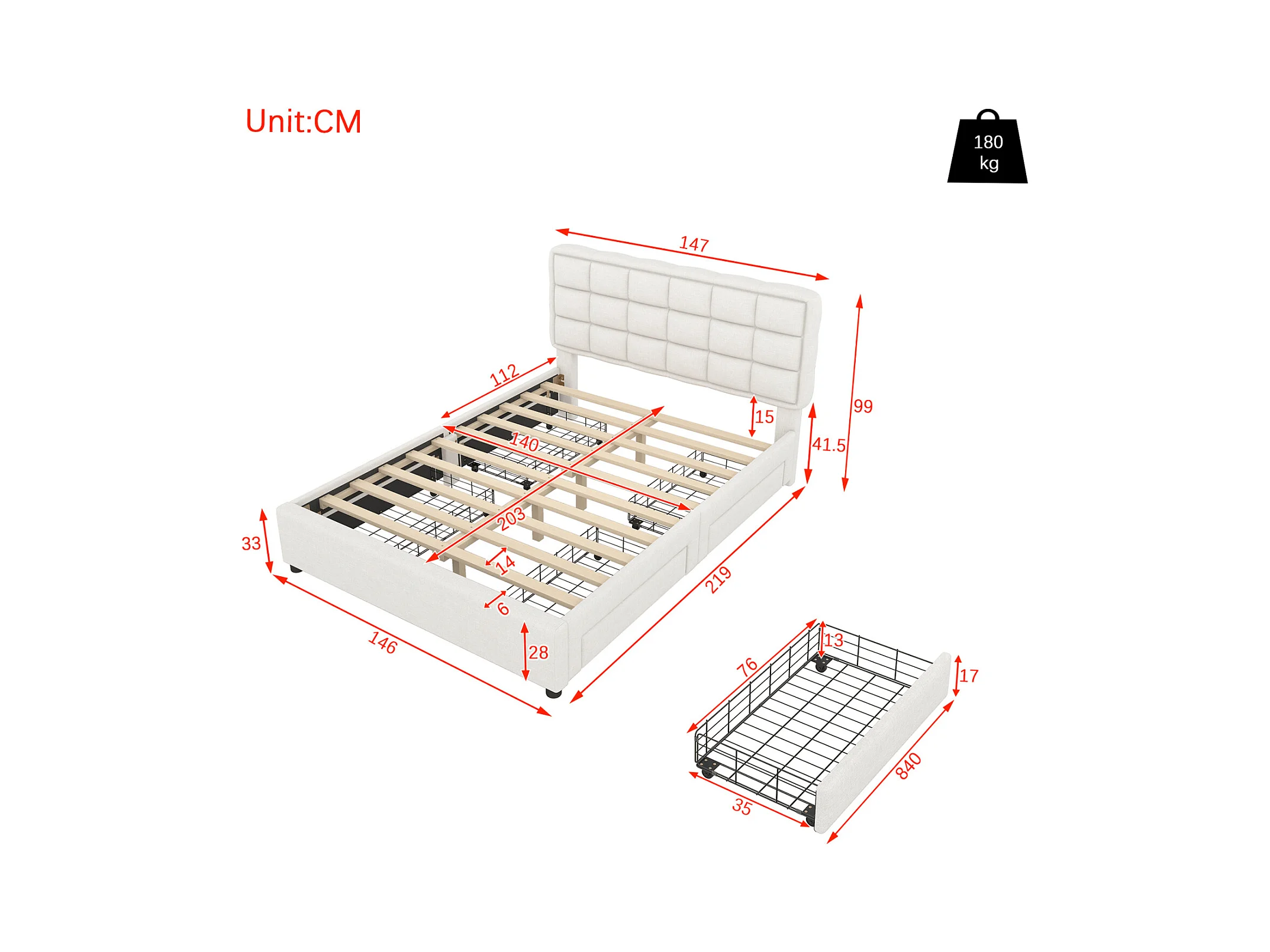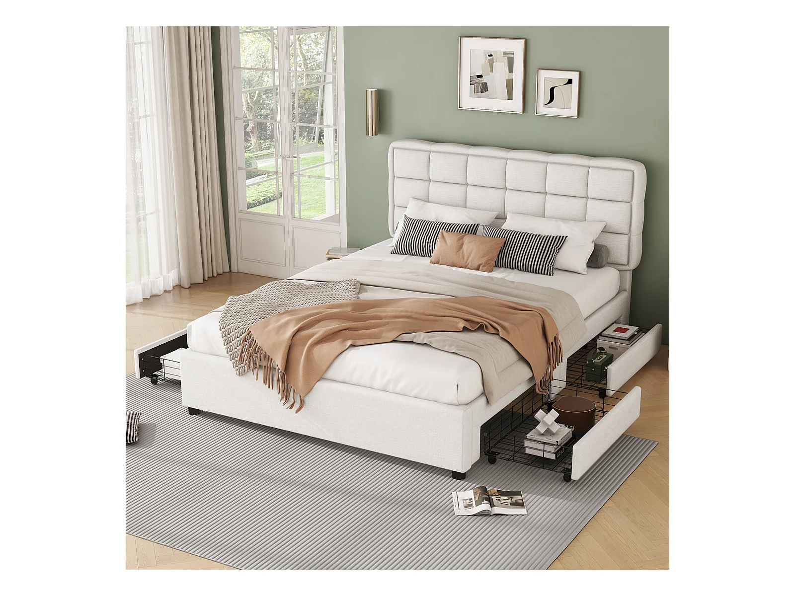 Lit capitonné 140x200cm lit double avec sommier à lattes 4 tiroirs style minimaliste - beige