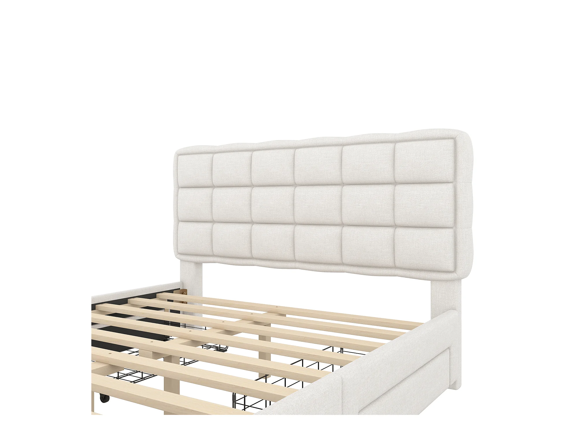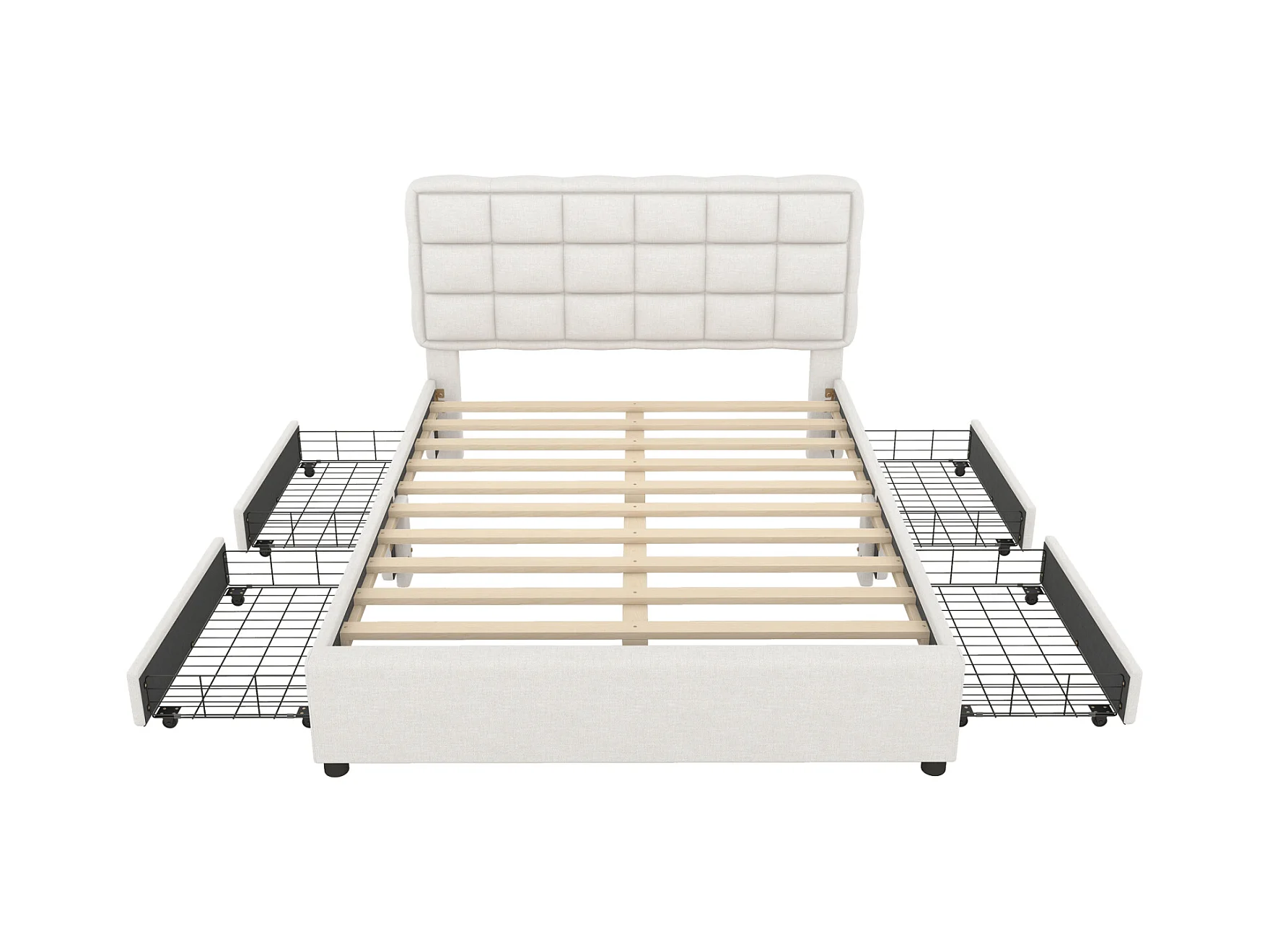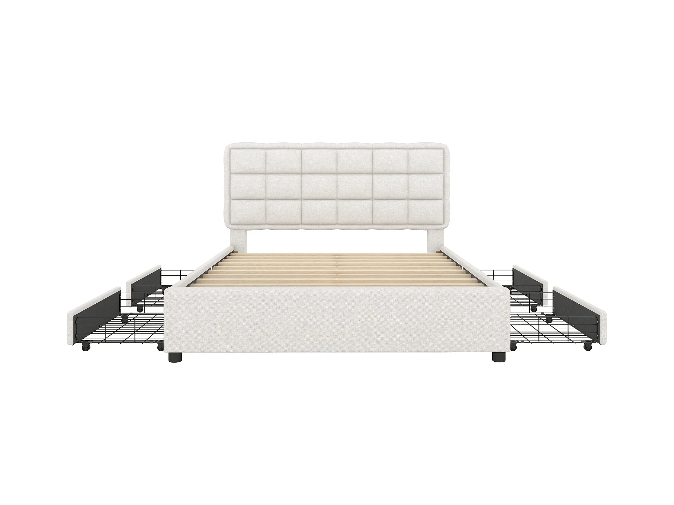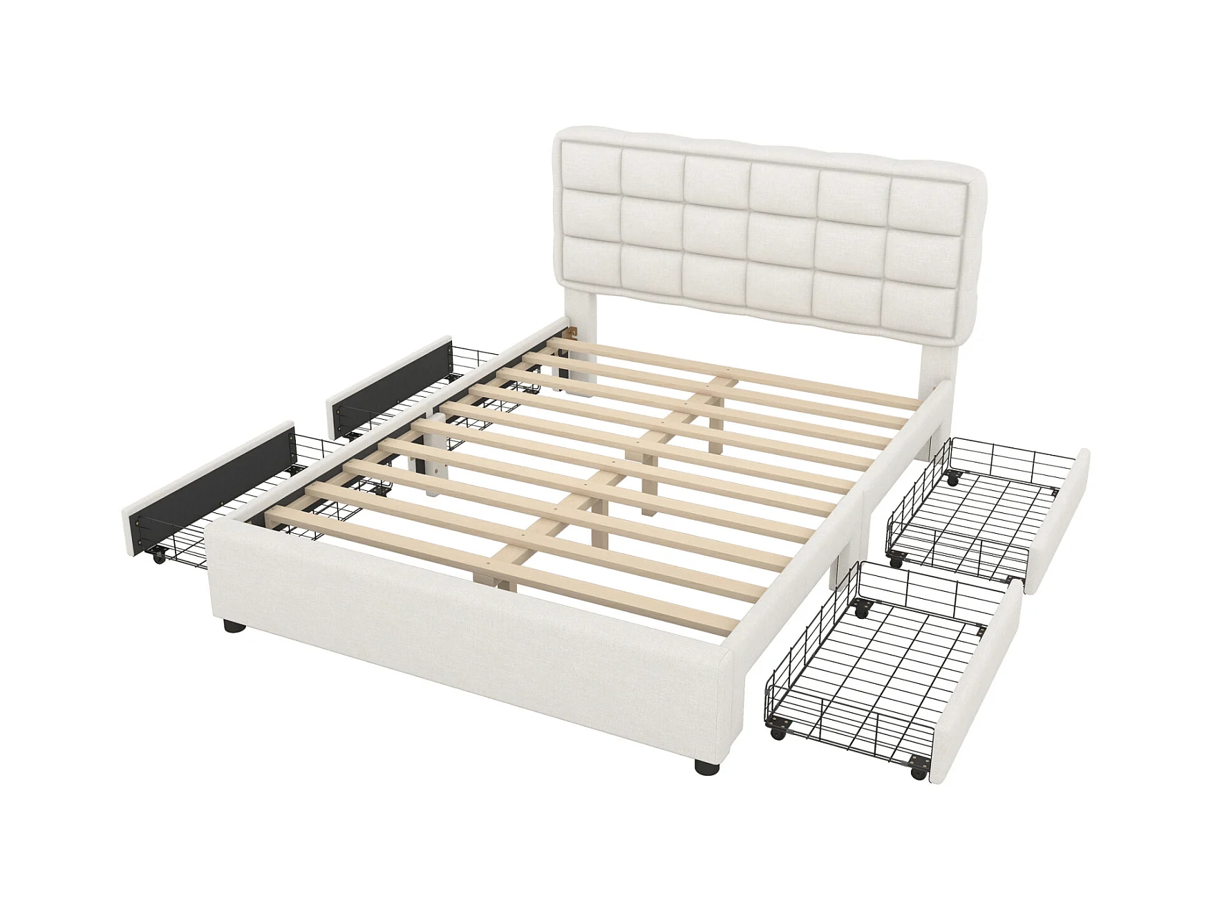 Lit capitonné 140x200cm lit double avec sommier à lattes 4 tiroirs style minimaliste - beige