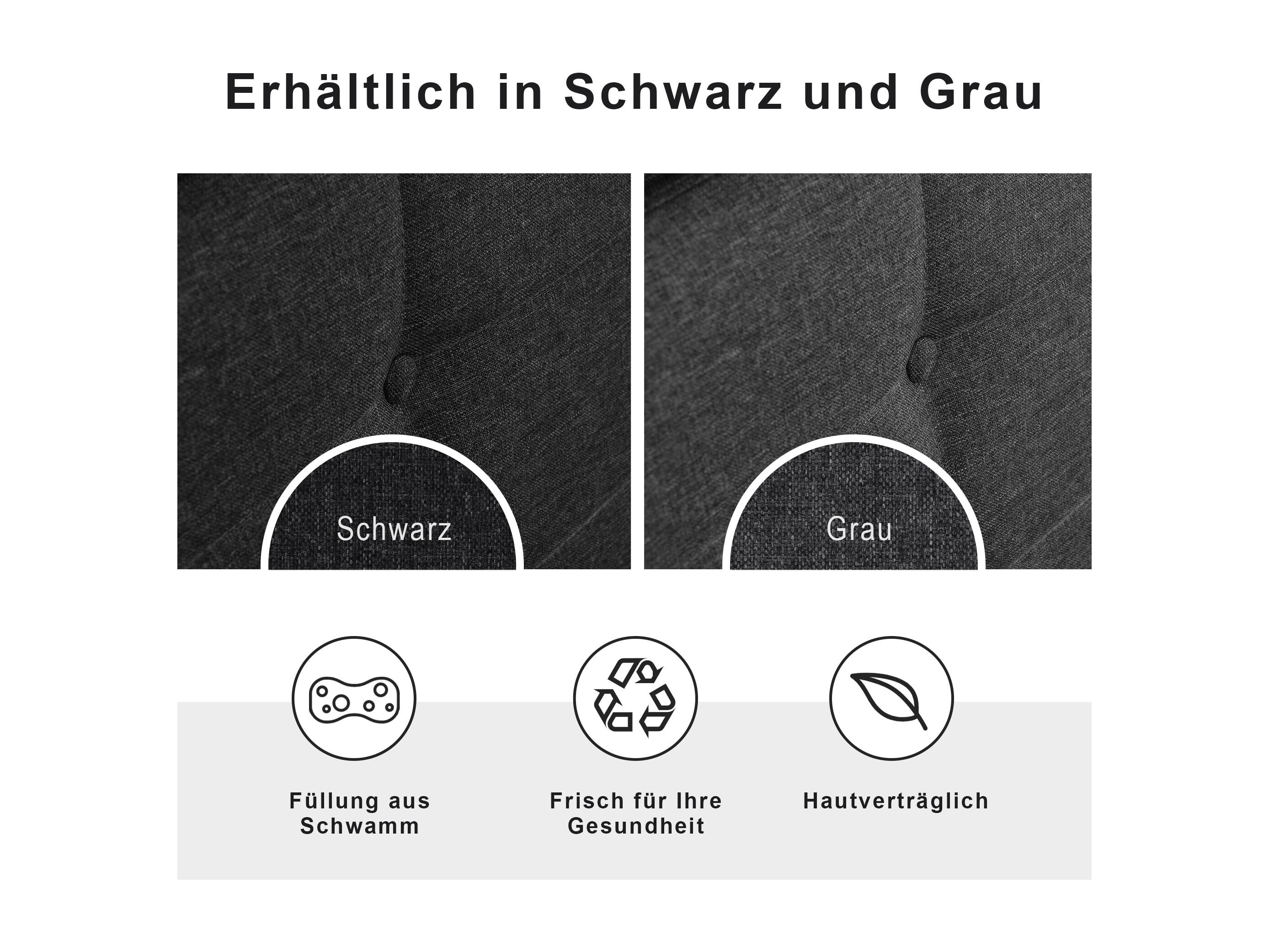 Lit capitonné 90x200 cm - Lit jeune avec éclairage LED et 2 tiroirs - Lit simple - Gris - Tissu lin