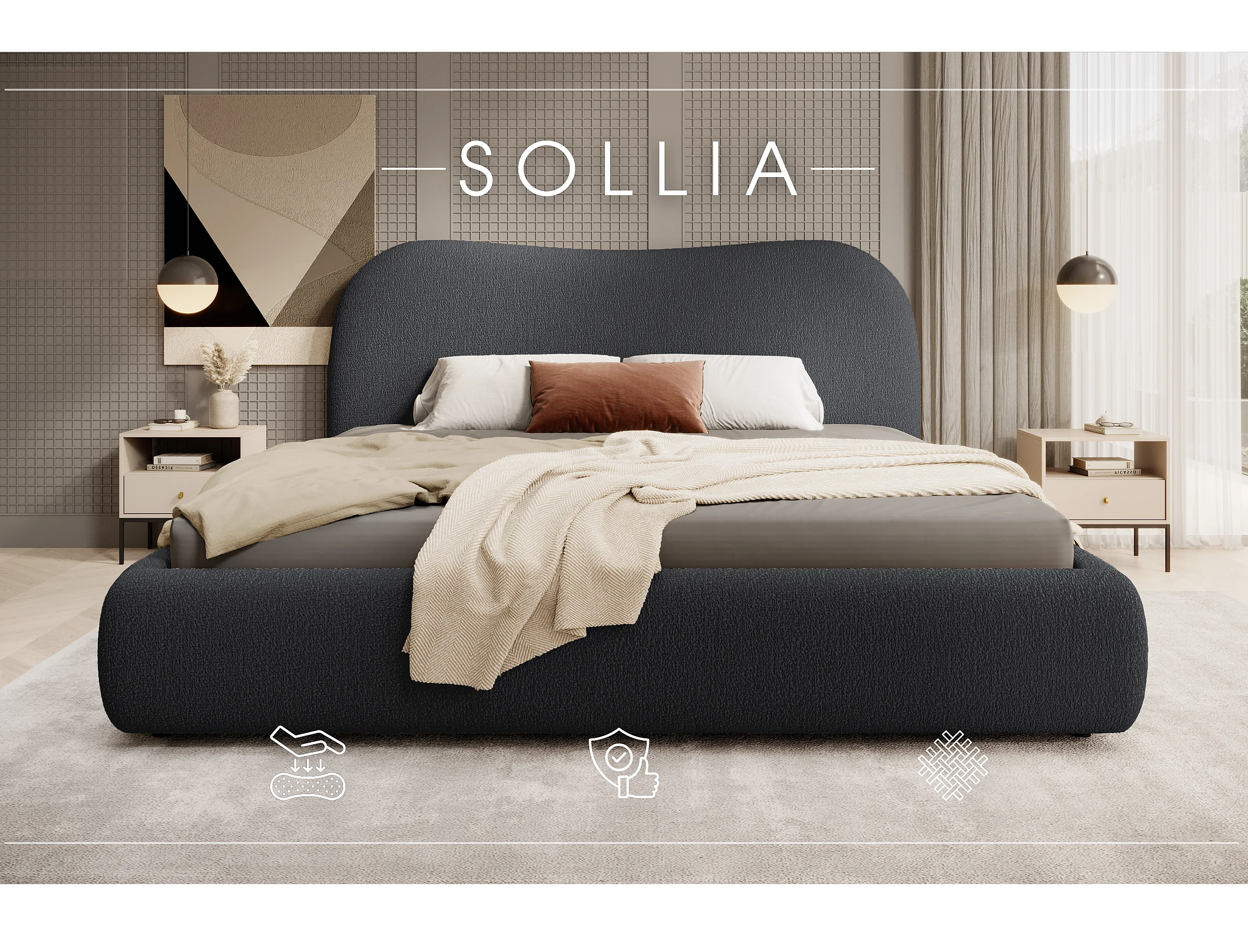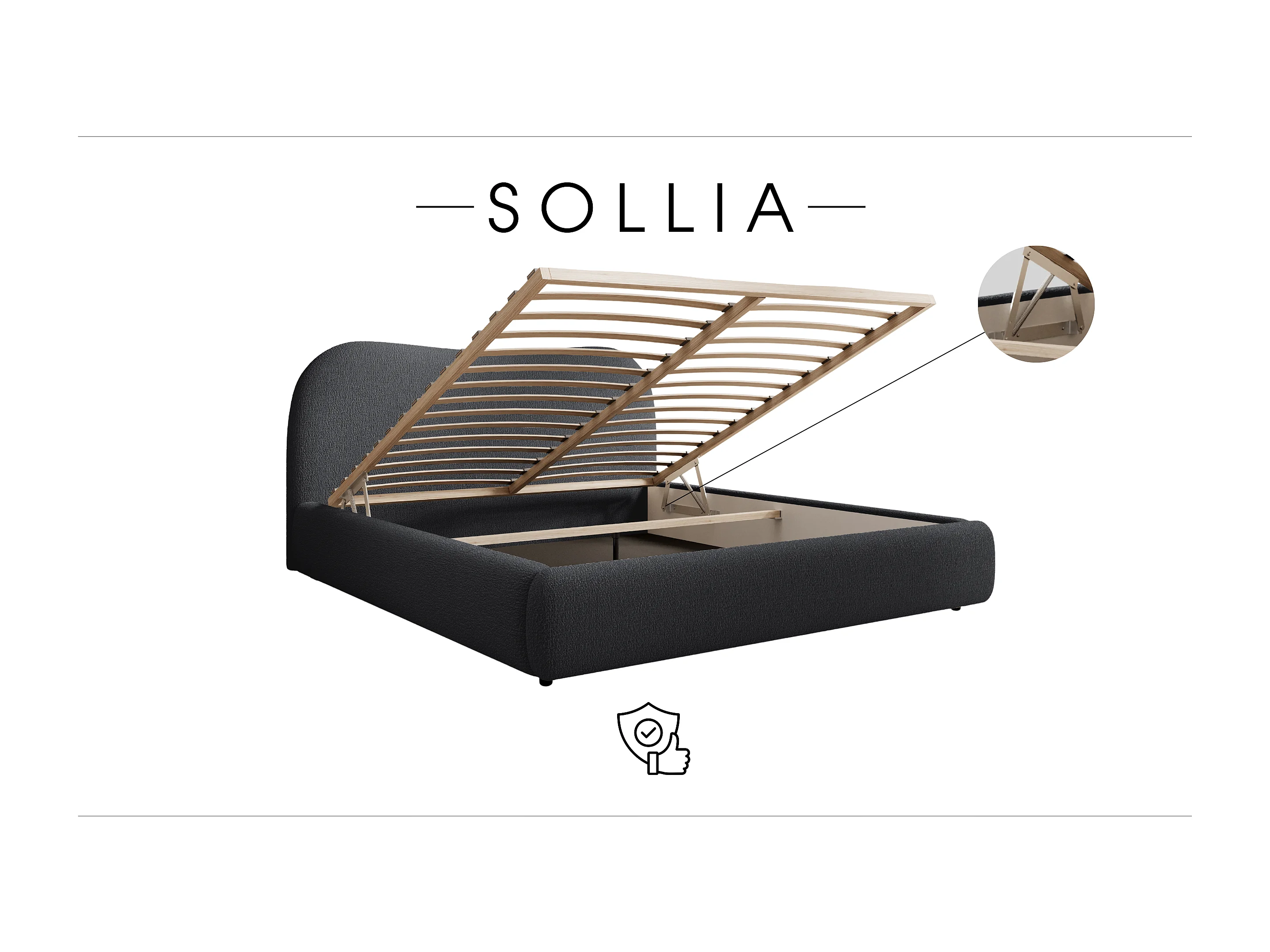 LIT CAPITONNÉ avec coffre de lit et matelas Sollia 160x200 cm, Gris foncé