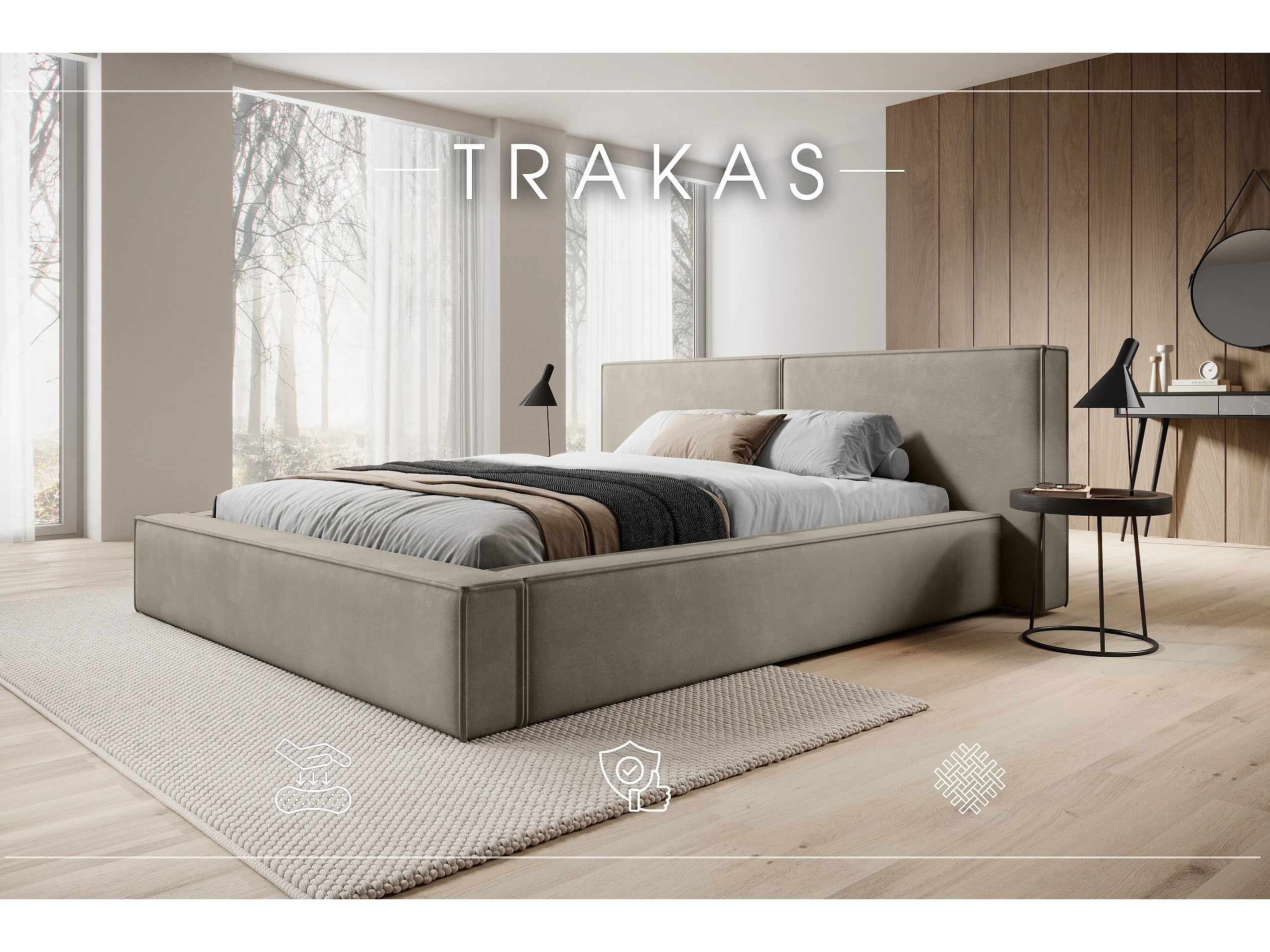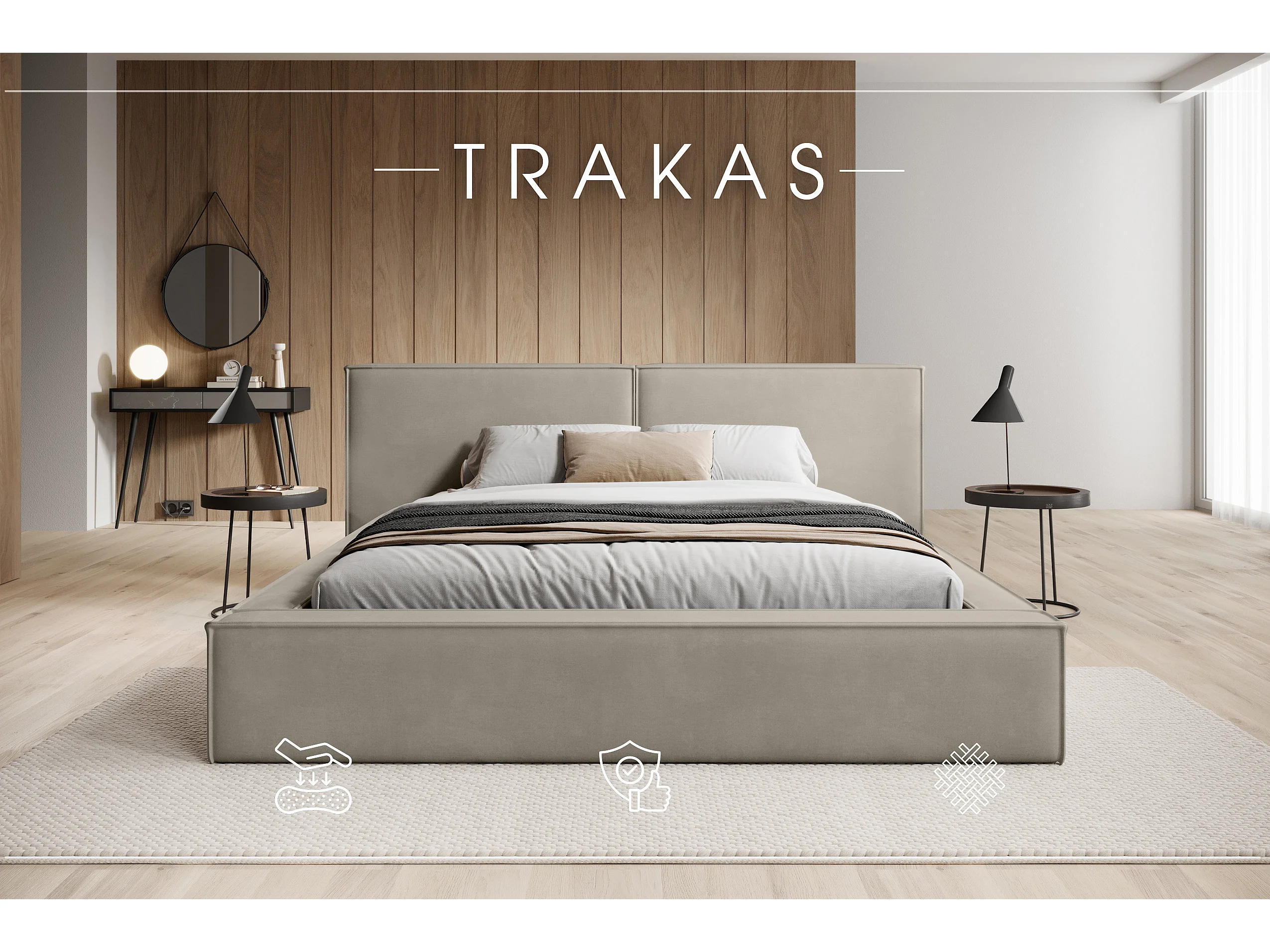 LIT CAPITONNÉ avec coffre de lit et matelas Trakas 120x200 cm, beige clair