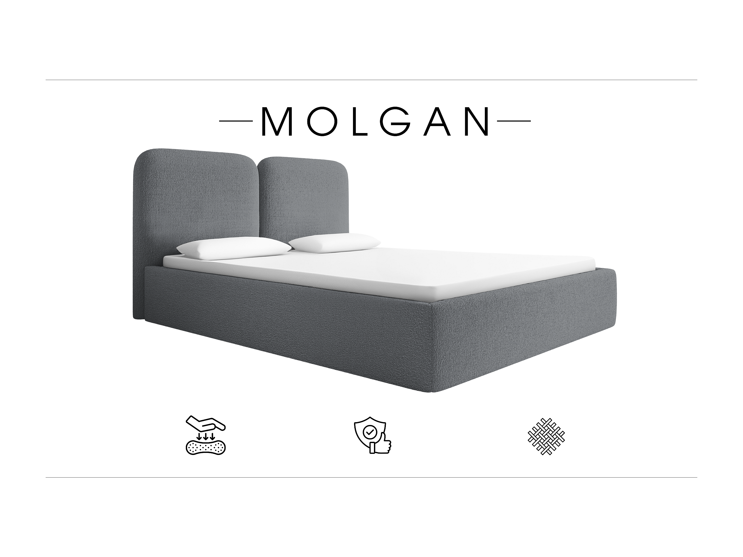 LIT CAPITONNÉ avec coffre de lit Molgan Gris clair 180x200 cm