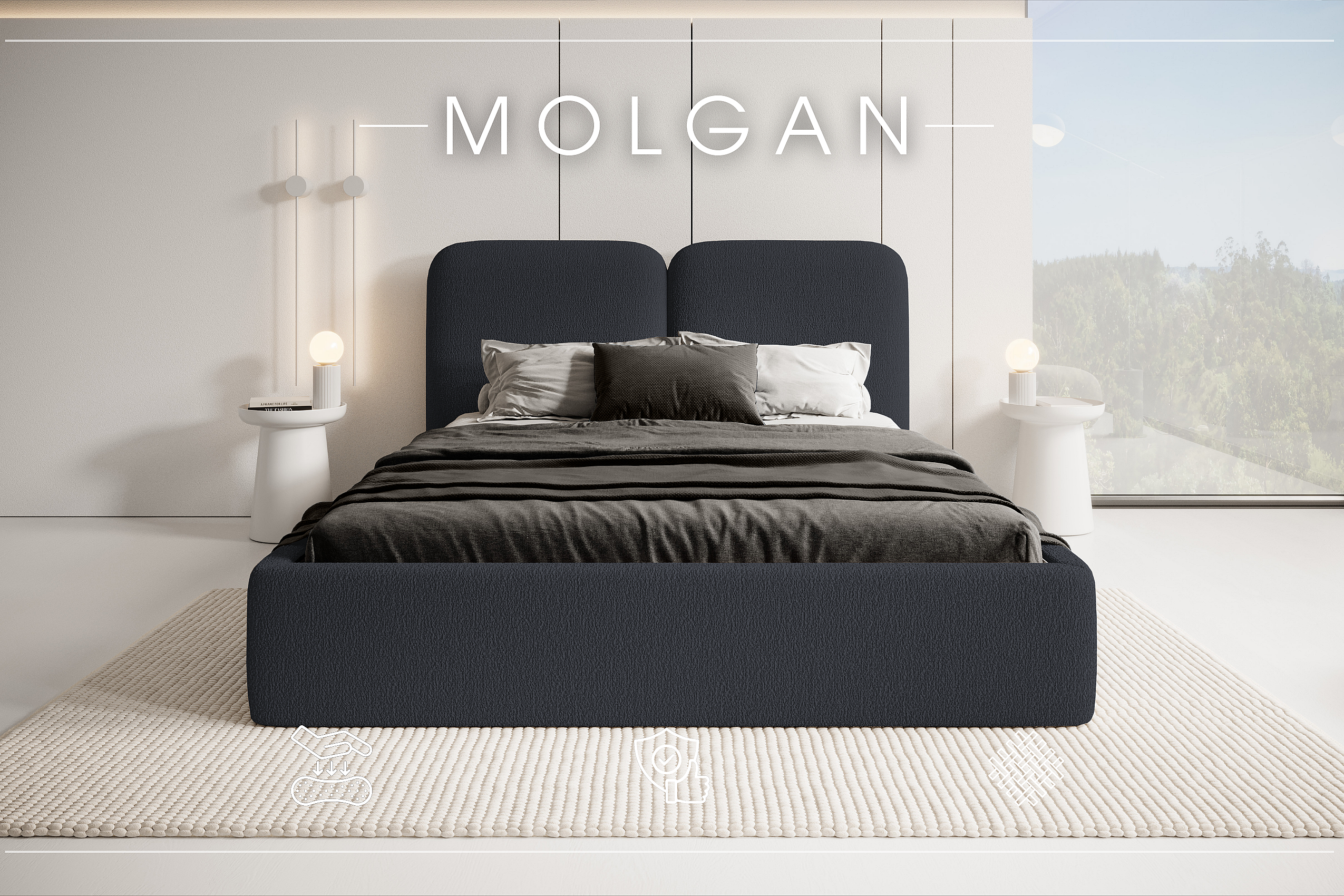 LIT CAPITONNÉ avec coffre de lit Molgan Gris foncé 120x200 cm