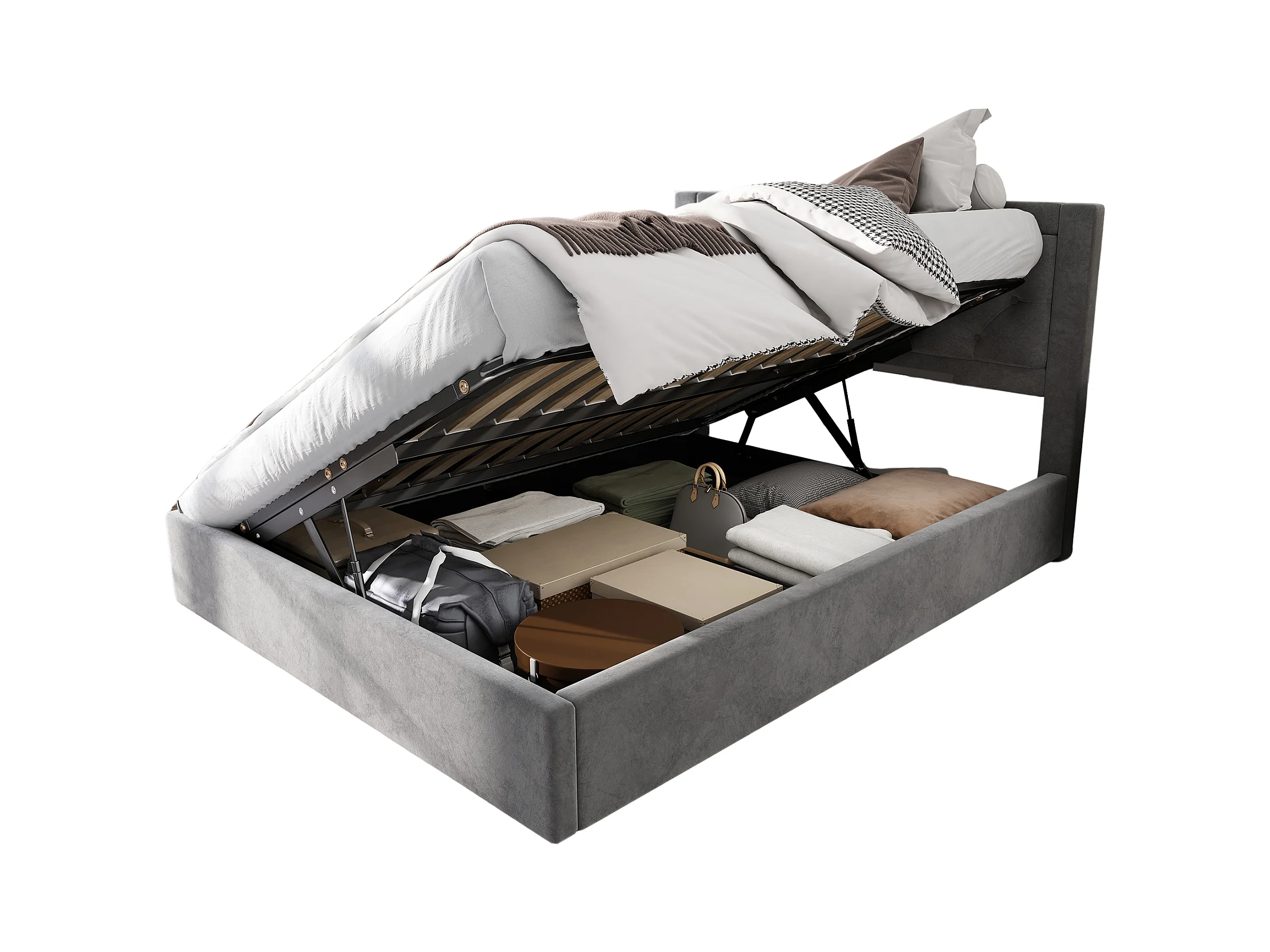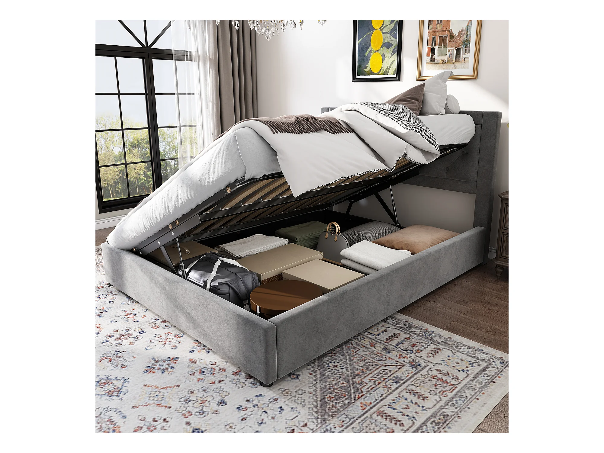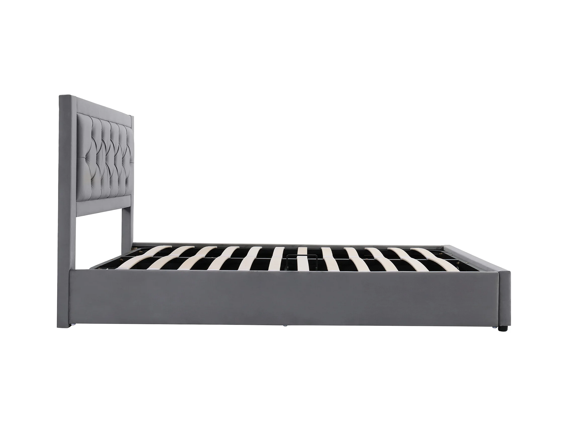 Lit capitonné avec rangement, sommier à lattes et tête de lit, Chesterfield, PU, noir (140x200 cm)