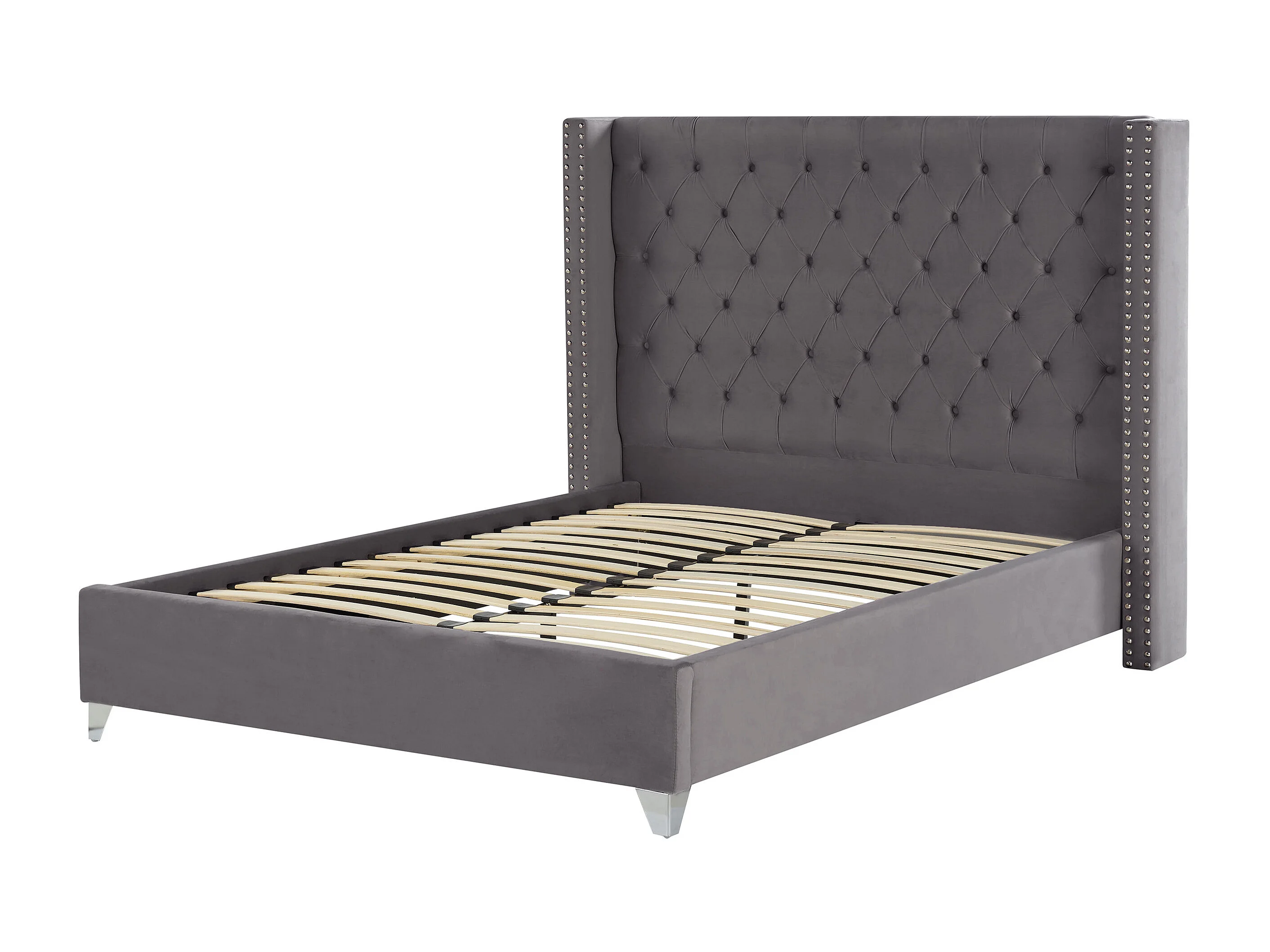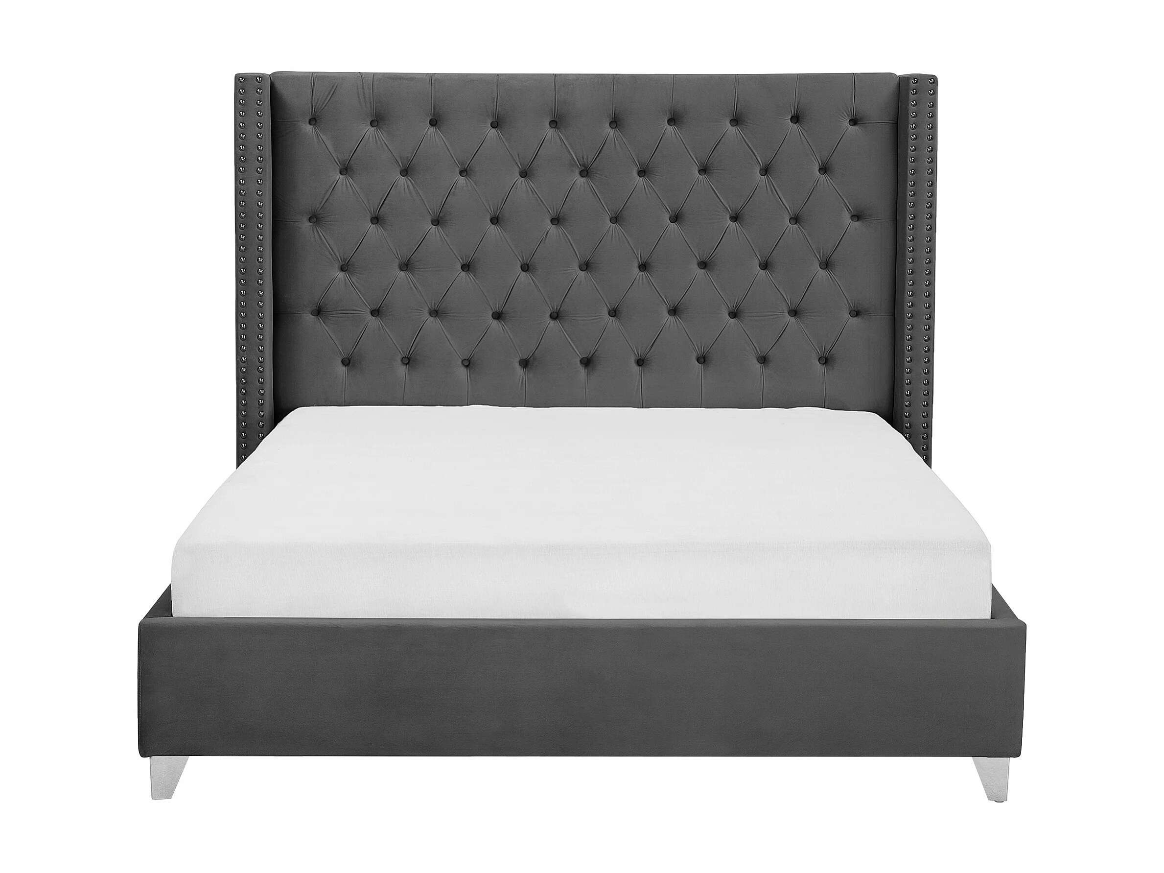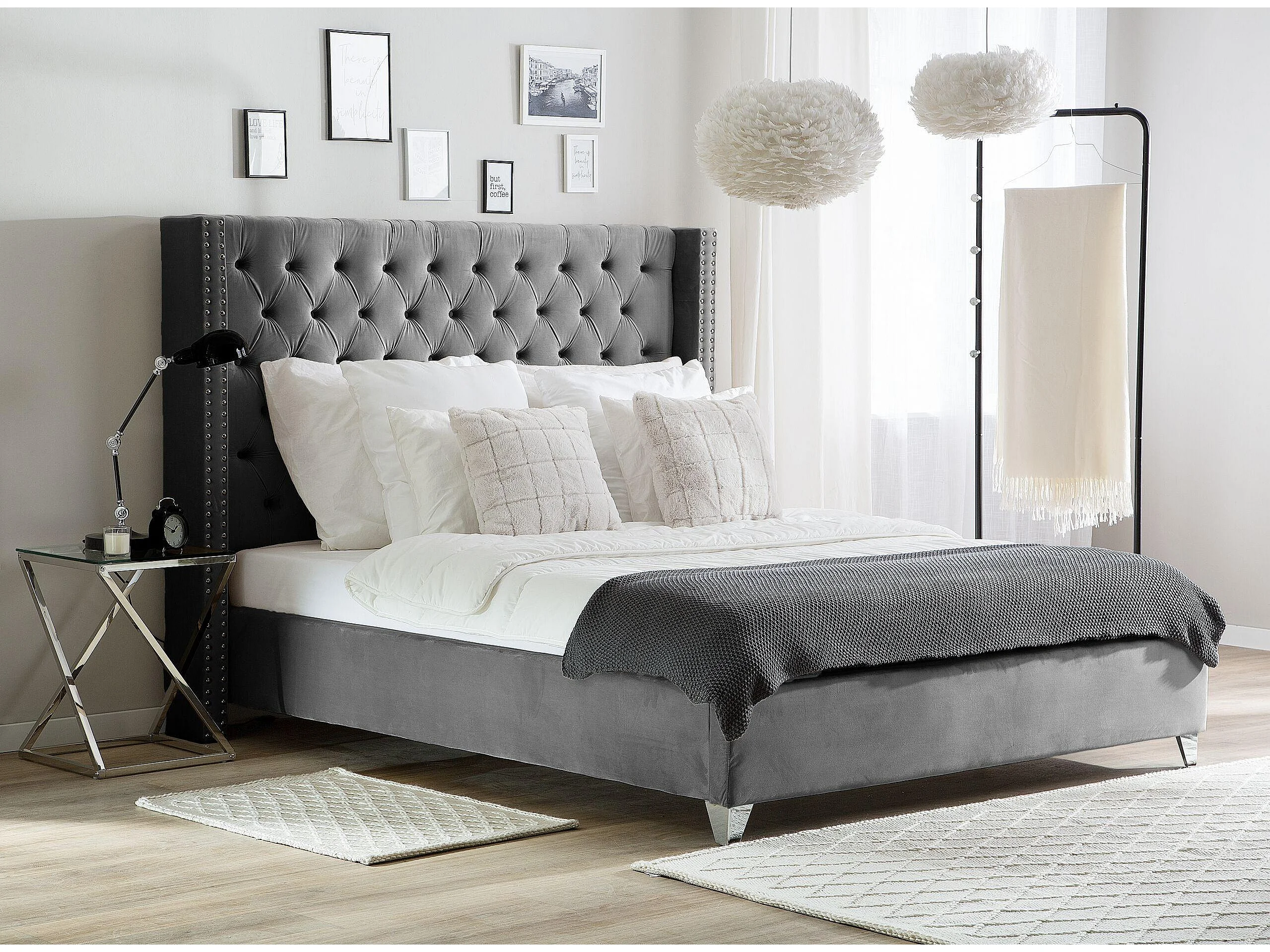 Lit capitonné Chesterfield velours Klouto-Couleur Gris-140x190