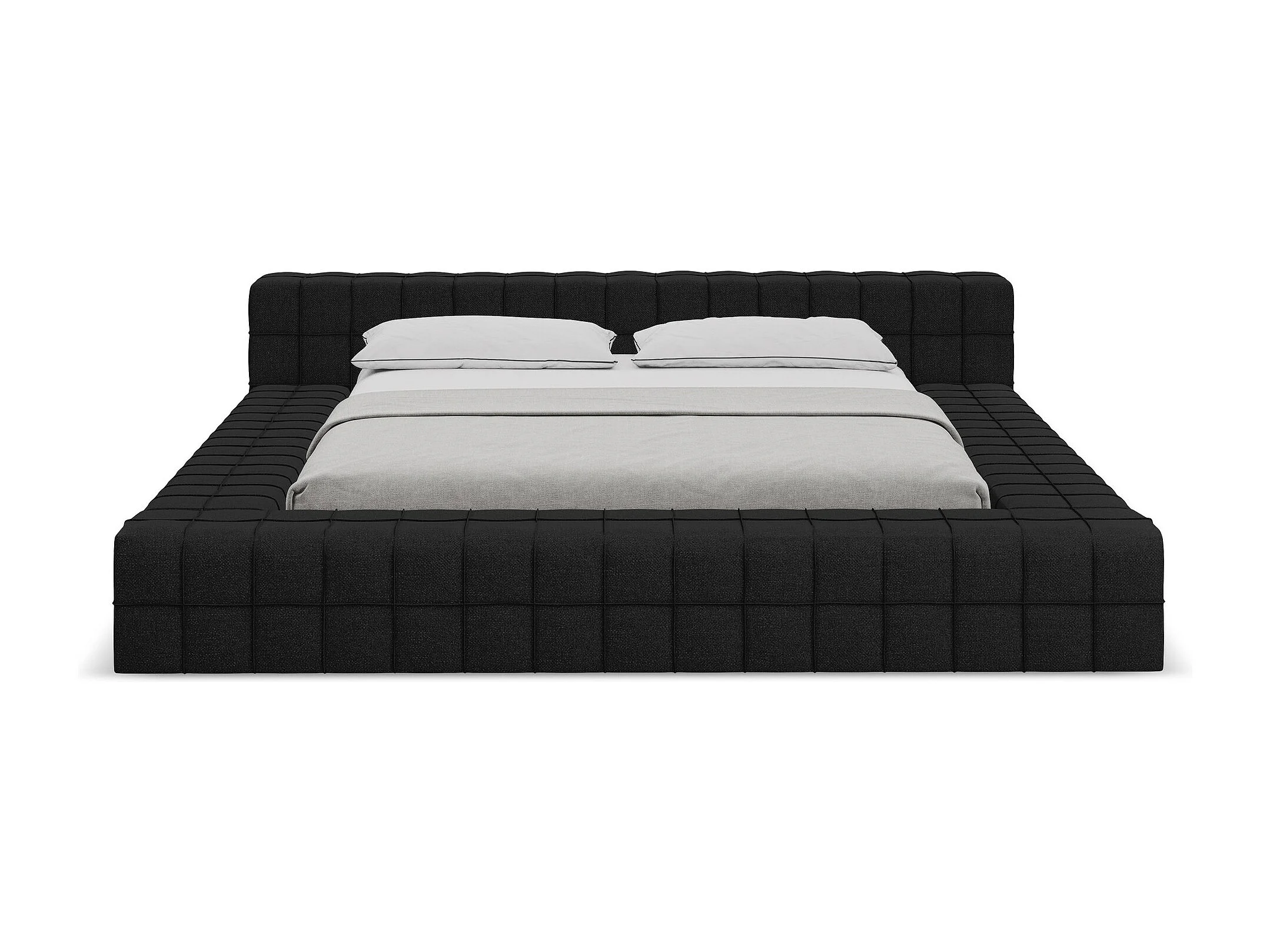 Lit capitonné en tissu chenille 160 x 200 - noir - AKELA