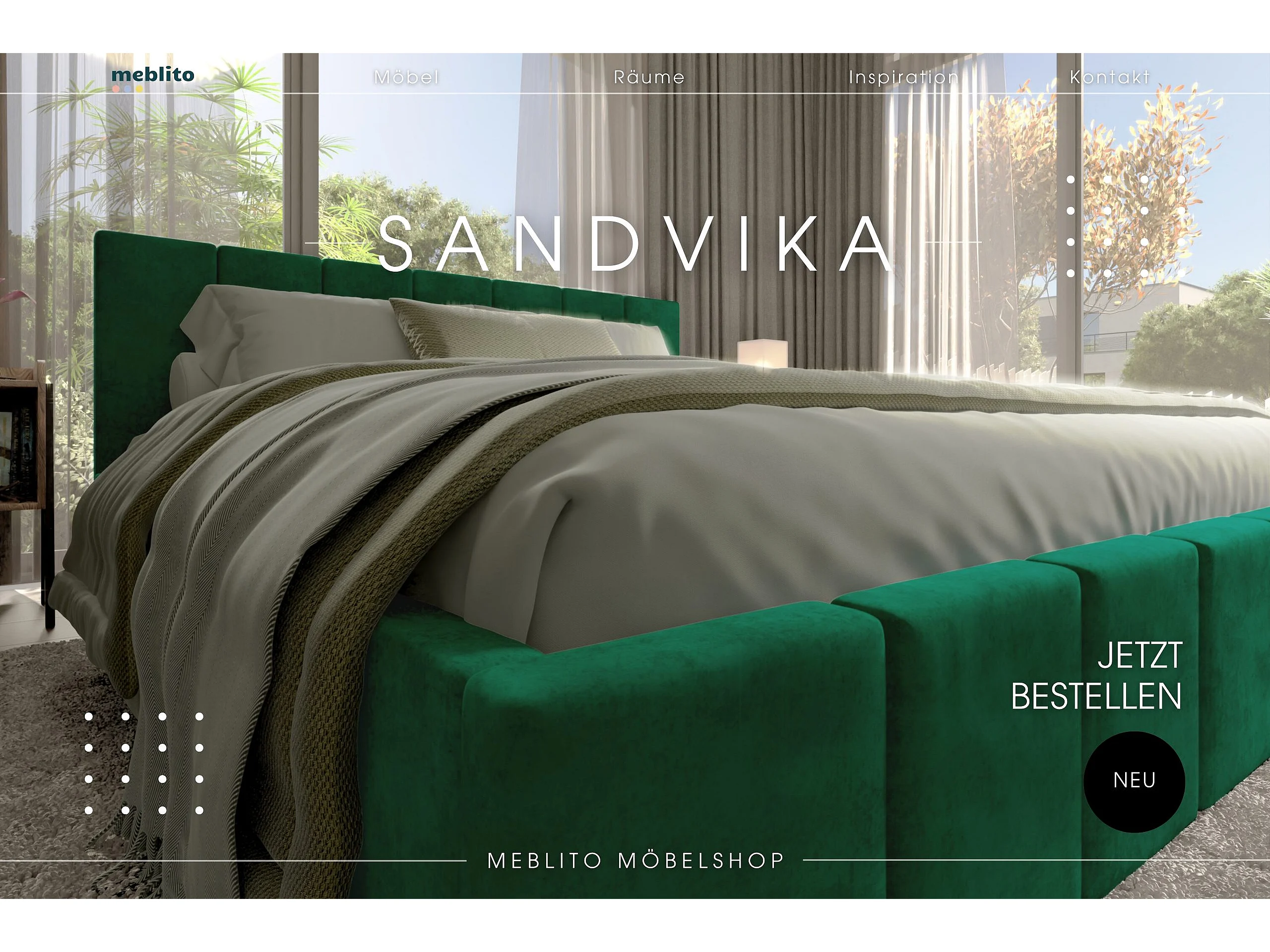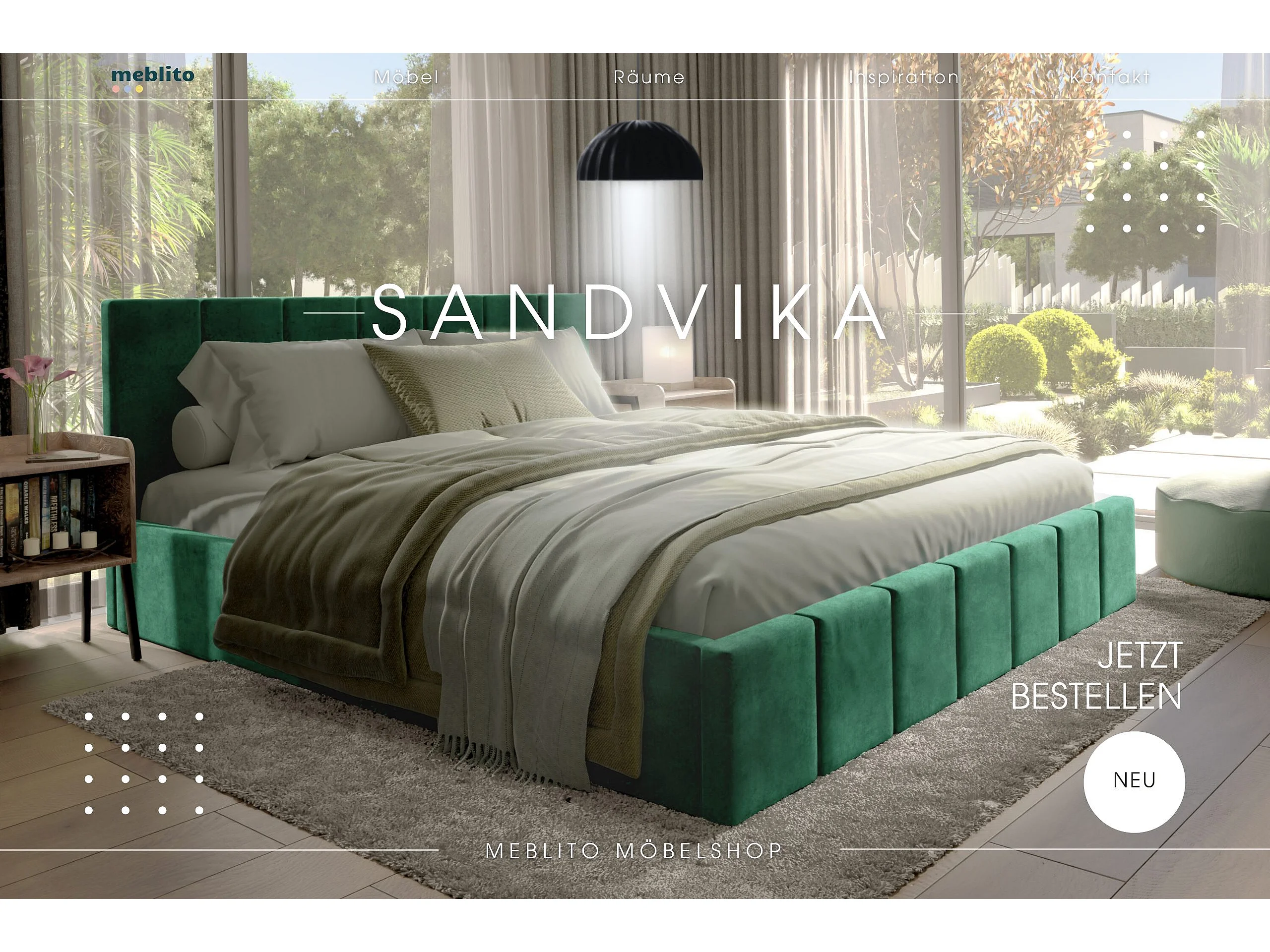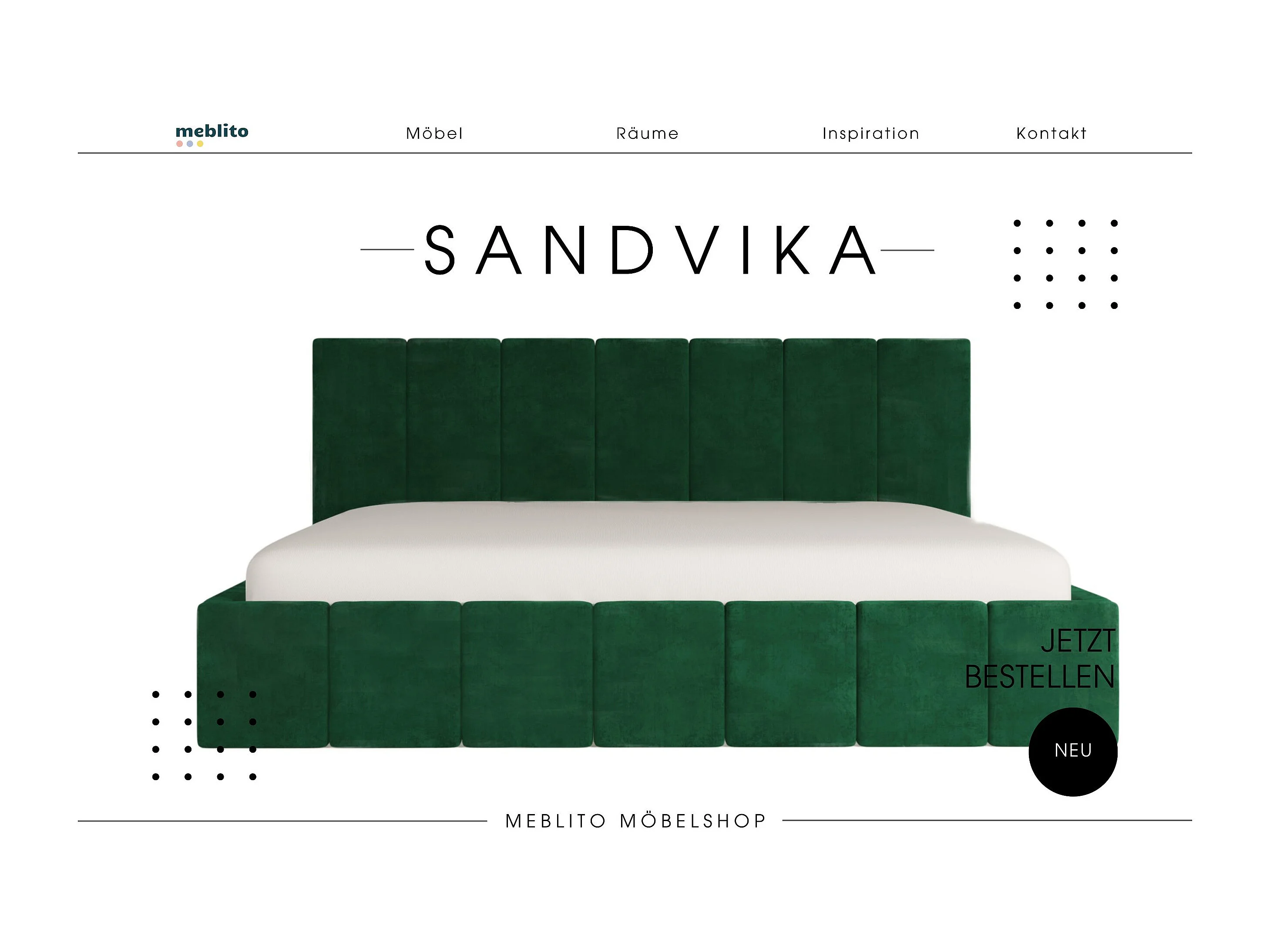 LIT CAPITONNÉ en velours Sandvika Vert 180x200 cm