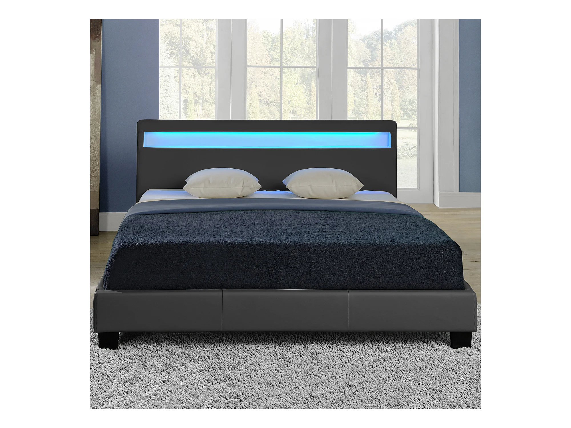 Lit capitonné LED Paris 140 x 200 cm Gris Foncé Corium
