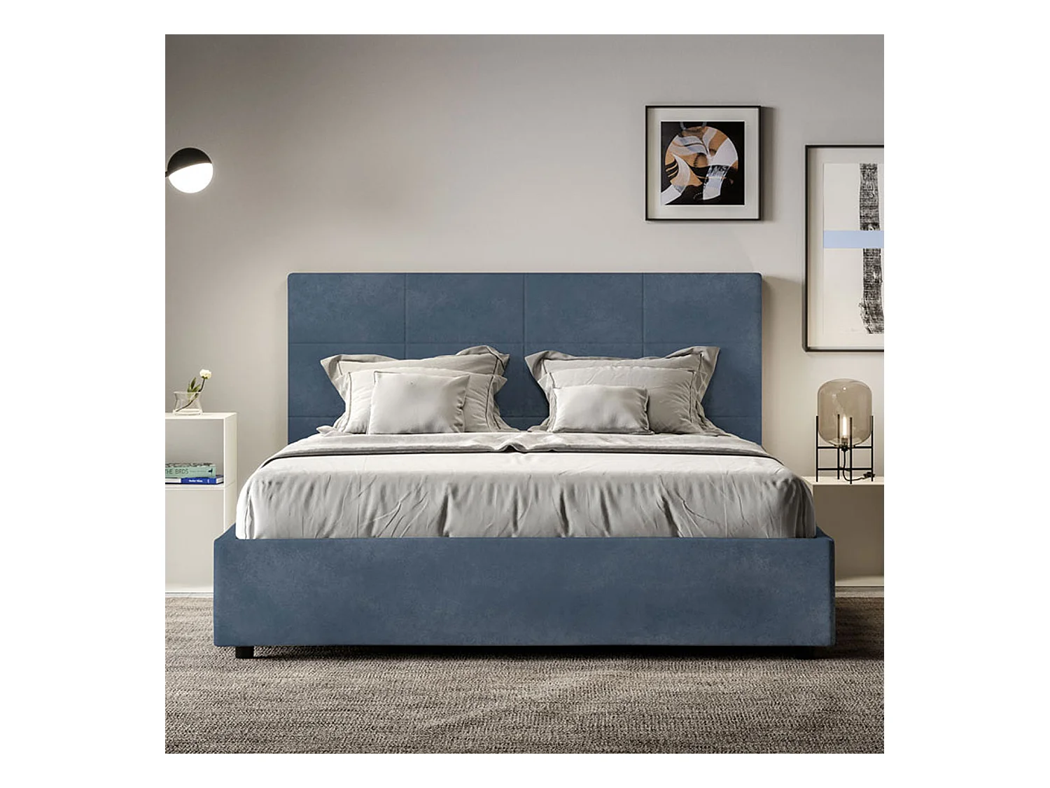 Lit sans sommier rembourré 160x200 microfibre bleu Mika