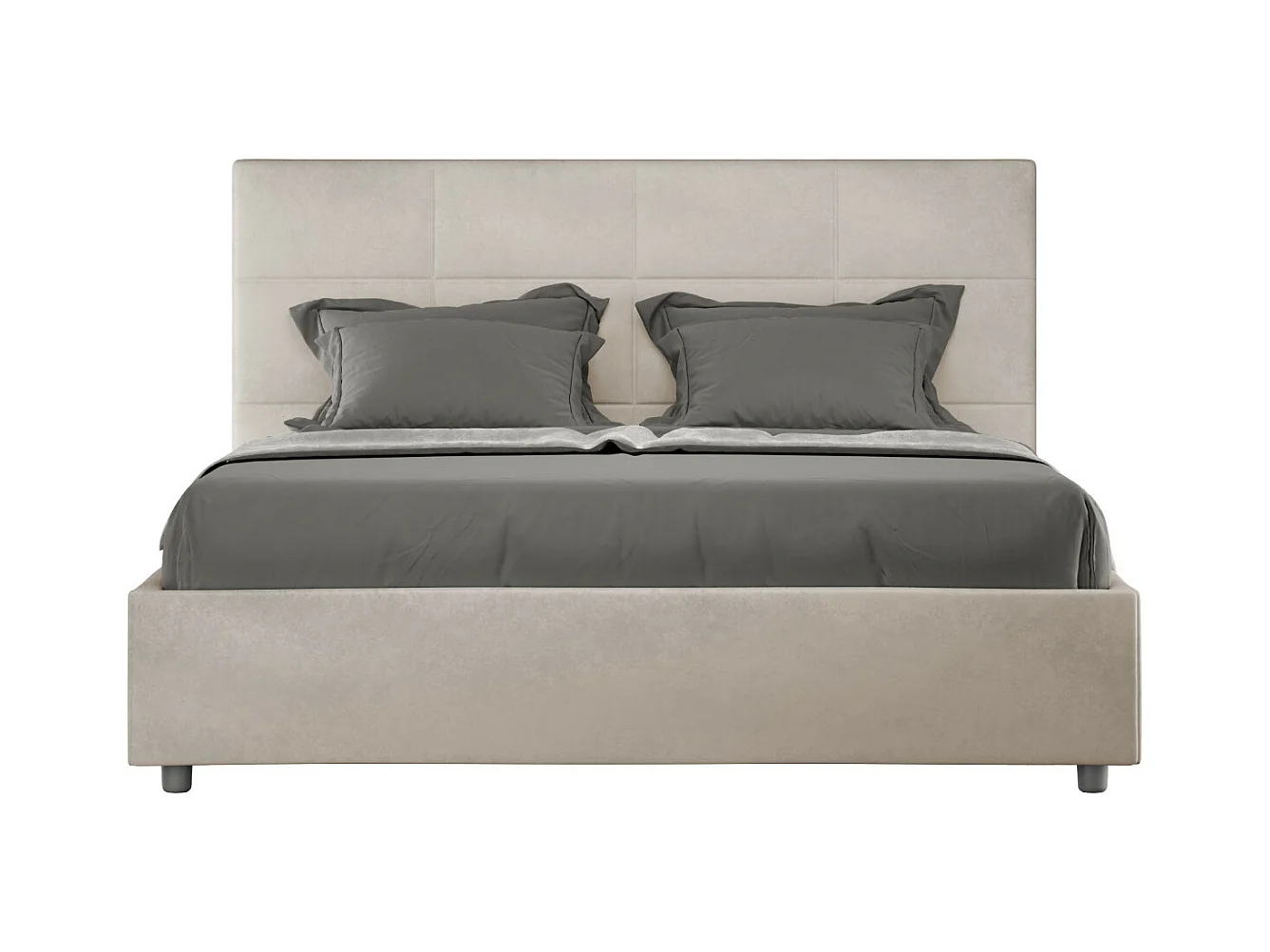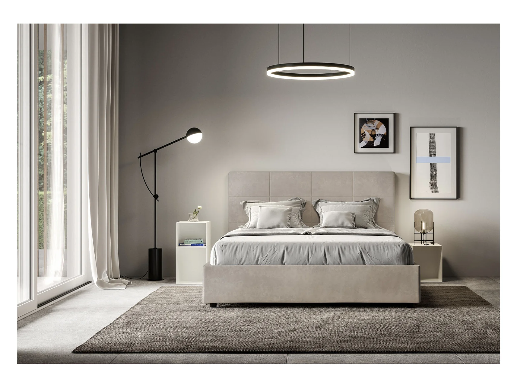 Lit capitonné microfibre Mira-Couleur Beige-120x190-Option Avec sommier
