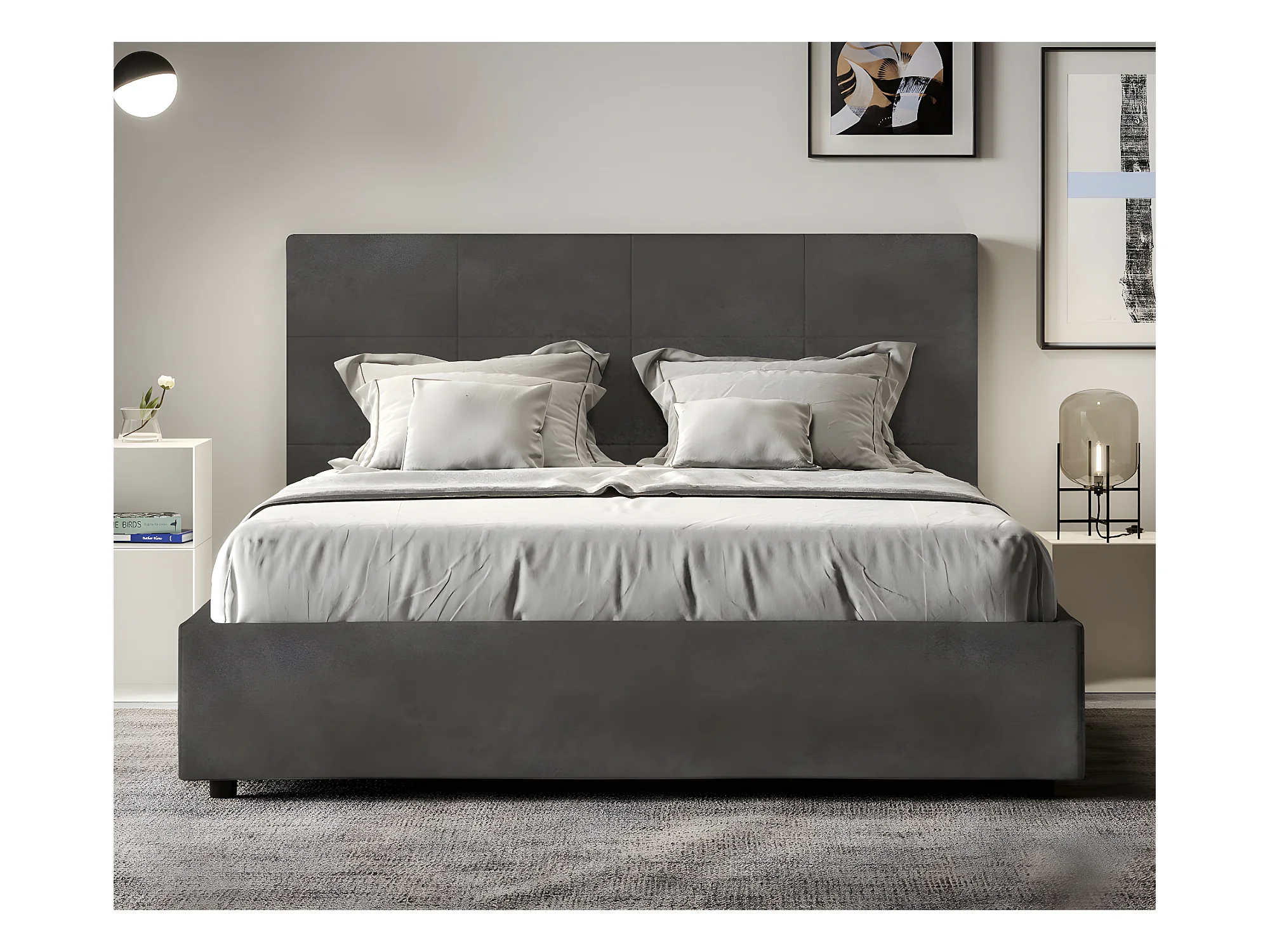 Lit capitonné microfibre Mira-Couleur Gris foncé-140x190