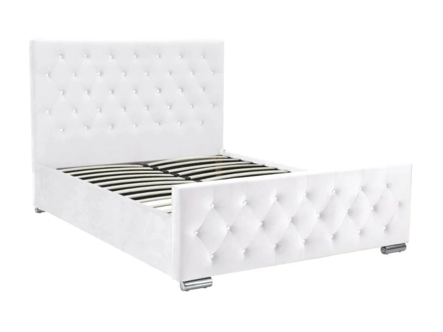 Lit capitonné velours avec boutons scintillants incrustés Luxia-Couleur Blanc-140x190