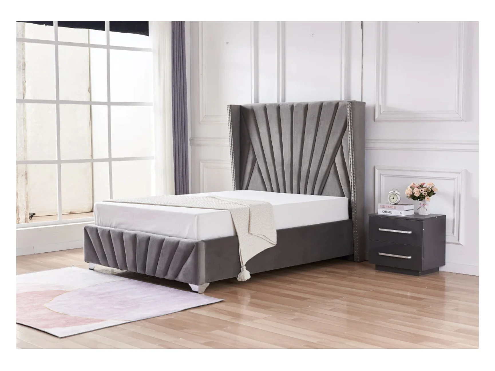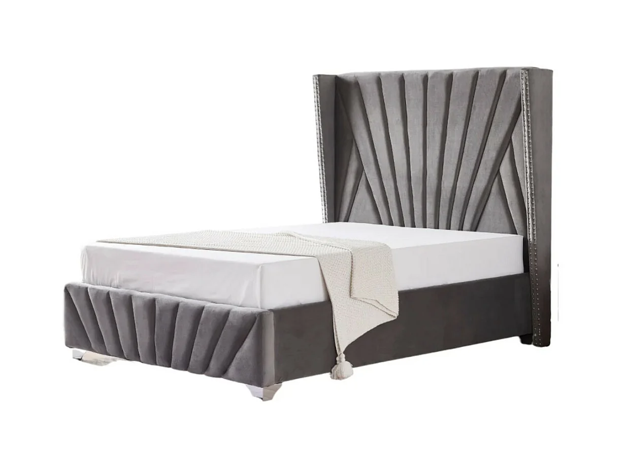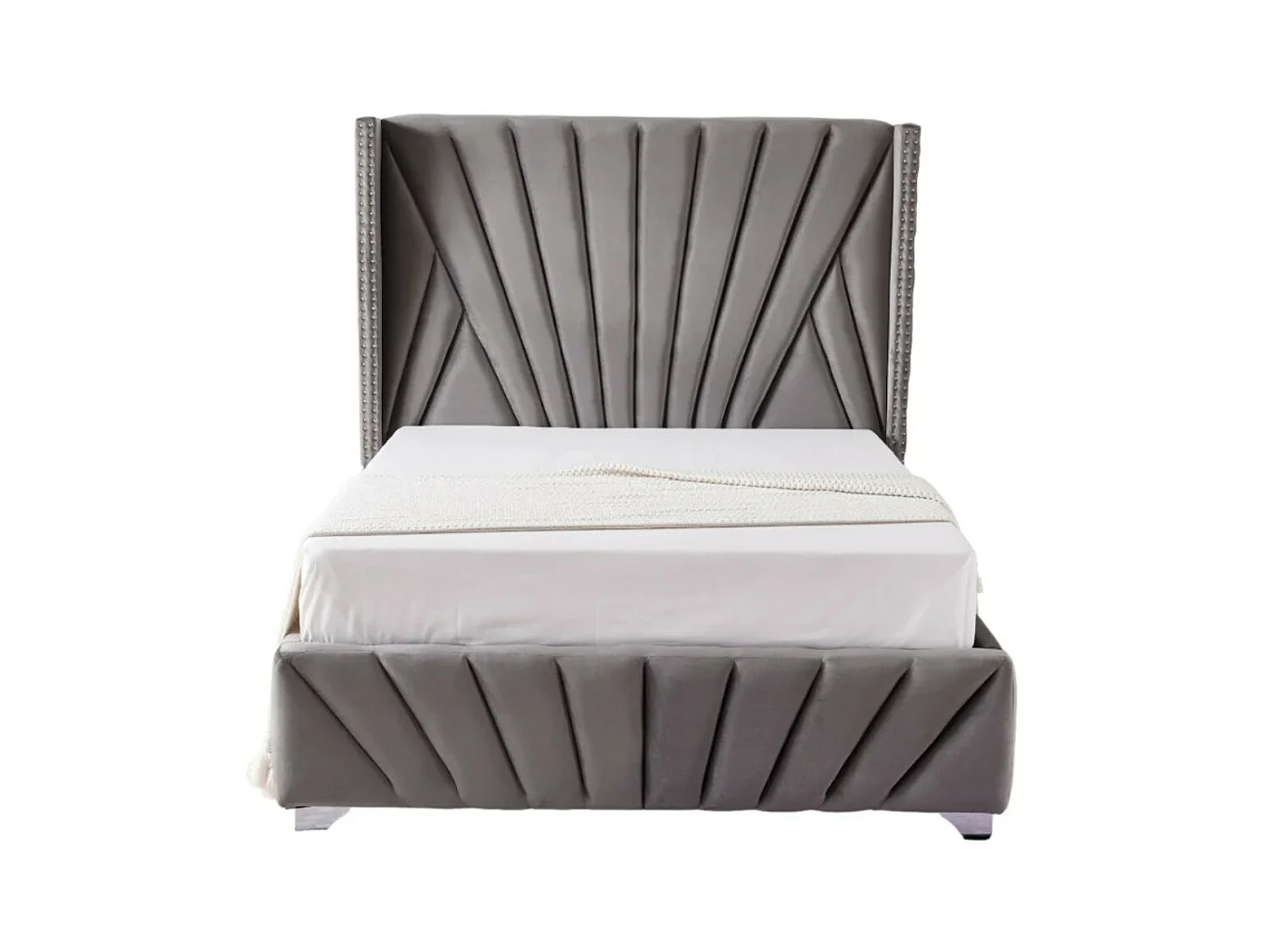 Lit capitonné velours Kalio-Couleur Gris-160x200