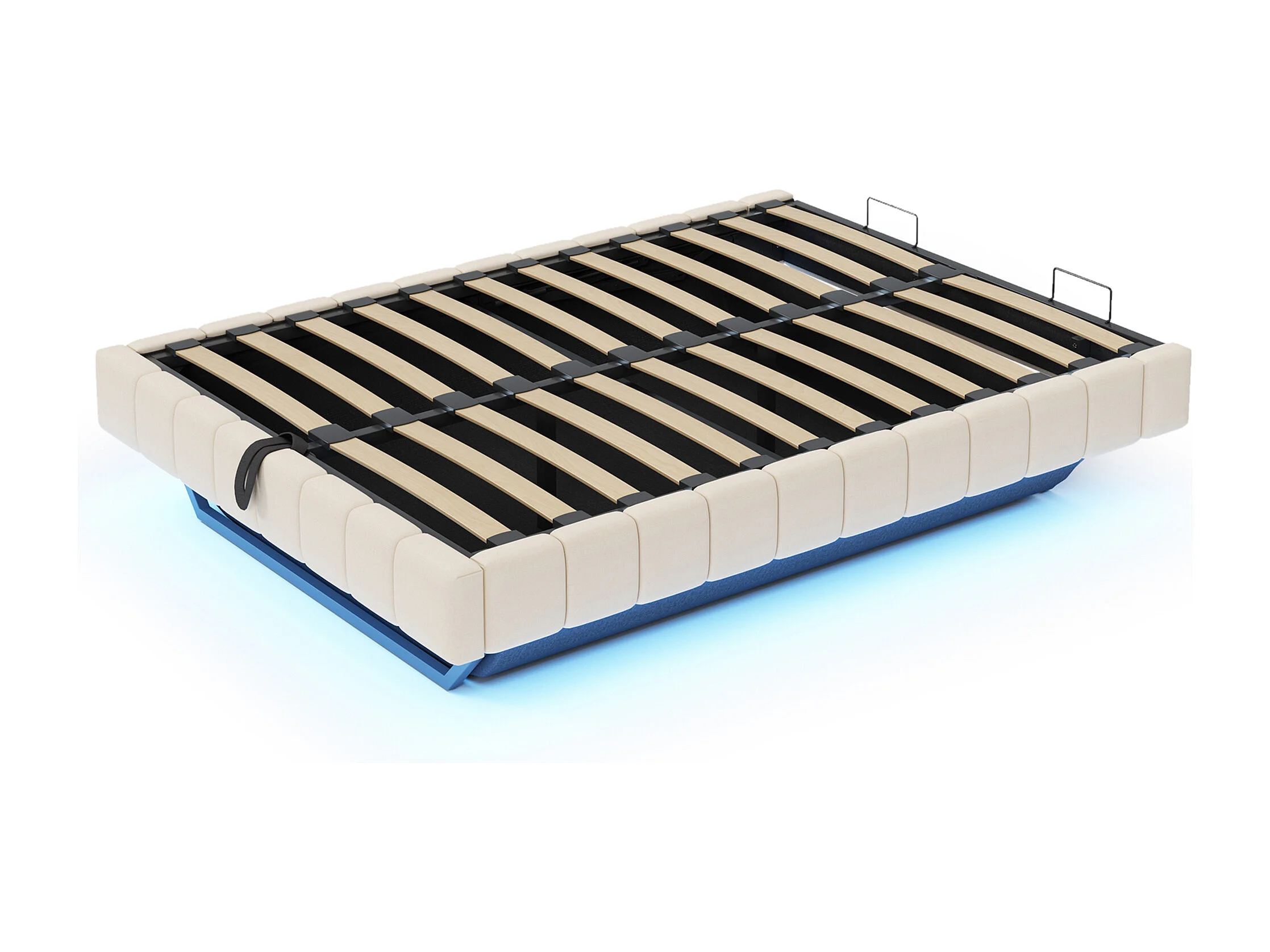 Lit capitonné140 x 200 cm, avec espace de rangement, sans tête de lit, avec LED, lin, Beige