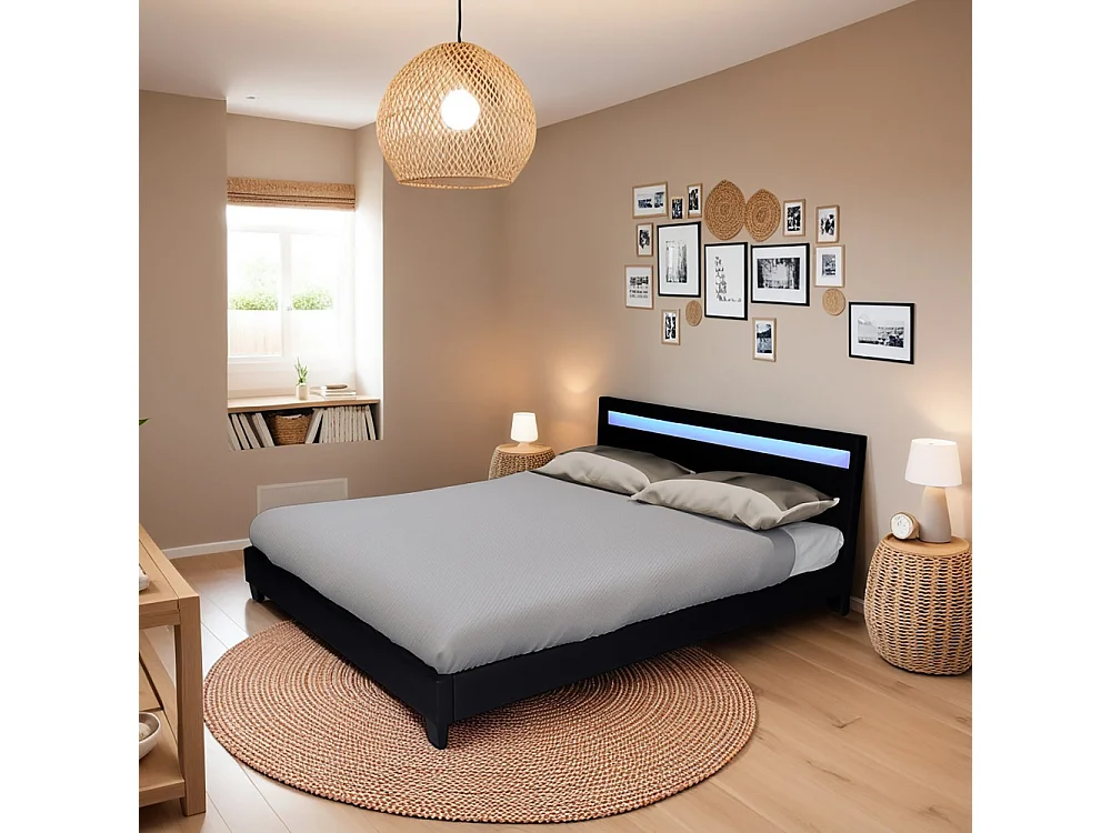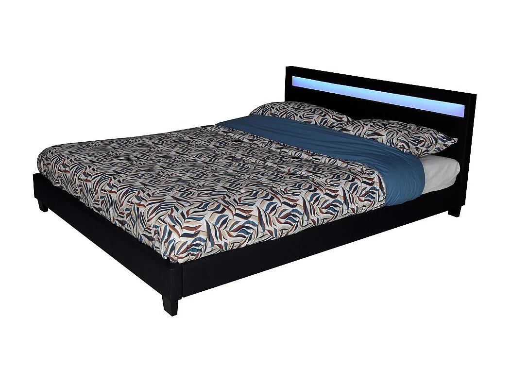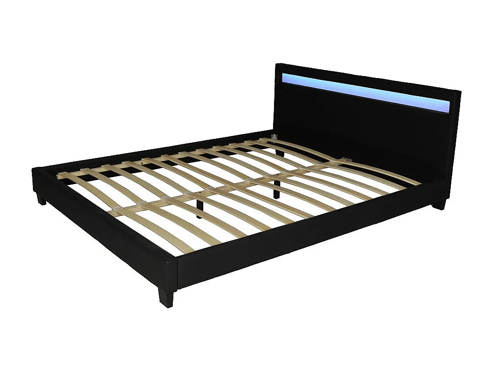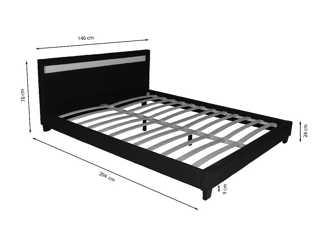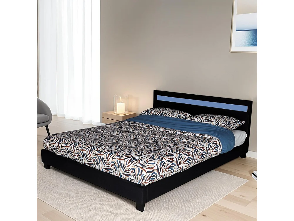 Lit CARDIFF 140x190, éclairage LED + 1 sommier / Noir