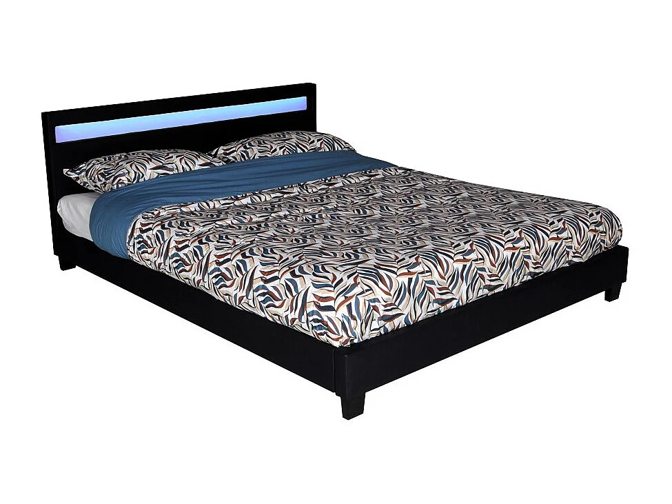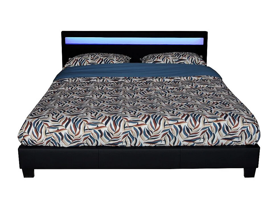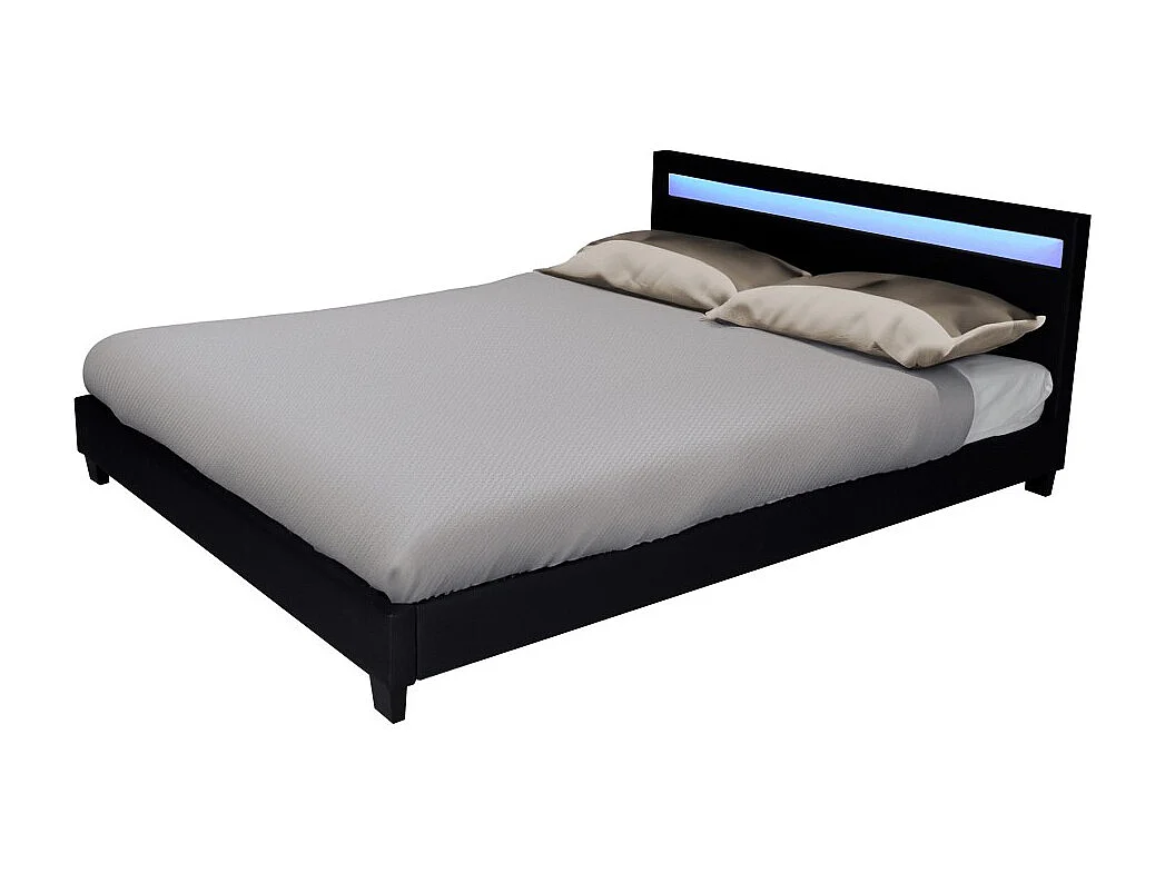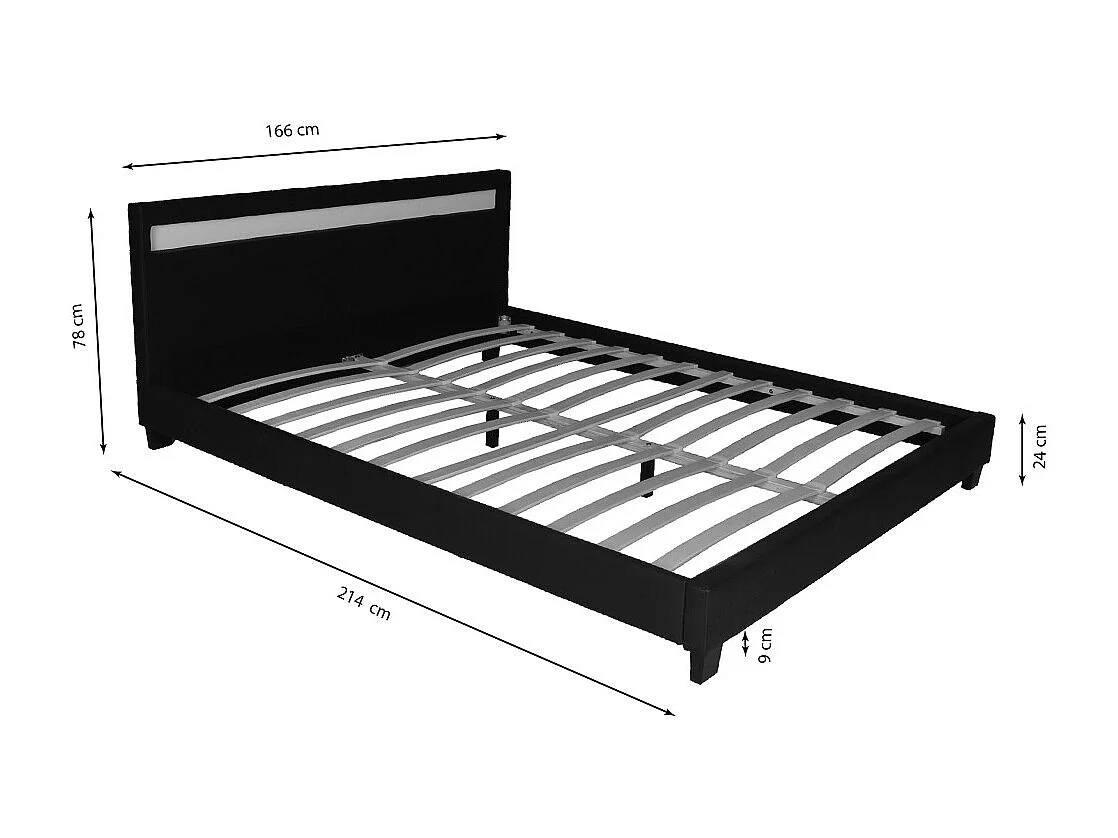 Lit CARDIFF 160x200, éclairage LED + 1 sommier / Noir