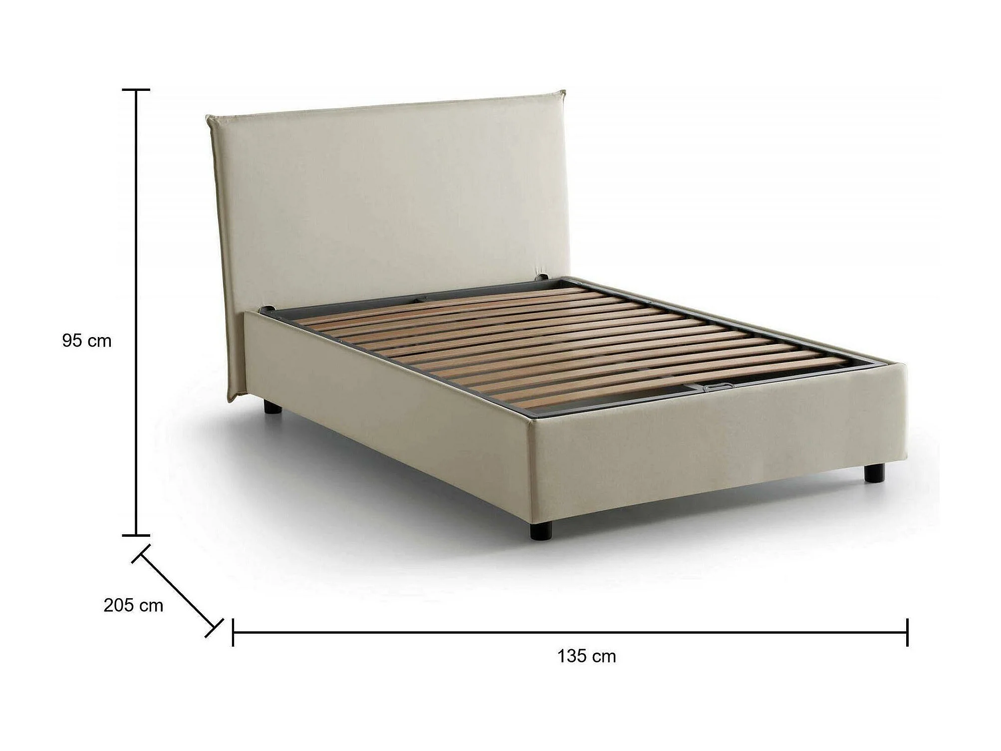 Lit double Dacer, lit coffre avec revêtement en tissu, 100% Made in Italy, ouverture frontale, adapté pour matelas 120x190 cm, Beige