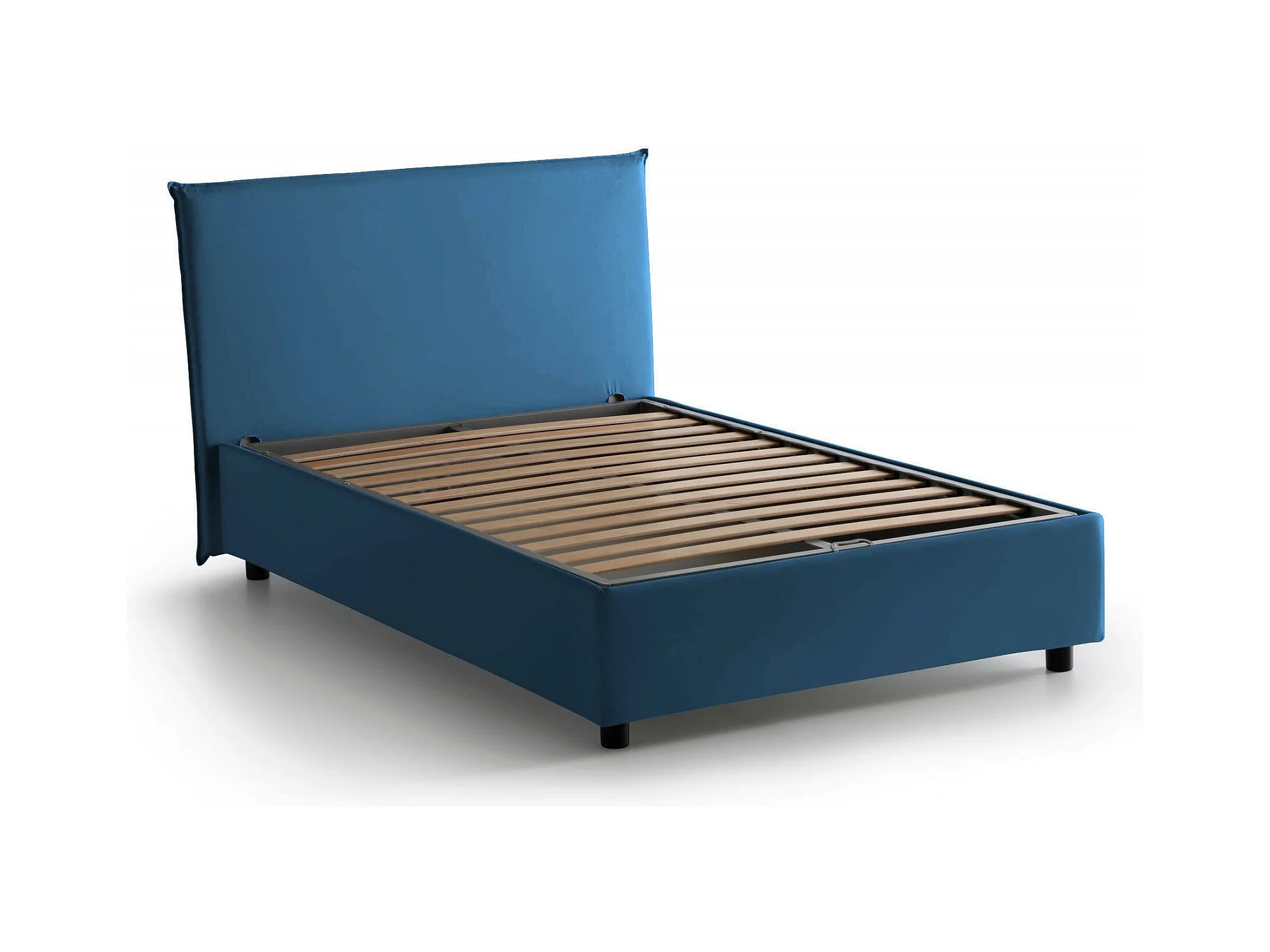 Lit double Dacer, lit coffre avec revêtement en tissu, 100% Made in Italy, ouverture frontale, adapté pour matelas 120x190 cm, bleu