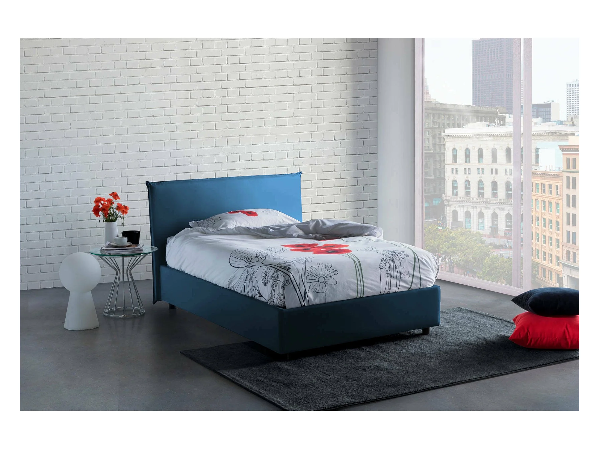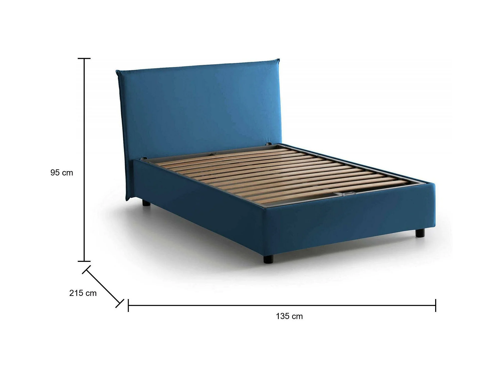 Lit double Dpalear, Lit coffre avec revêtement en tissu, 100% Made in Italy, Ouverture frontale, avec matelas 120x200 cm inclus, Bleu