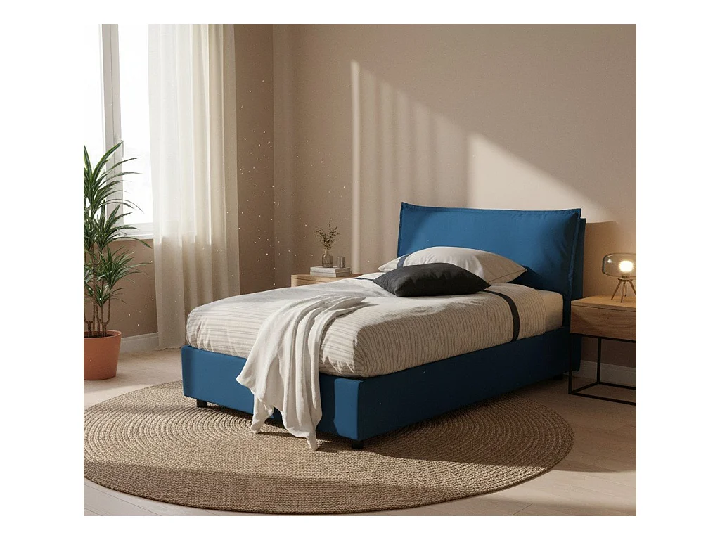 Lit double Dbegi, lit coffre avec revêtement en tissu, 100% Made in Italy, ouverture frontale, adapté pour matelas 120x200 cm, bleu