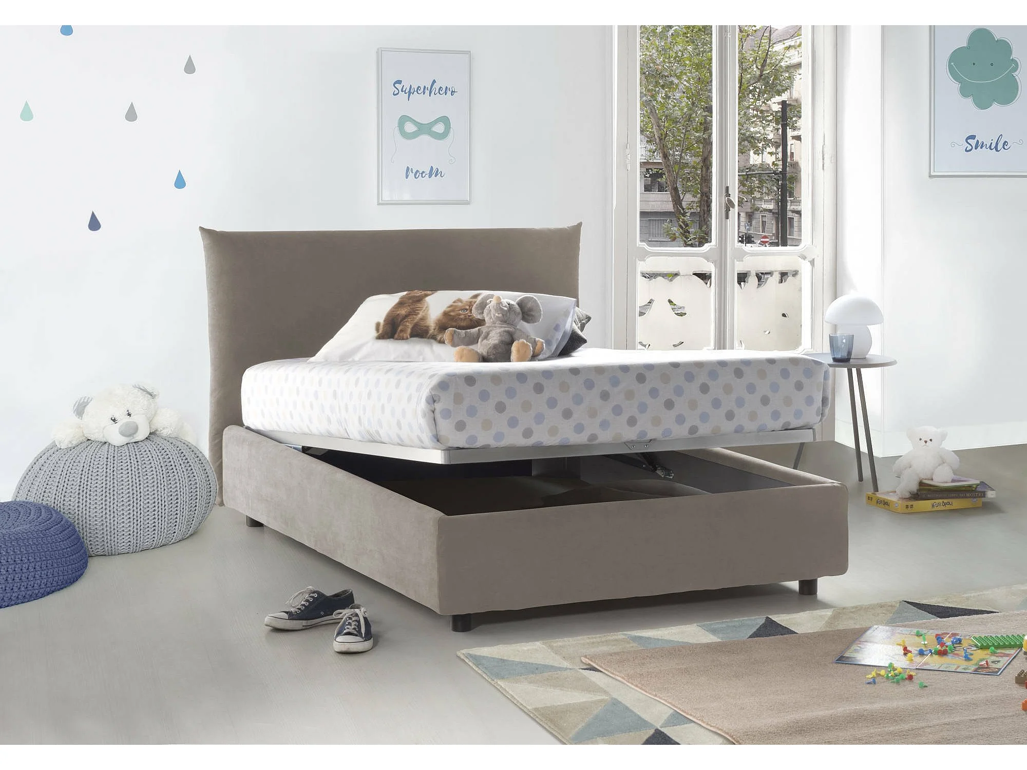 Lit double Dbranc, lit coffre avec revêtement en tissu, 100% Made in Italy, ouverture frontale, avec matelas 120x190 cm inclus, gris tourterelle