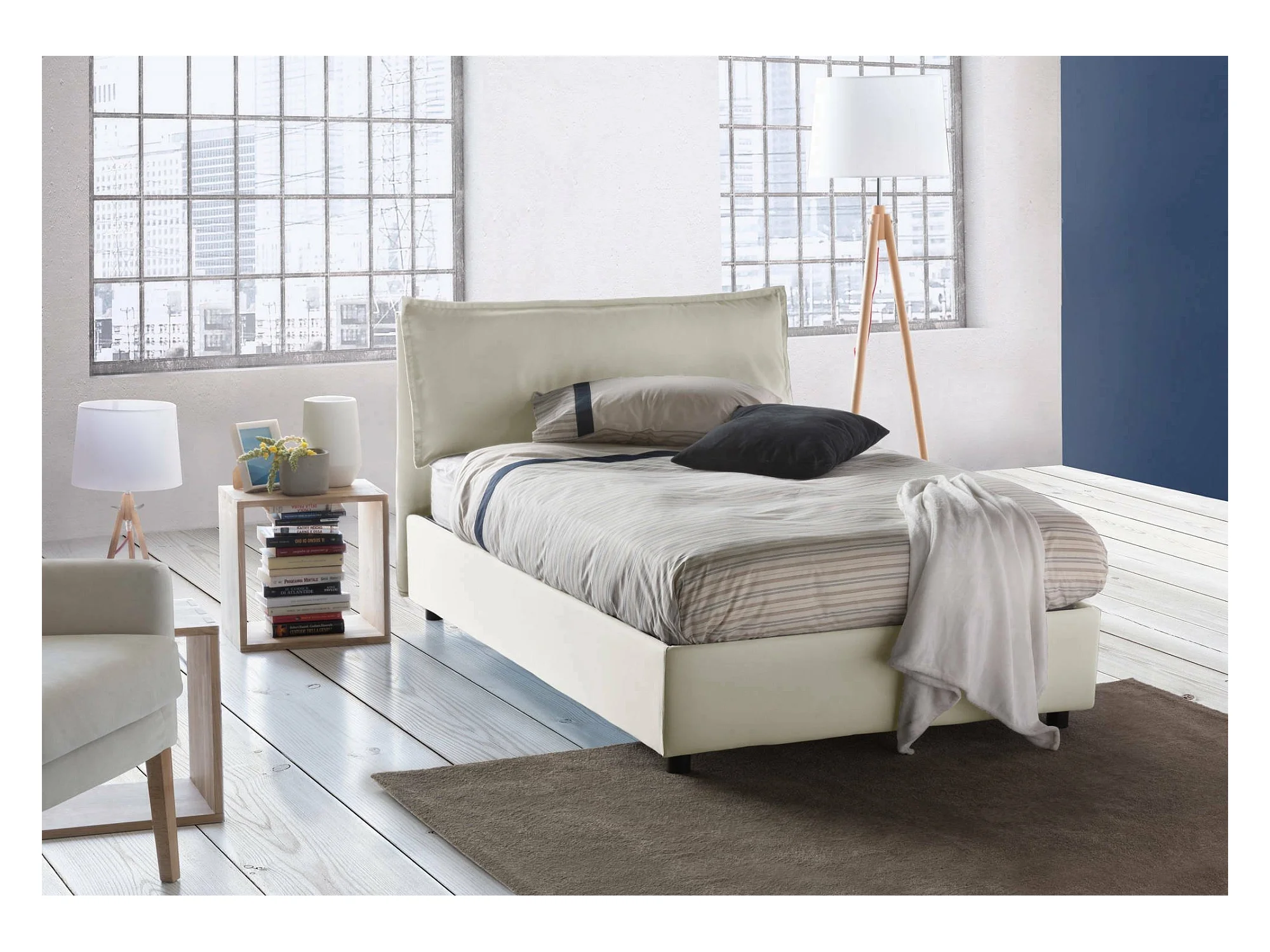 Lit double Dcasade, Lit coffre avec revêtement en tissu, 100% Made in Italy, Ouverture frontale, avec matelas 120x190 cm inclus, Beige