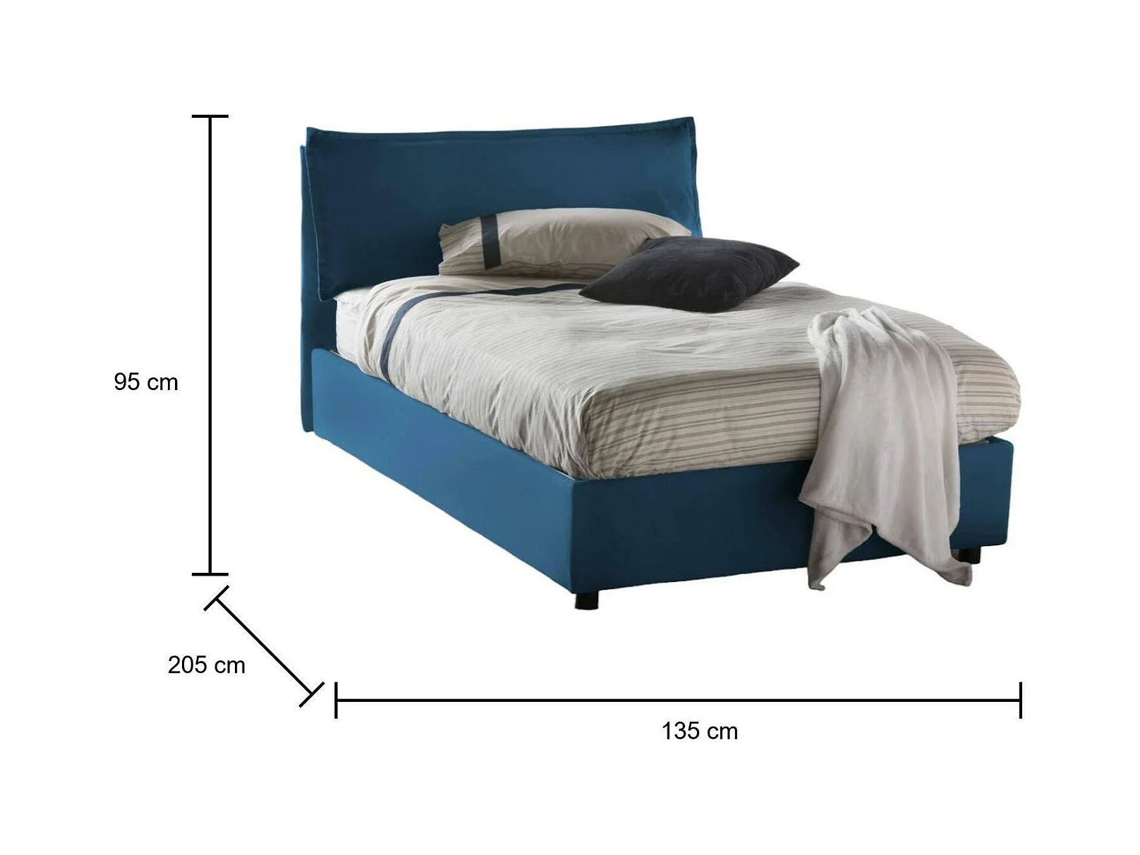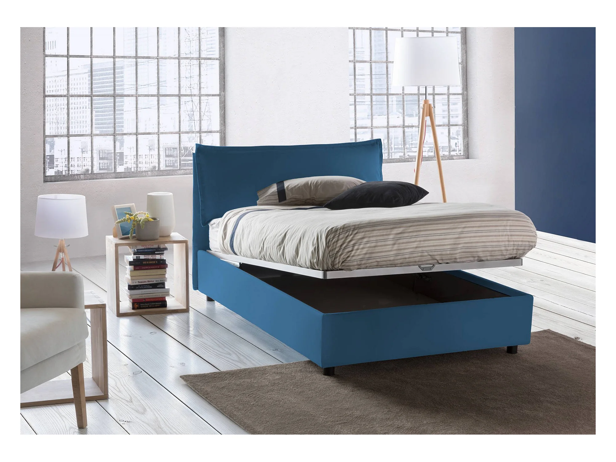 Lit double Dcasade, Lit coffre avec revêtement en tissu, 100% Made in Italy, Ouverture frontale, avec matelas 120x190 cm inclus, Bleu