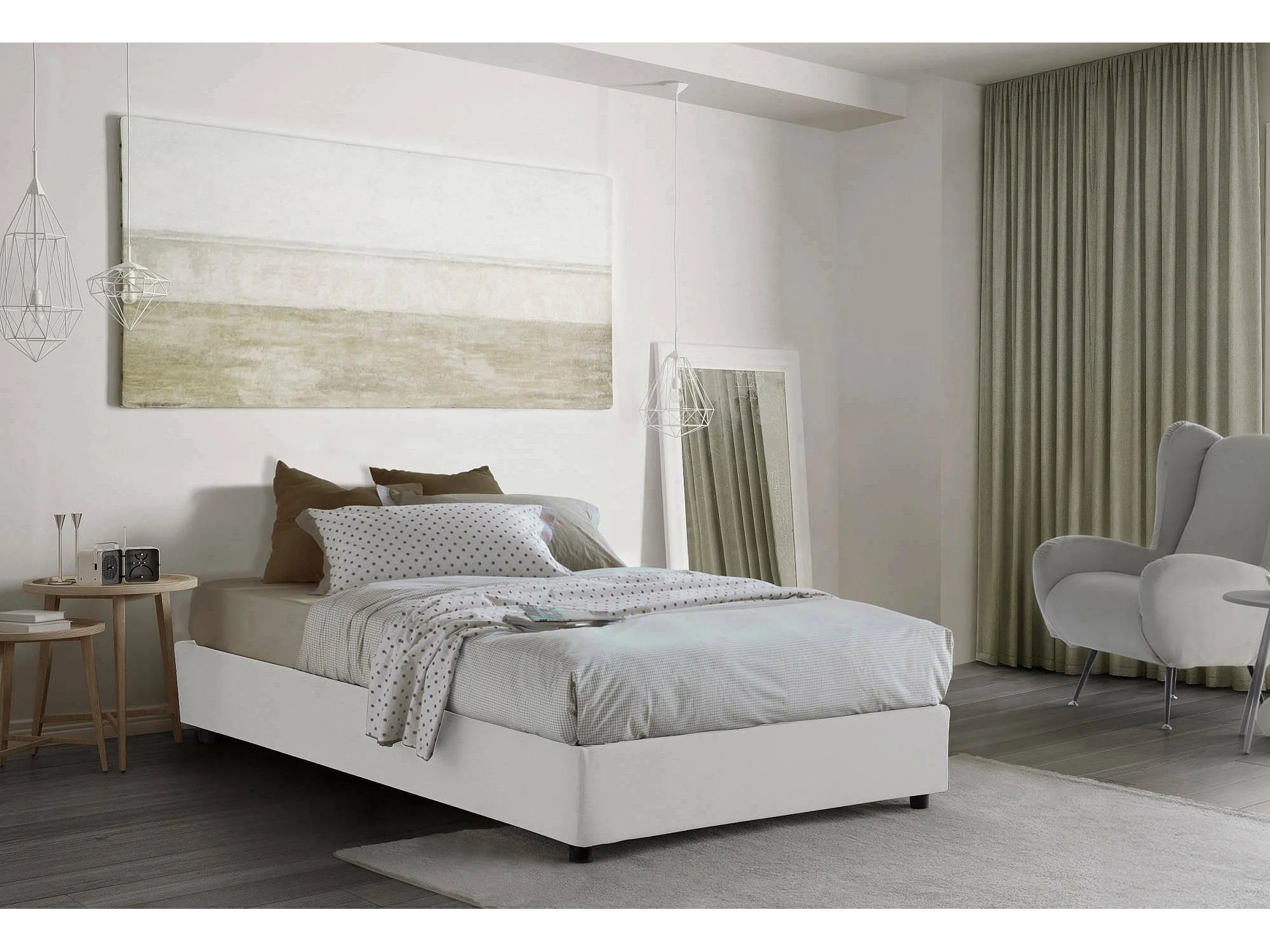 Lit double Dmalizi, Lit coffre avec revêtement en tissu, 100% Made in Italy, Ouverture frontale, avec matelas 120x200 cm inclus, Blanc