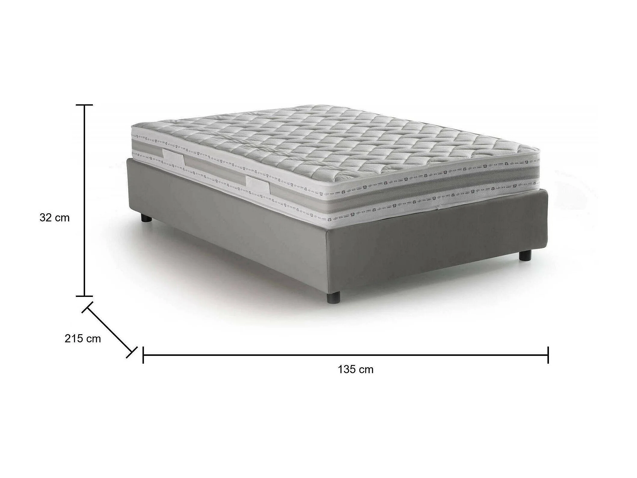 Lit double Dmalizi, Lit coffre avec revêtement en tissu, 100% Made in Italy, Ouverture frontale, avec matelas 120x200 cm inclus, Gris