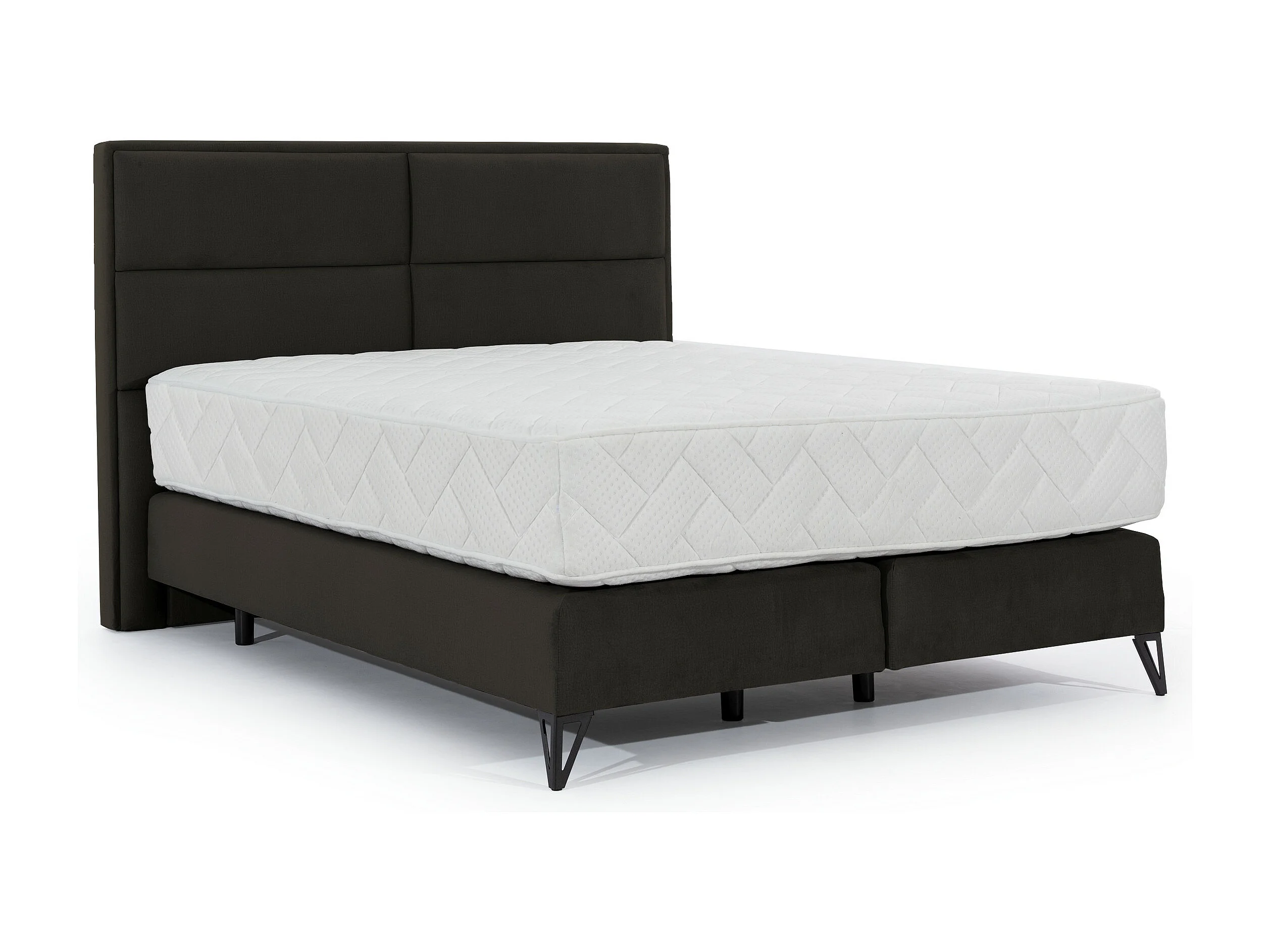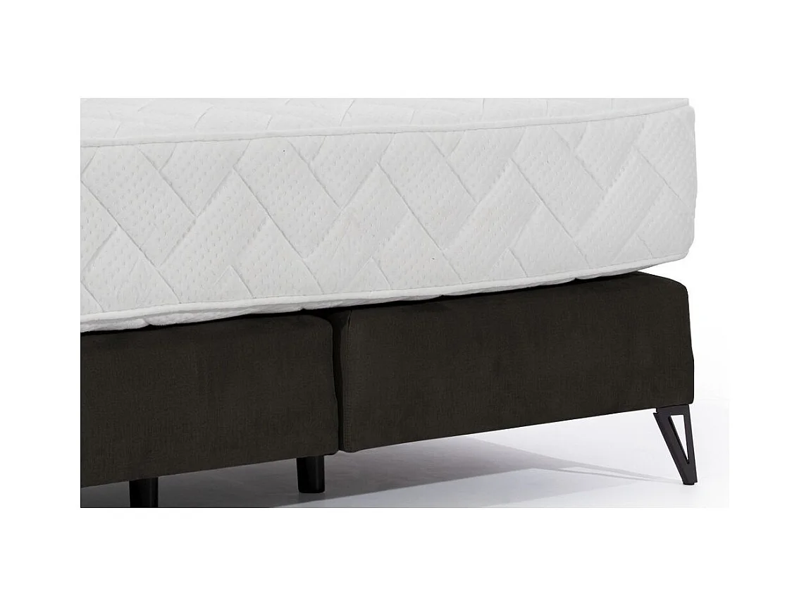 Lit continental tissu marron Tiempo avec matelas 30cm en latex et pied métal noir-140x200
