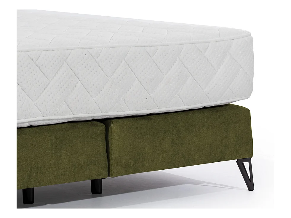 Lit continental tissu vert olive Tiempo avec matelas 30cm en latex et pied métal noir-140x200