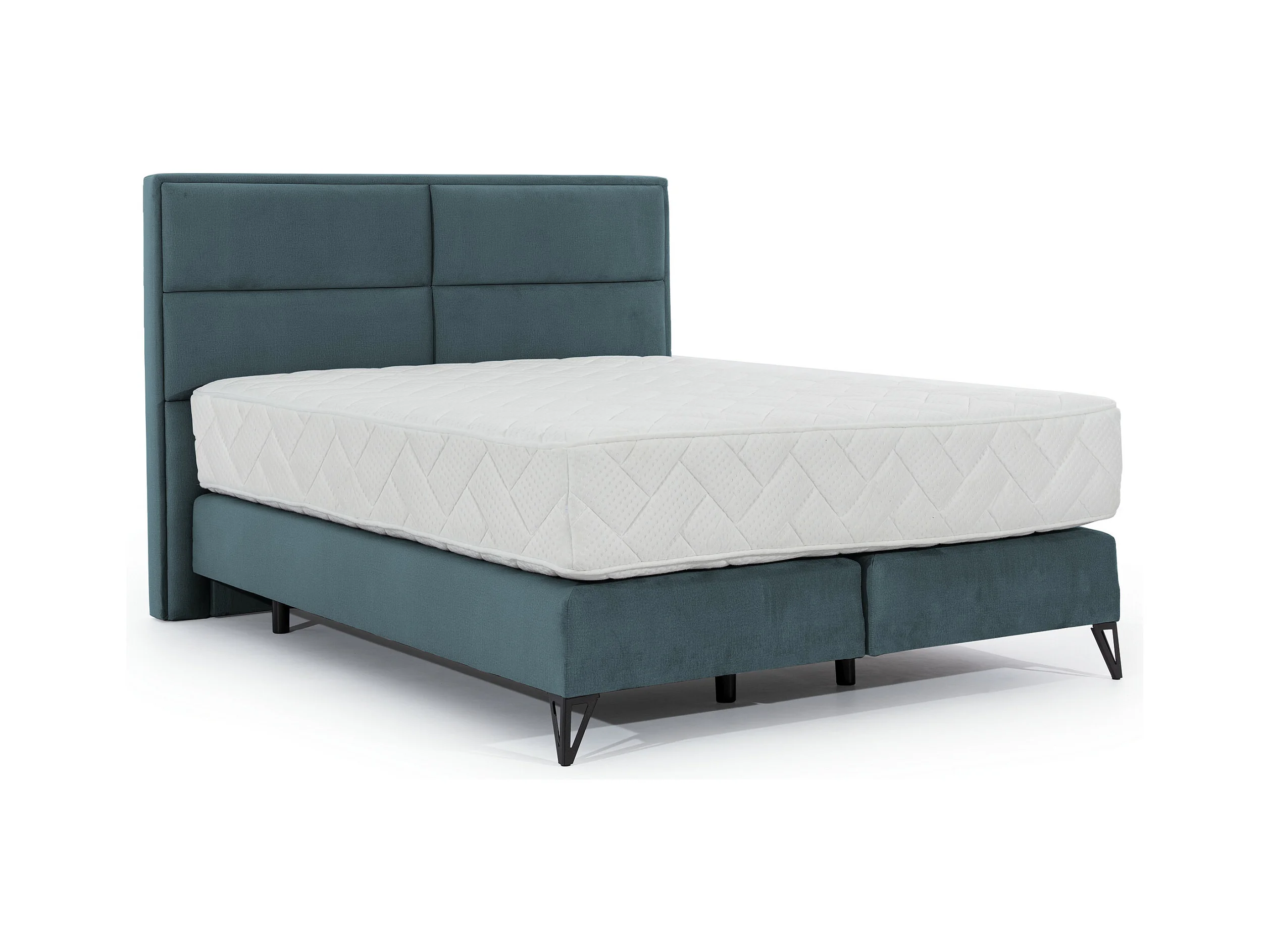 Lit continental velours vert bleuté Tiempo avec matelas 30cm en latex et pied métal noir-140x200