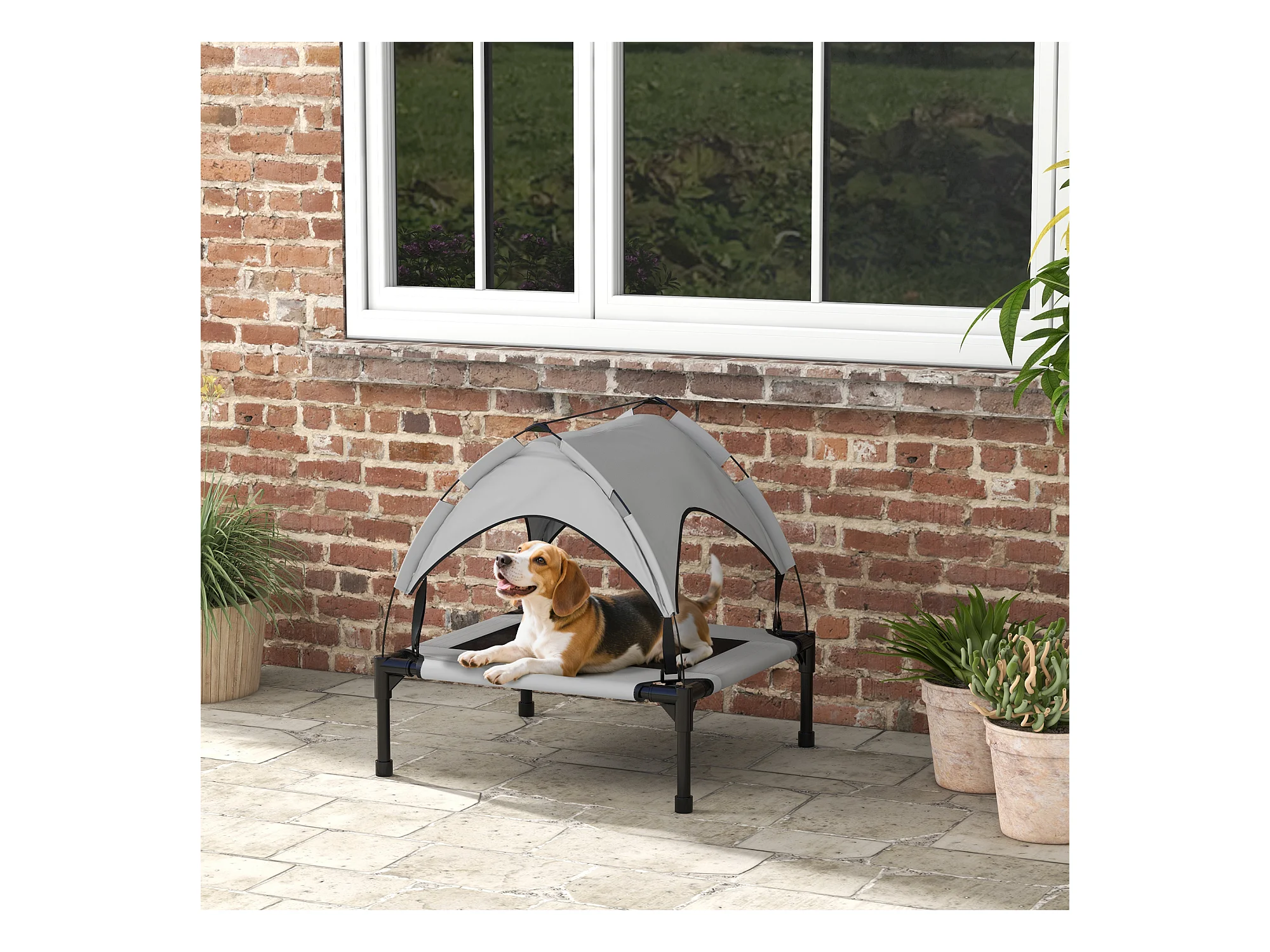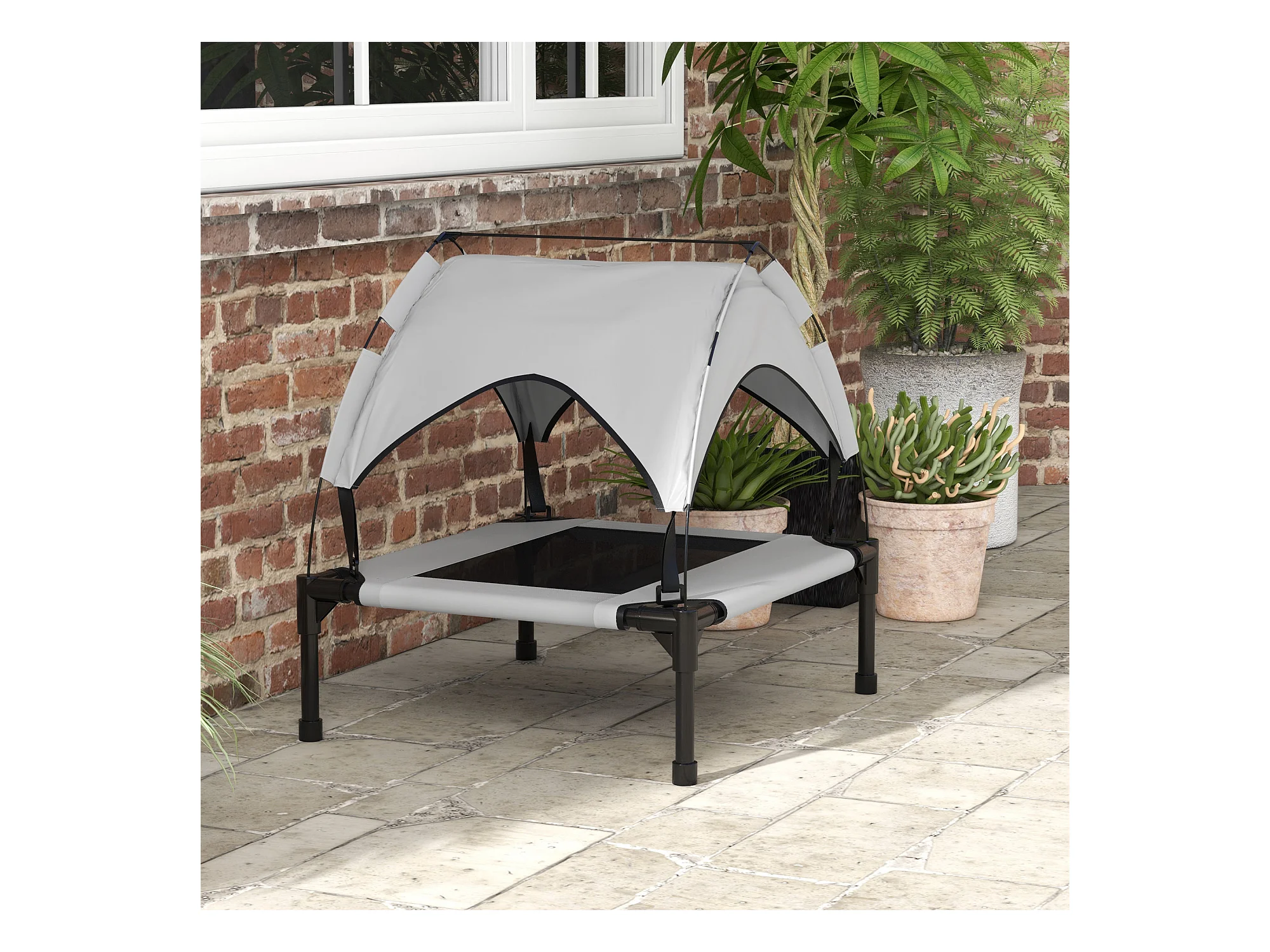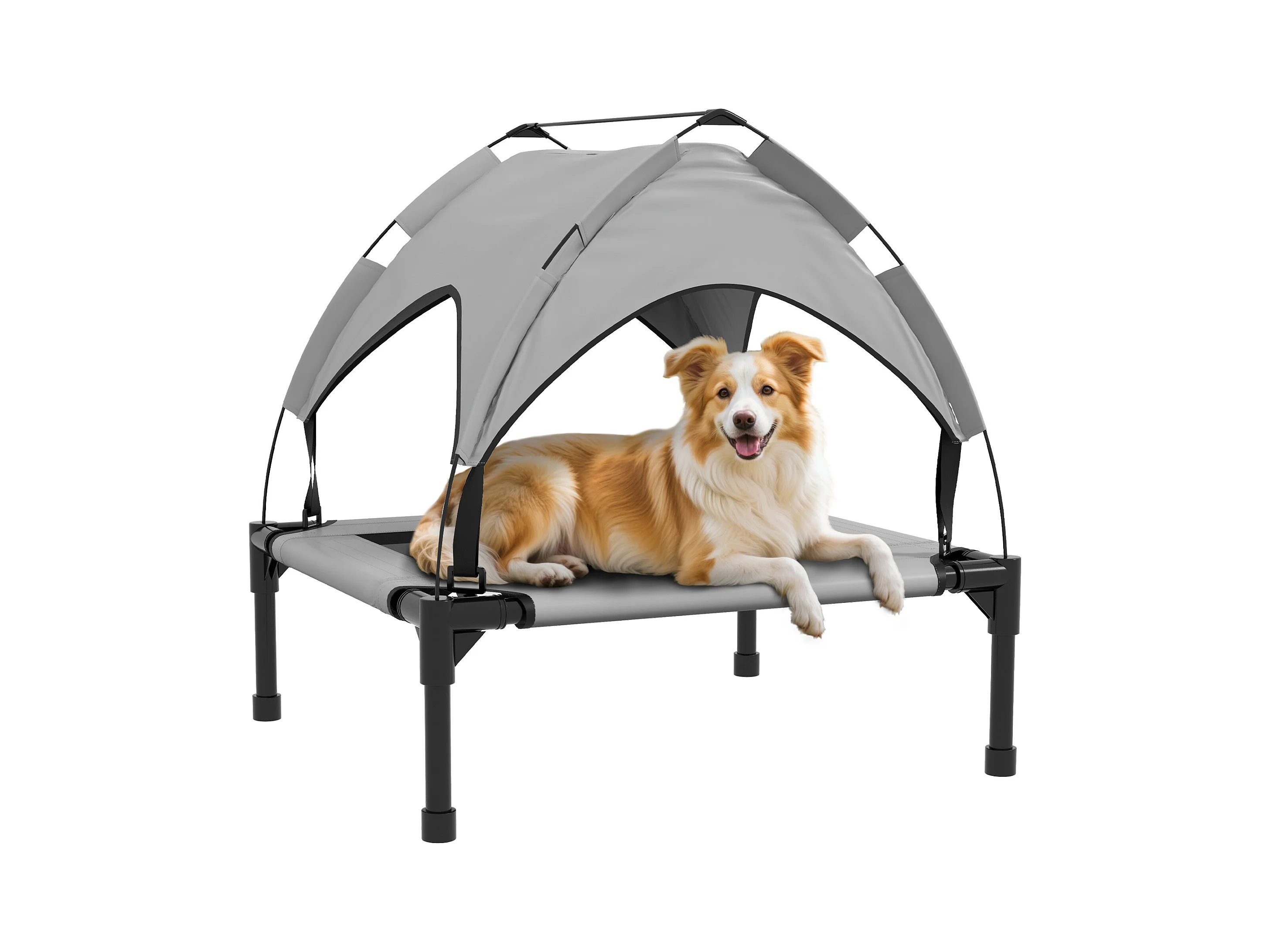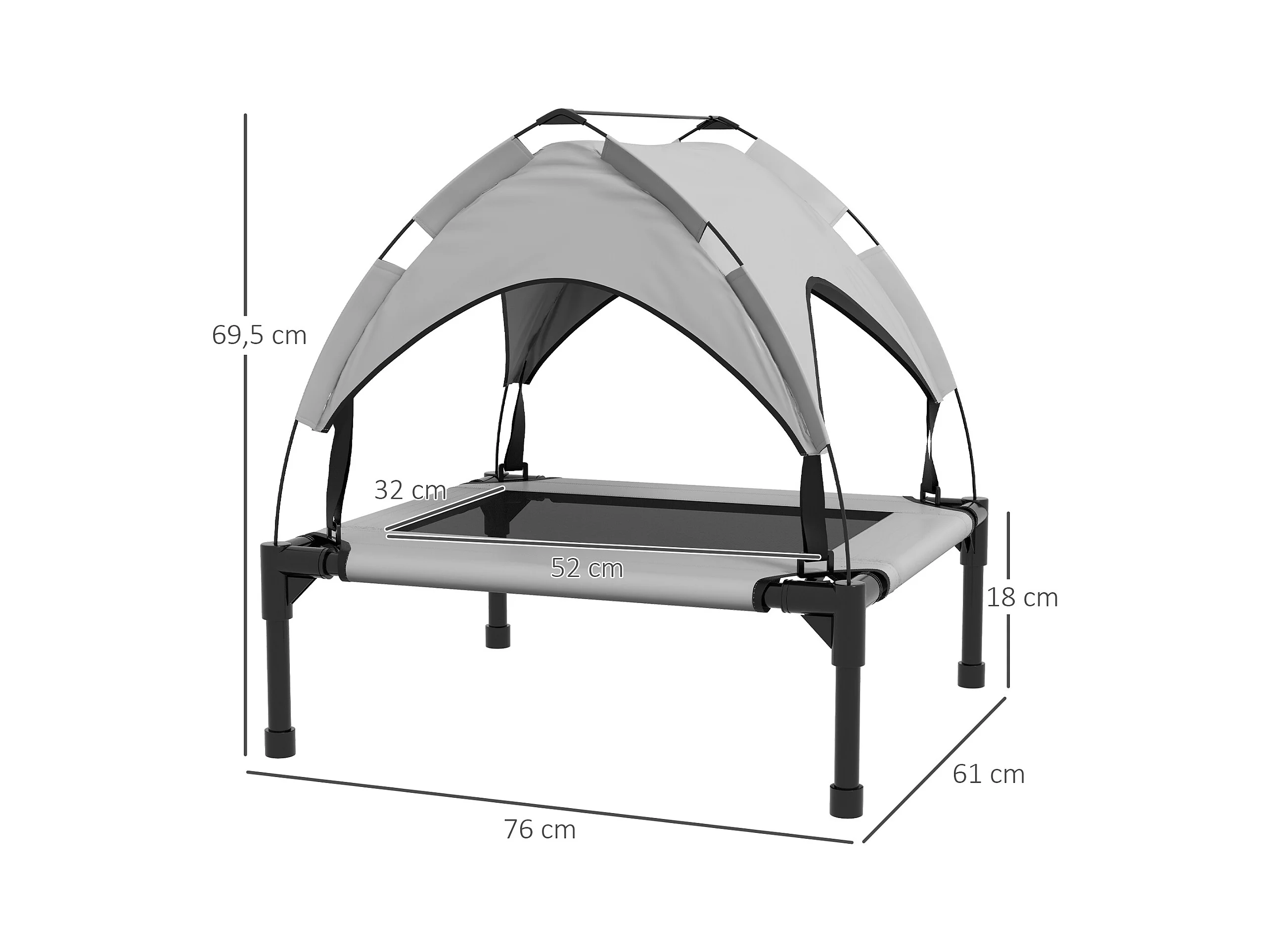 Lit pour chien chat sur pied velum anti-UV tissu Oxford micro-perforé sac transport inclus gris