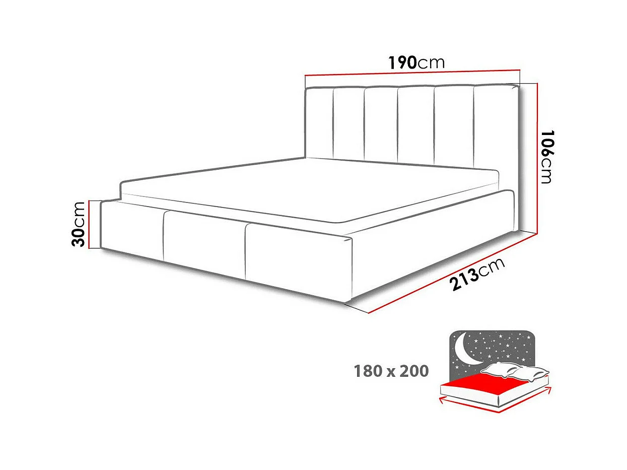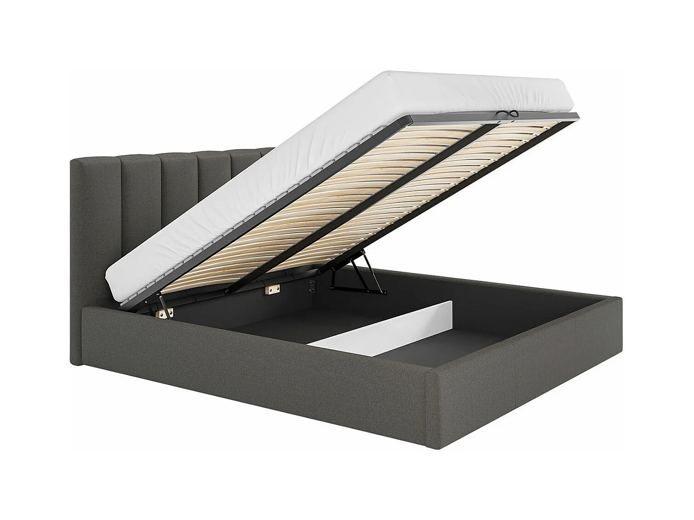 Lit ComfiDream 126, Double, Gris, 180x200, Tapisserie, Sommier à lattes, 190x213x106cm