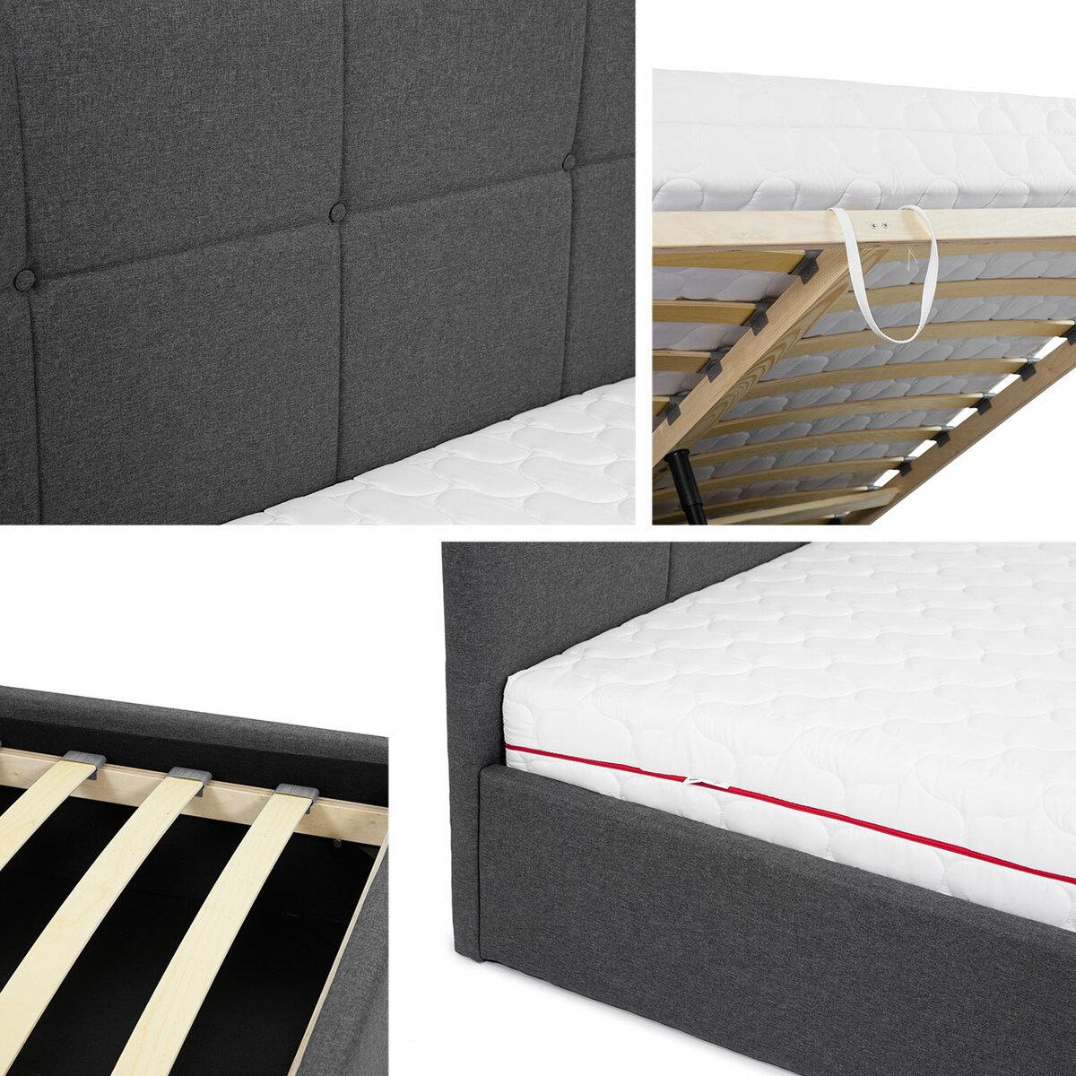 Lit ComfiDream 130, Double, Gris, 140x200, Tapisserie, Sommier à lattes, 151x213x106cm