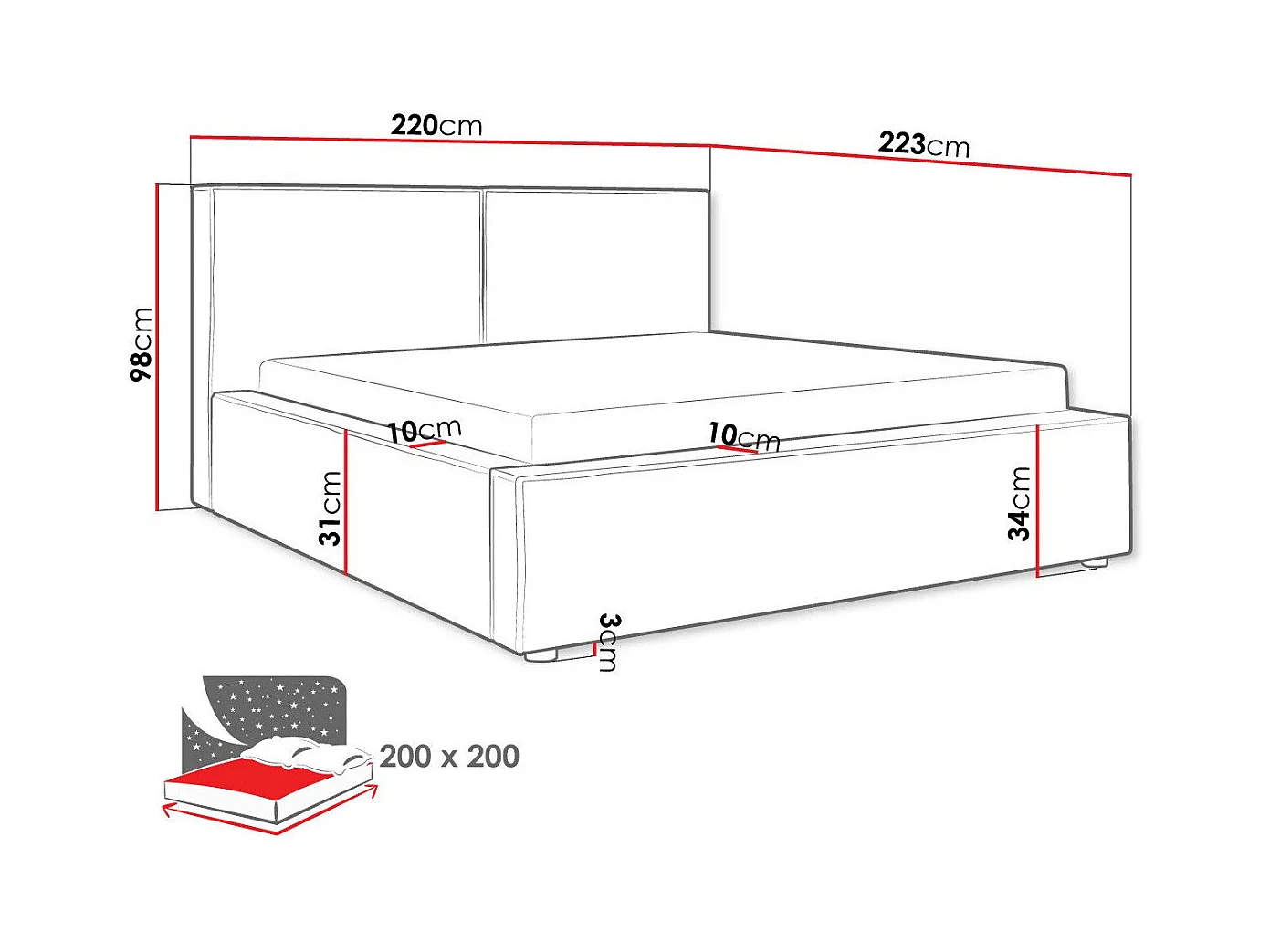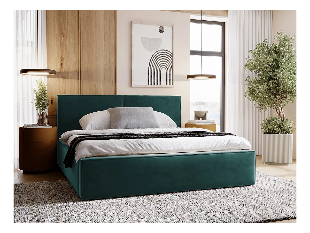 Lit TrendyNest 117, Double, Vert, 200x200, Tapisserie, Sommier à lattes, 220x223x98cm