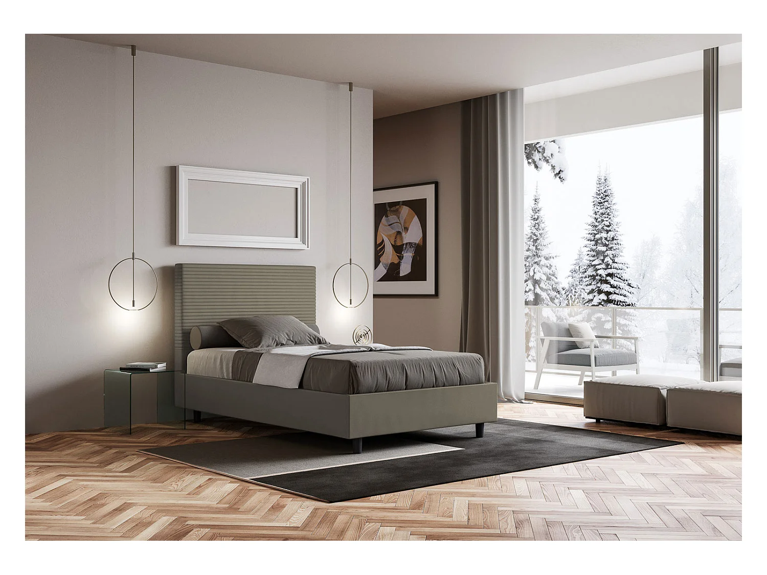 Lit 1 place et demi coffre rembourré 120x210 similicuir cappuccino Focus