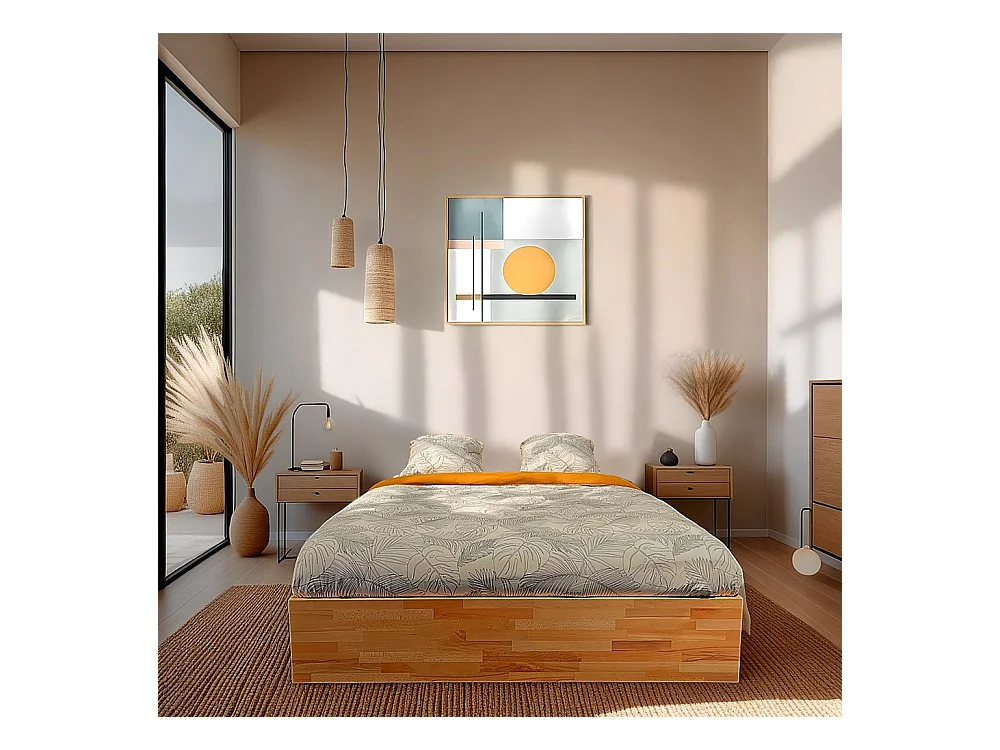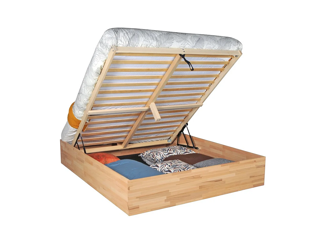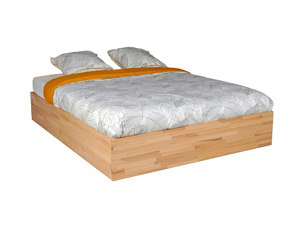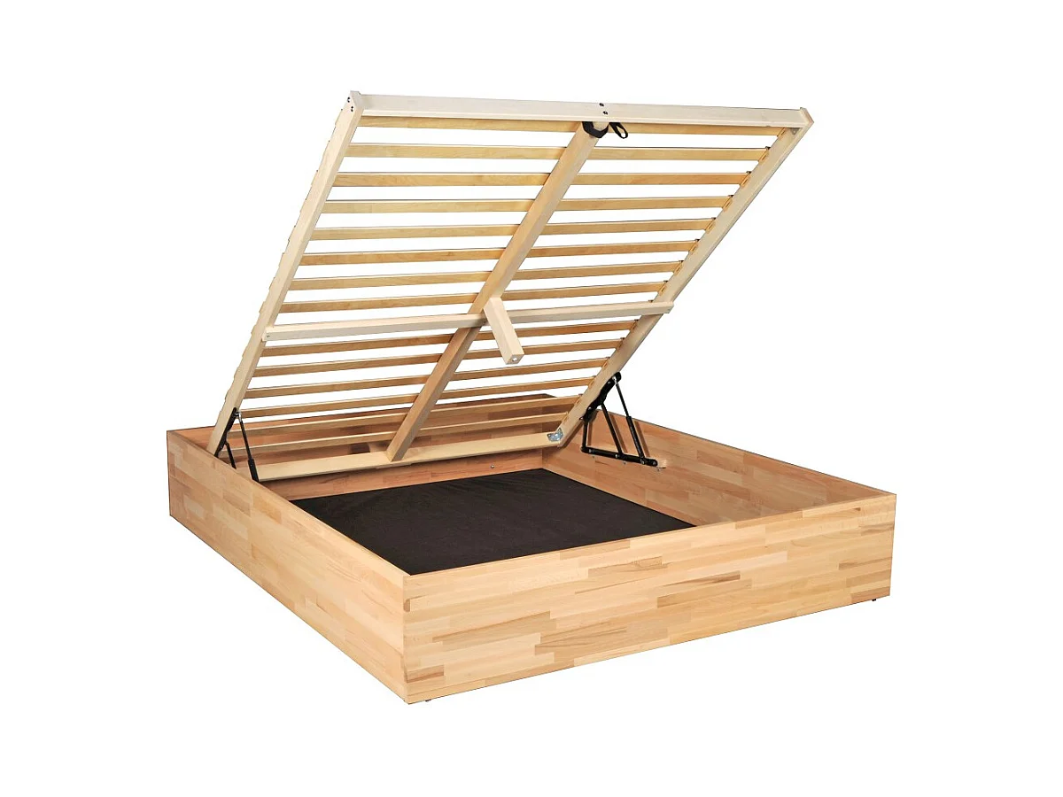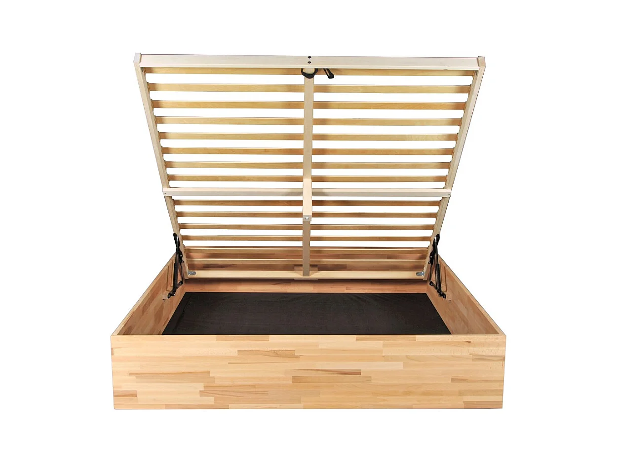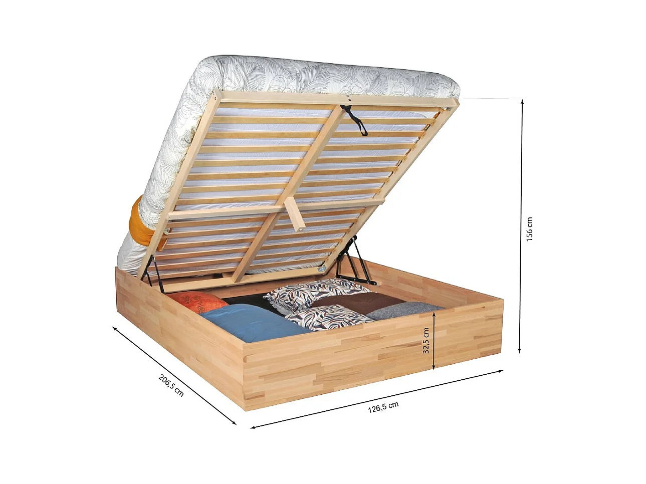 Lit coffre 120x200cm BEN + sommier/ Hêtre massif huilé